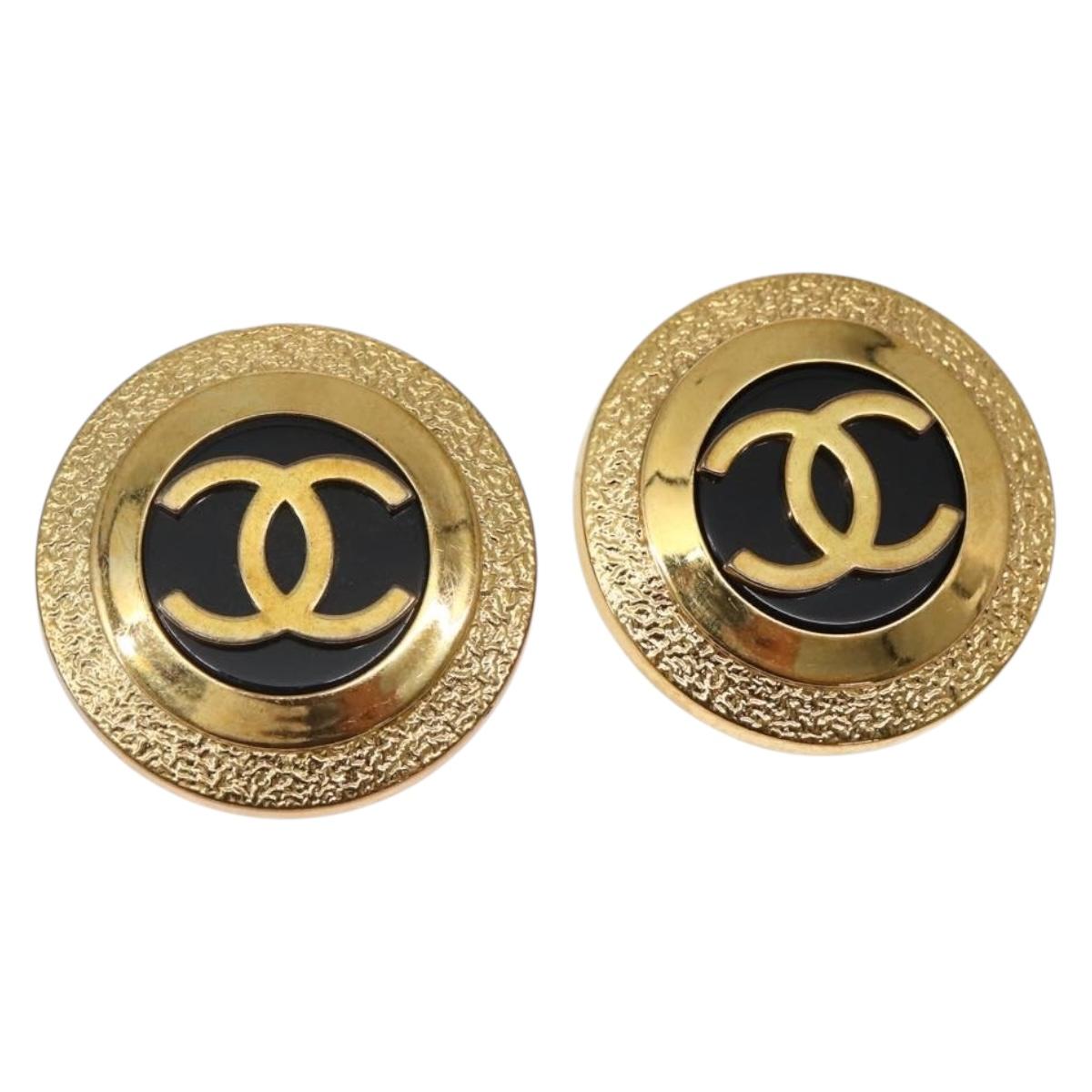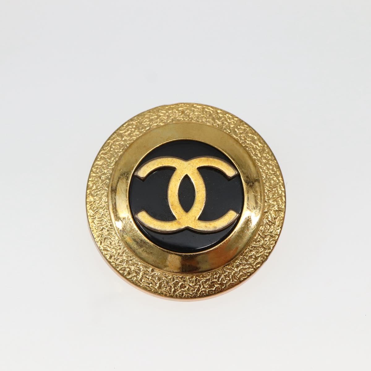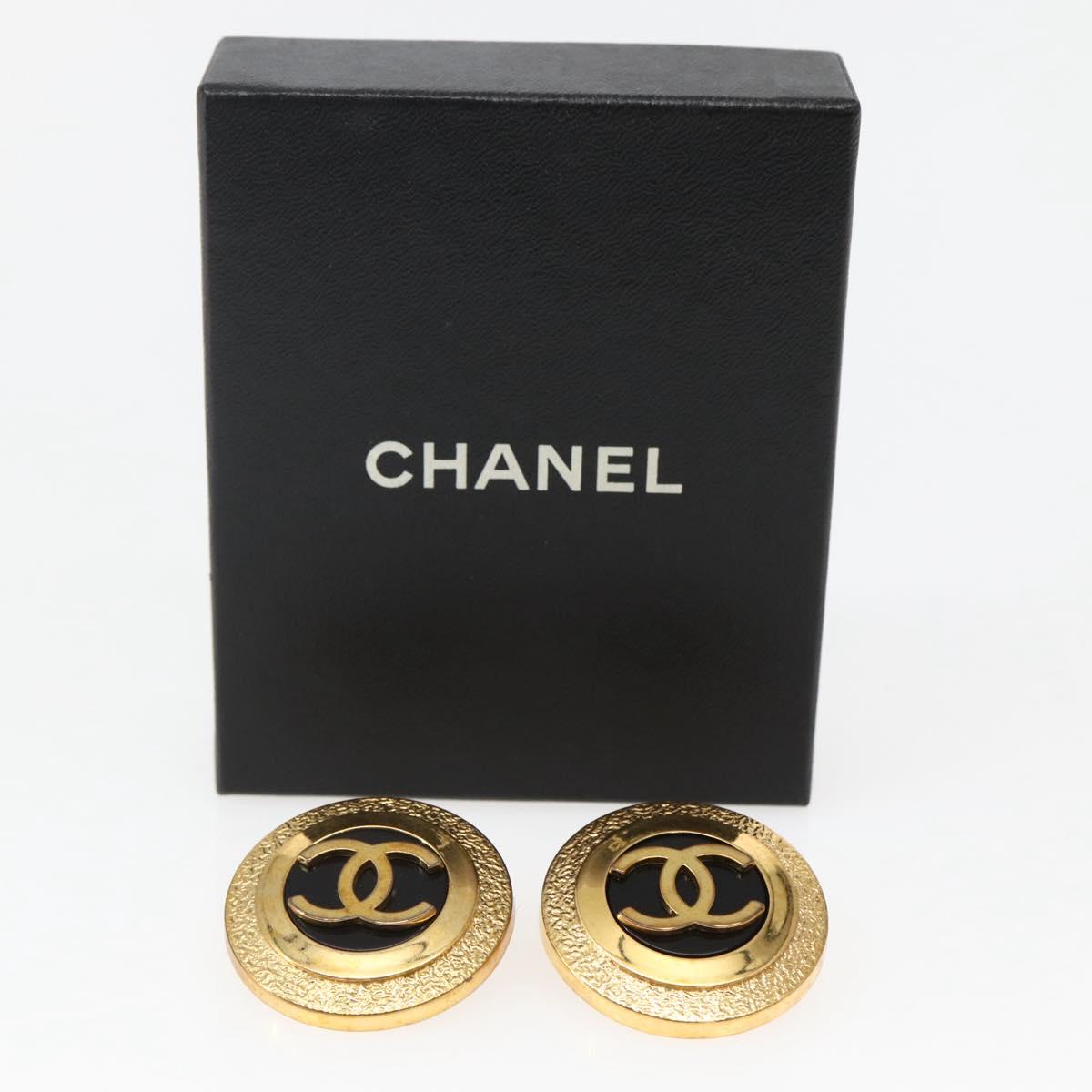 CHANEL Earring Metal Gold Black CC Auth BA5779V
