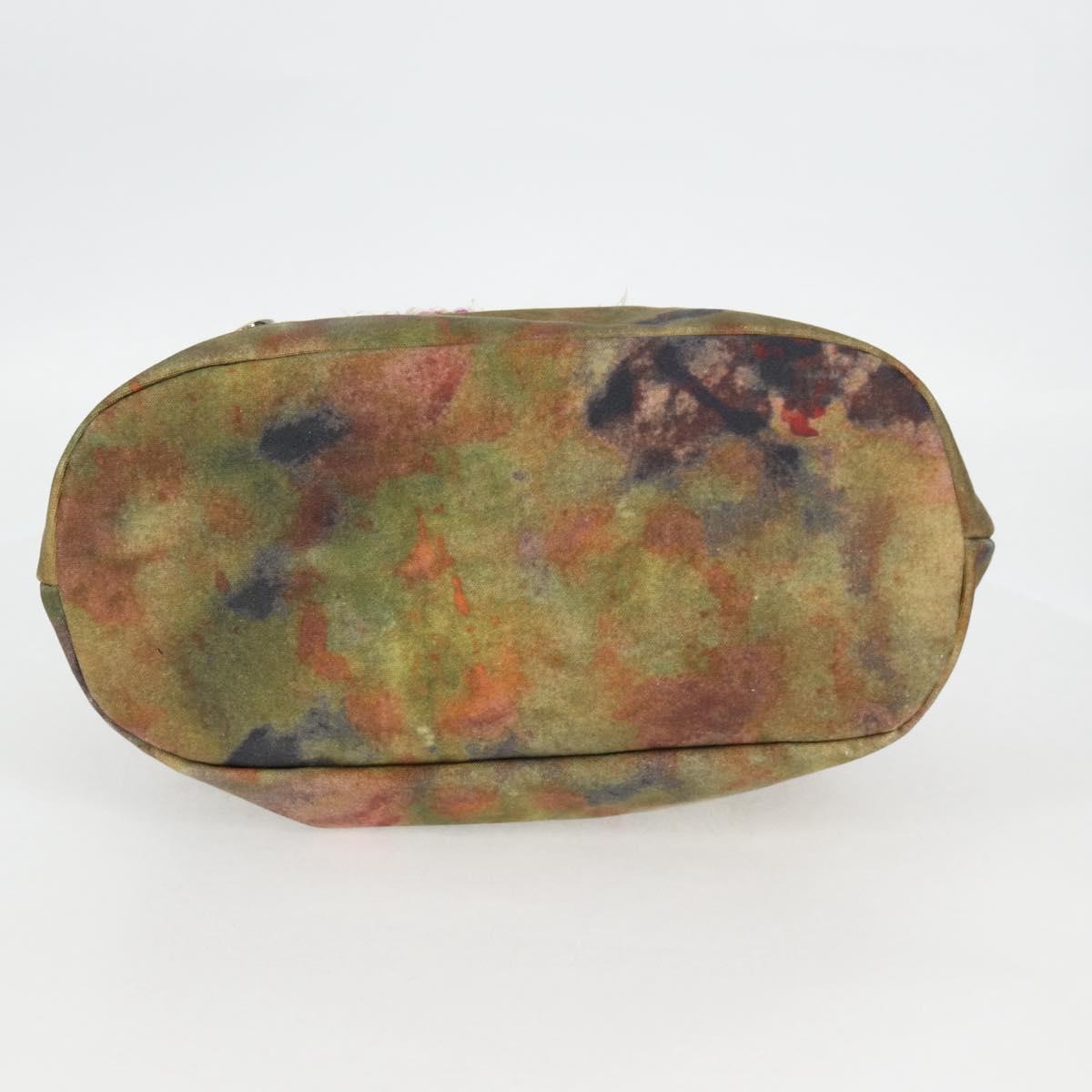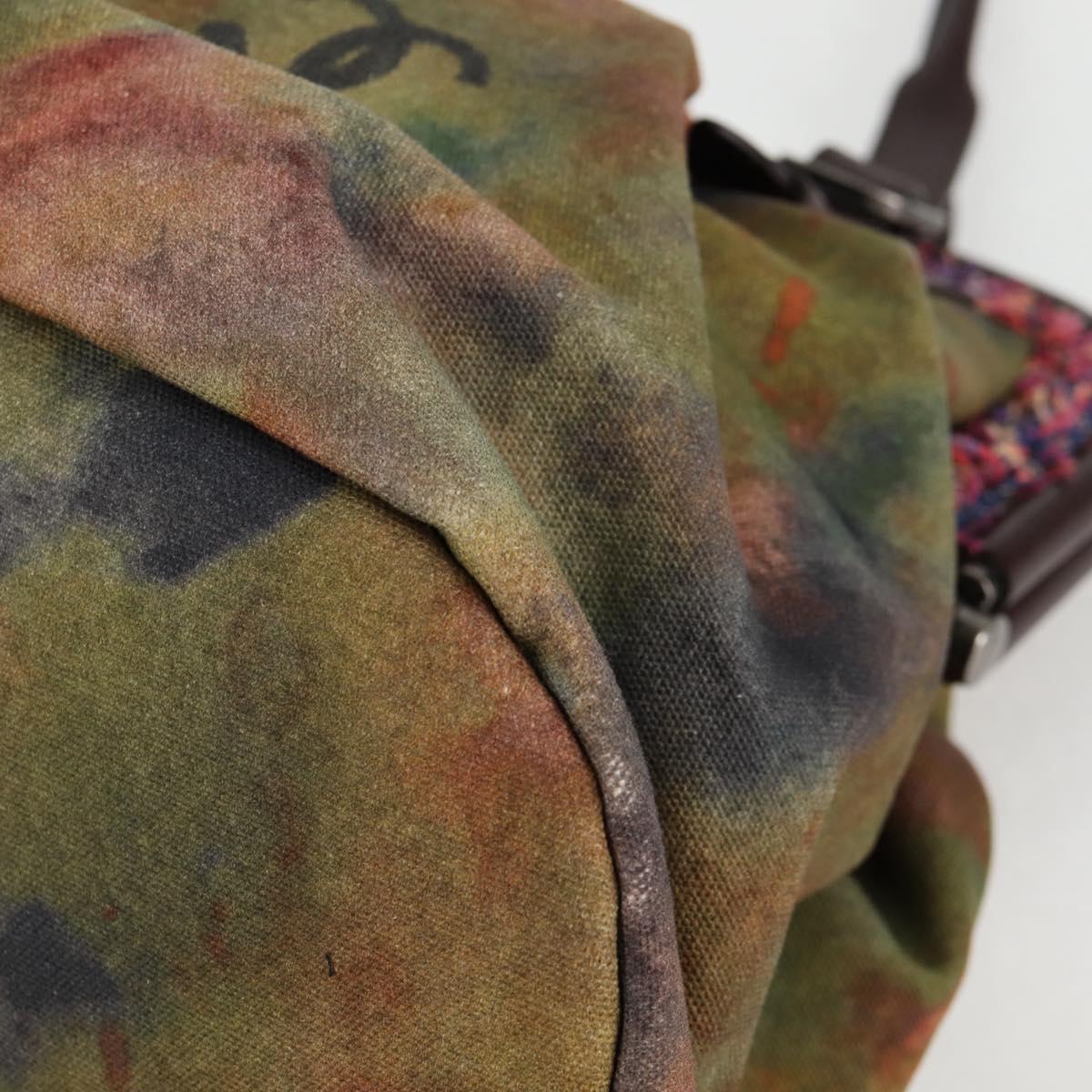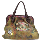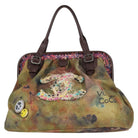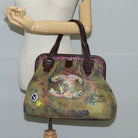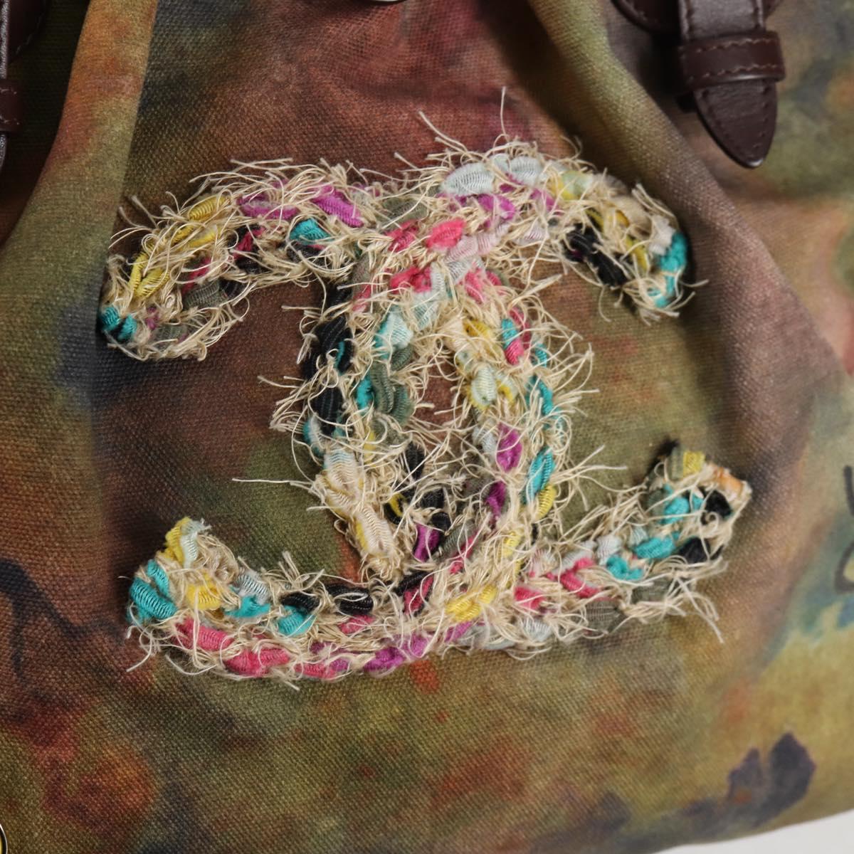 CHANEL Embroidery Graffiti Hand Bag Canvas Leather Khaki CC Auth 127134SM