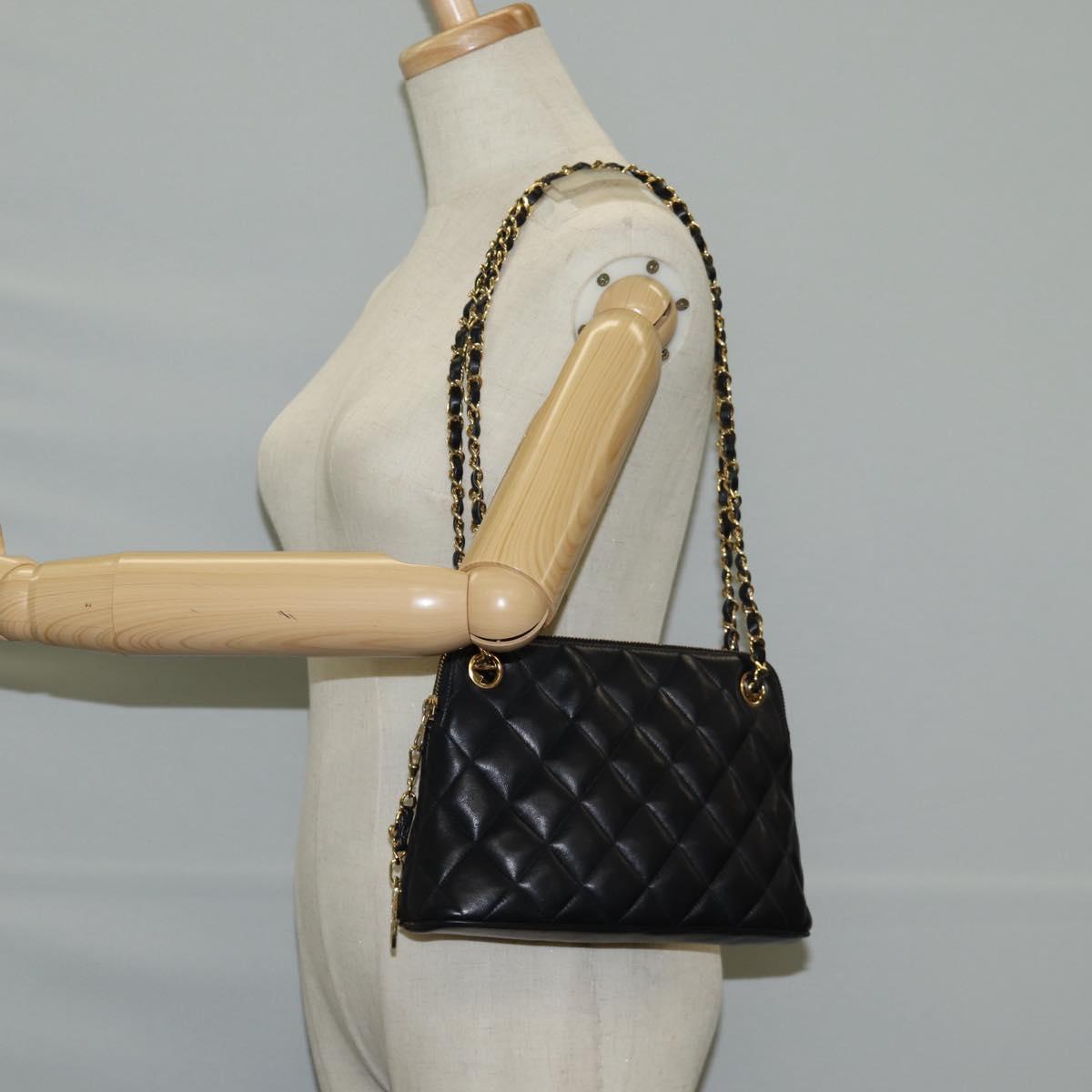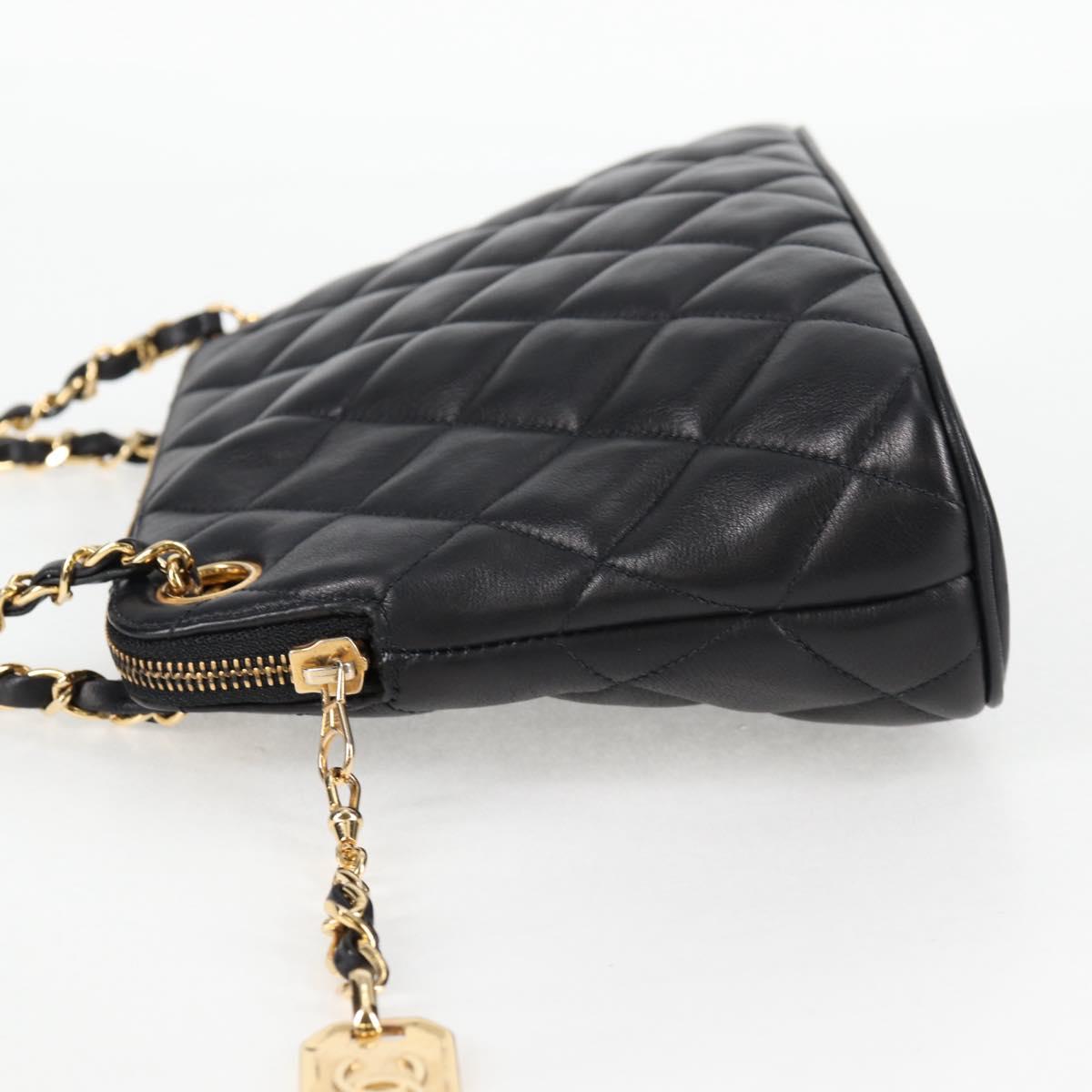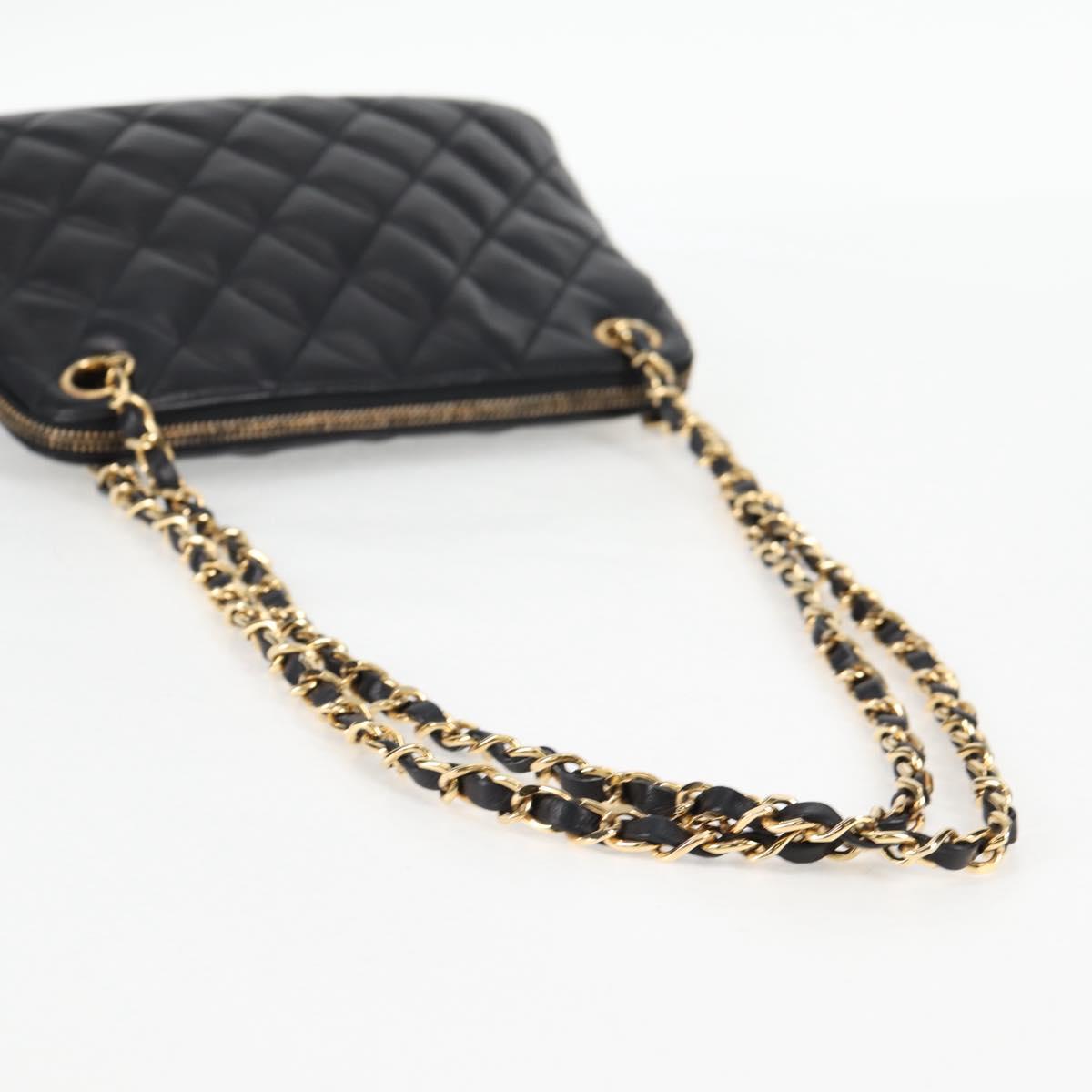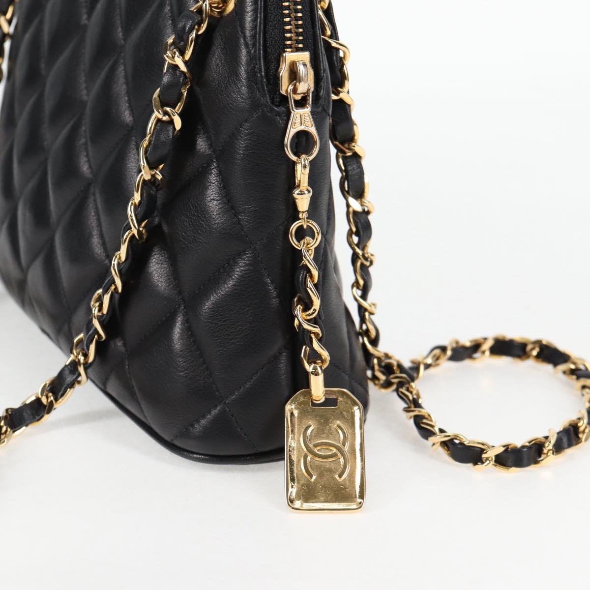 CHANEL Matelasse Chain Shoulder Bag Lamb Skin Black Gold CC Auth 126602V