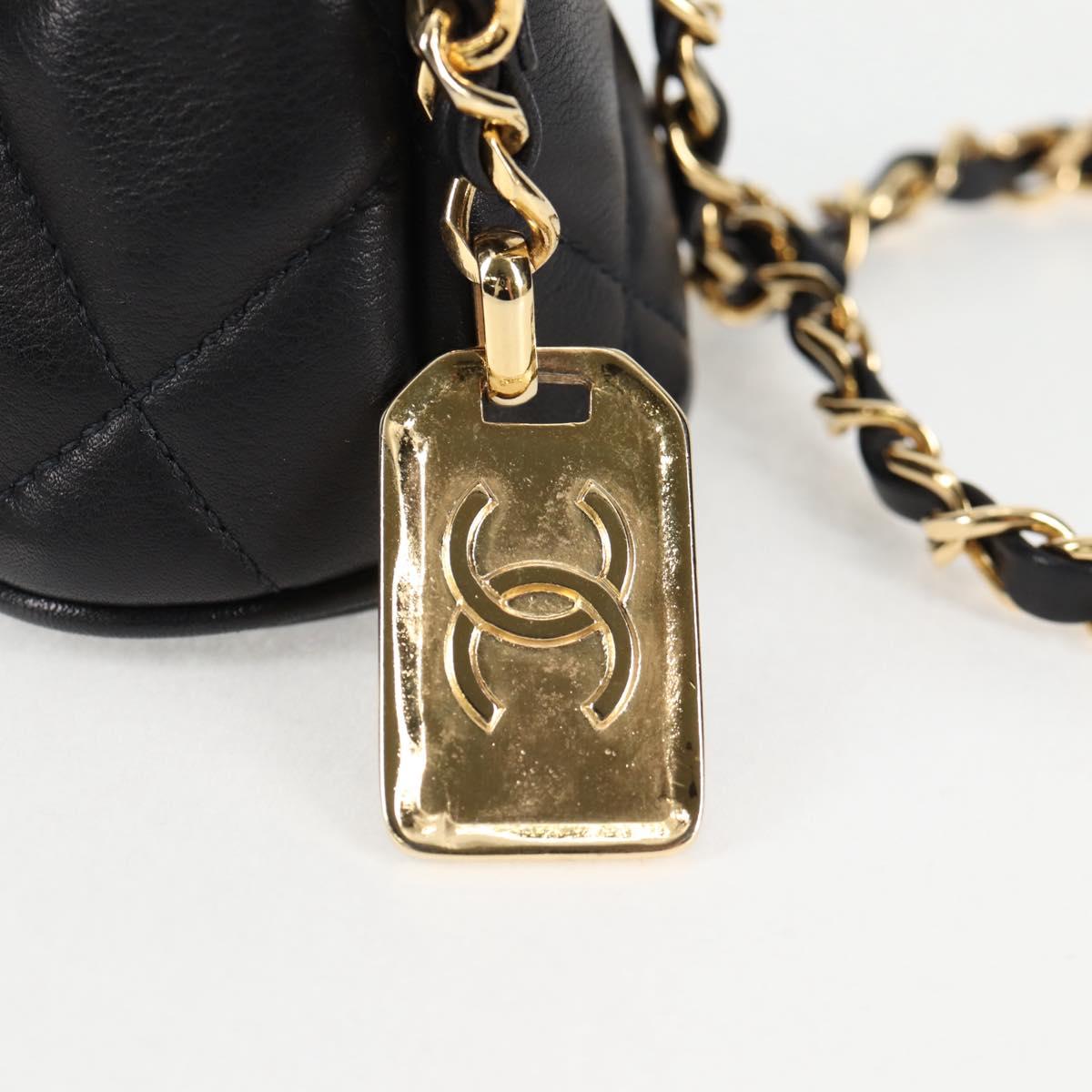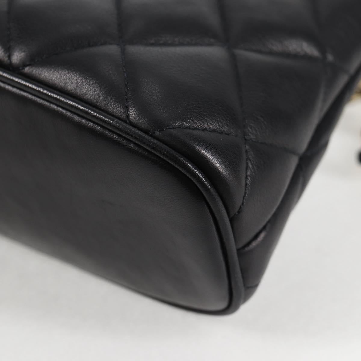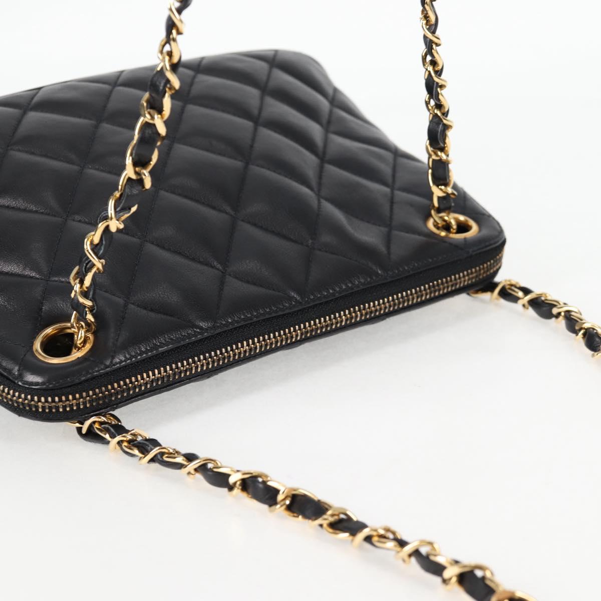 CHANEL Matelasse Chain Shoulder Bag Lamb Skin Black Gold CC Auth 126602V