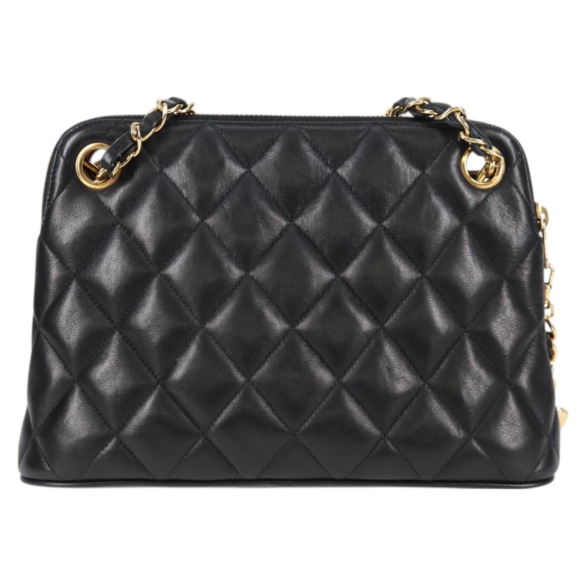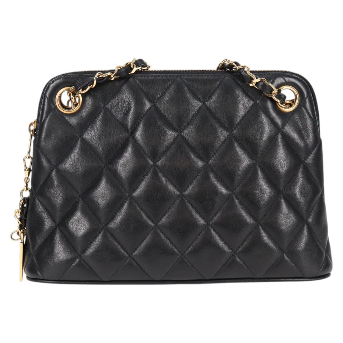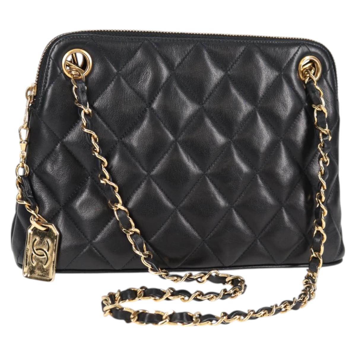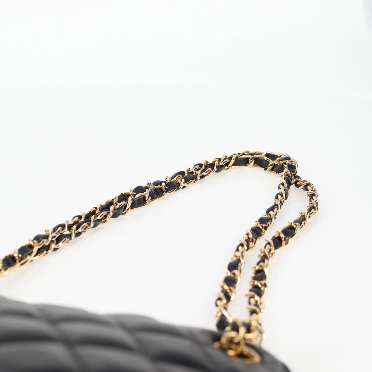 CHANEL Matelasse Chain Shoulder Bag Lamb Skin Black Gold CC Auth 126602V