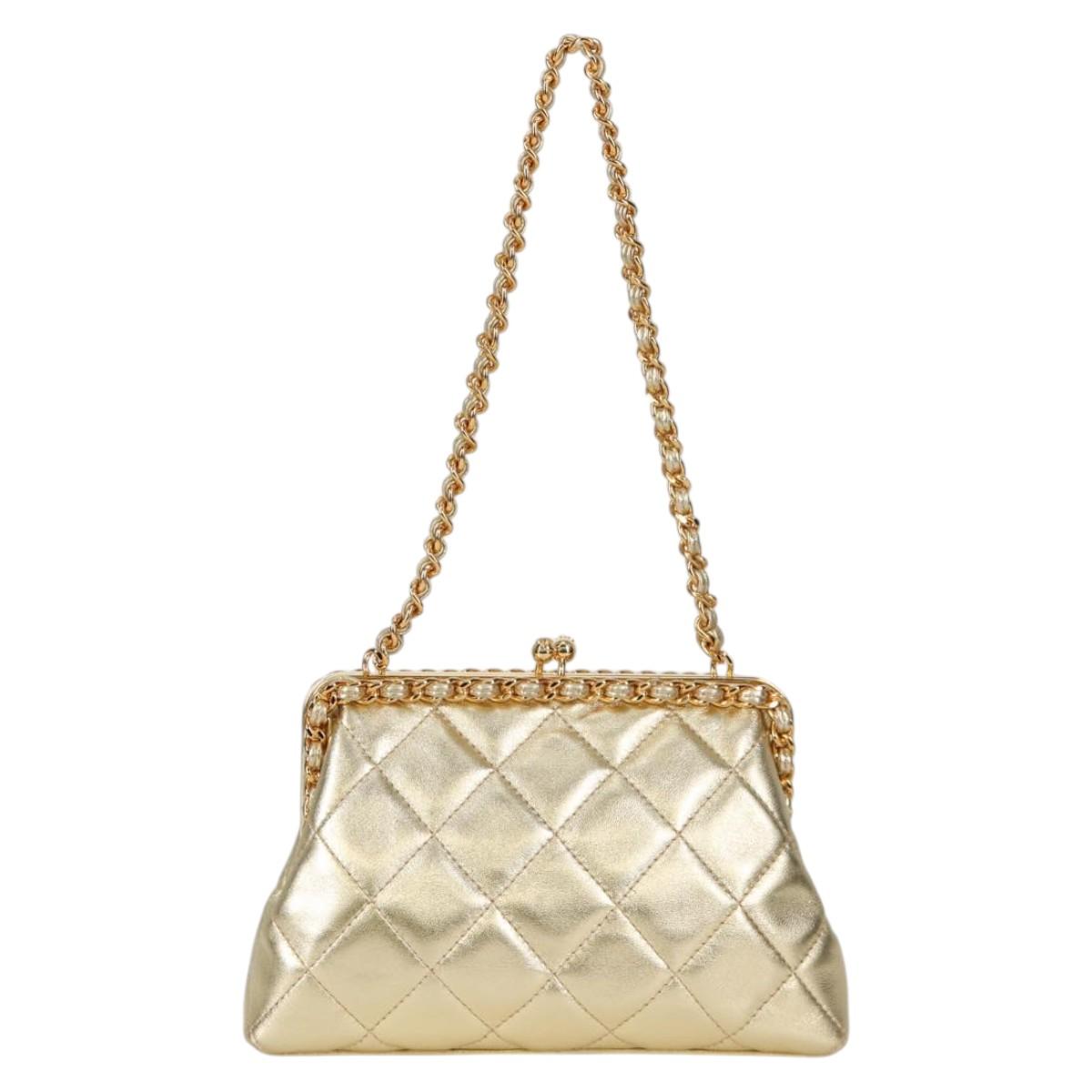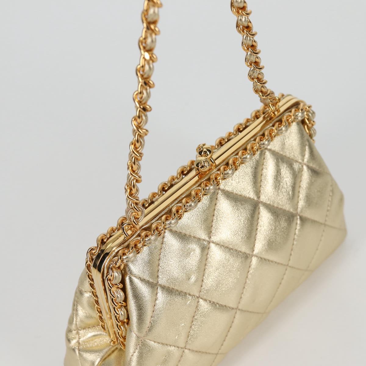 CHANEL Matelasse Chain Shoulder Bag Leather Gold CC Auth 134853M