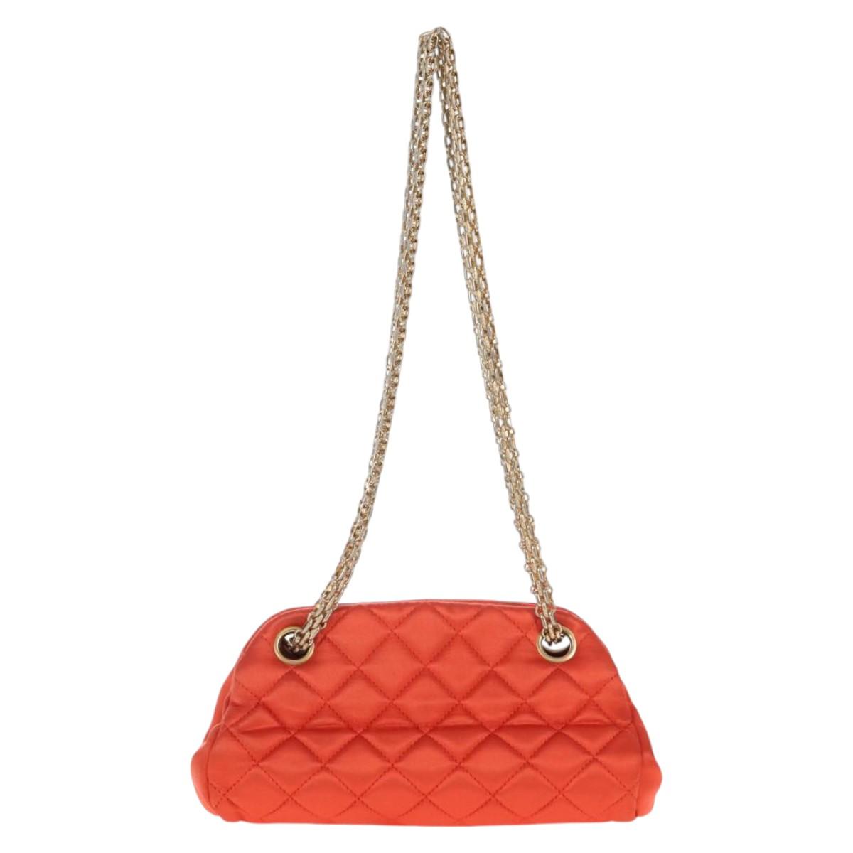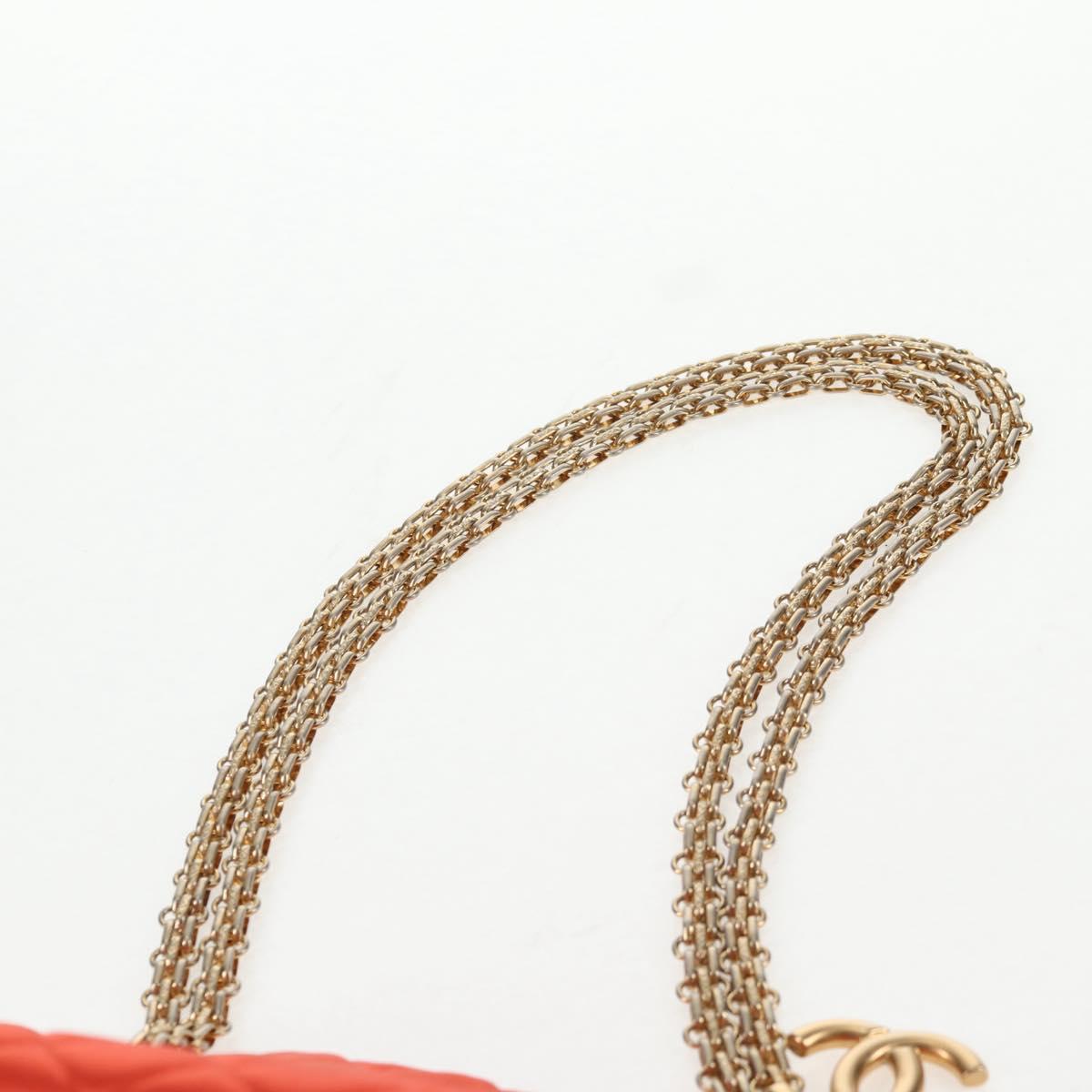 CHANEL Matelasse Chain Shoulder Bag Satin Orange Gold CC Auth 128193M