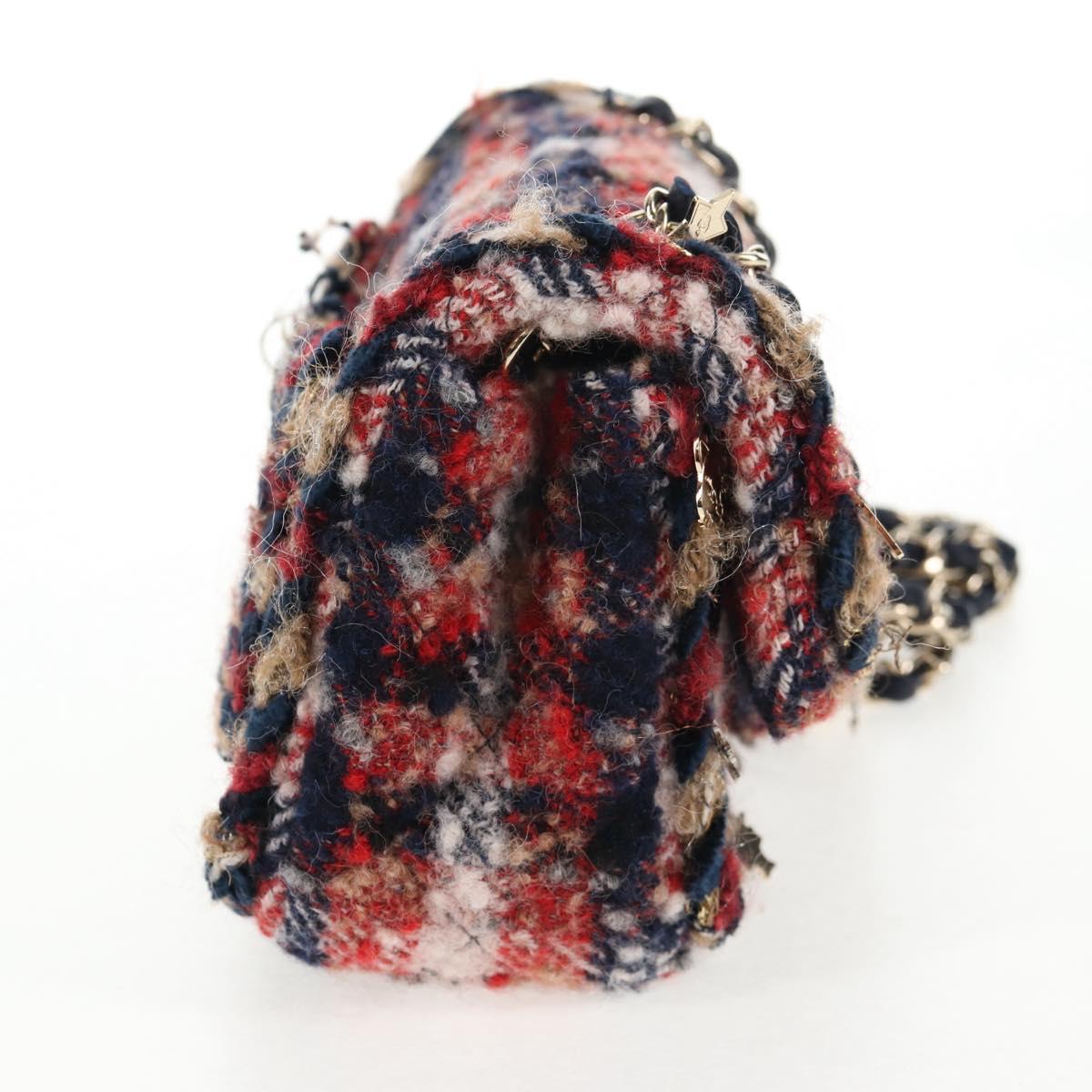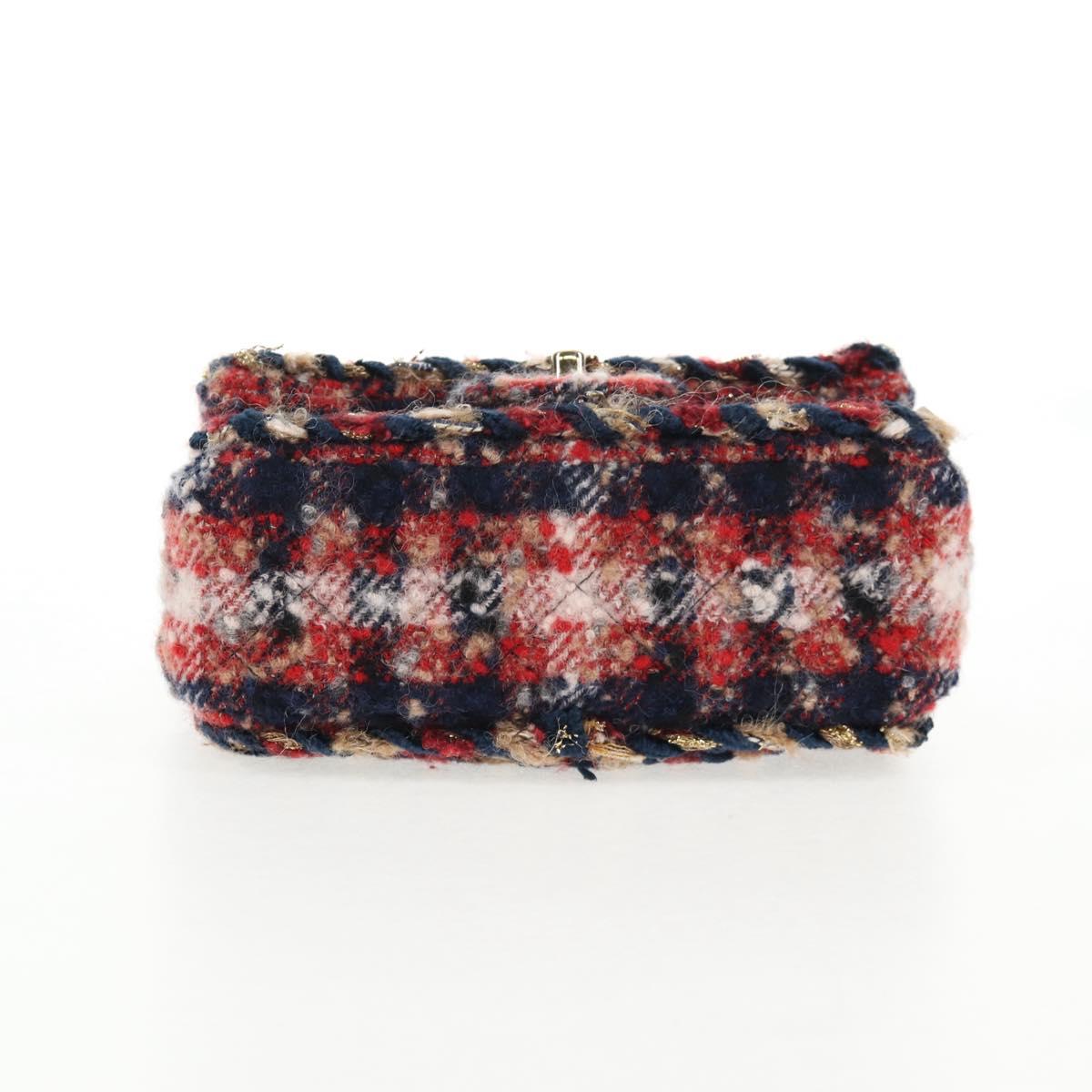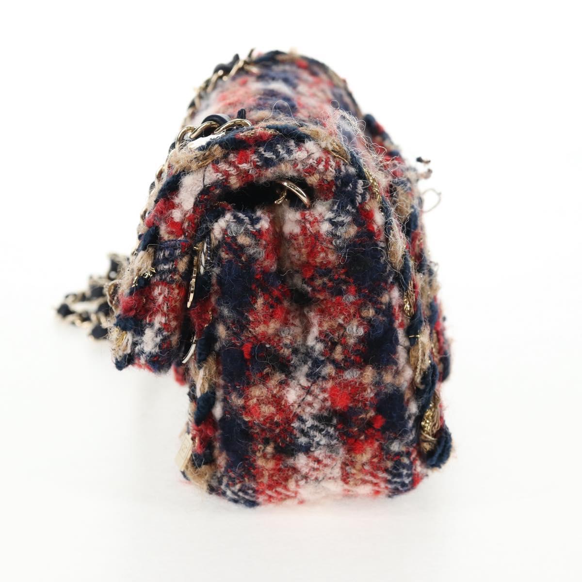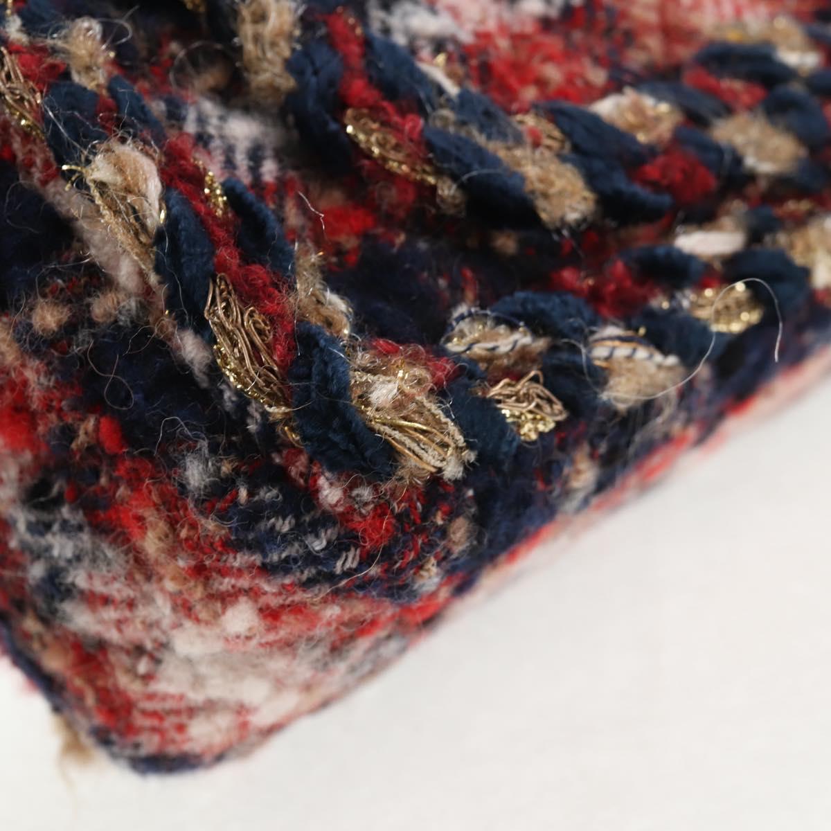 CHANEL Matelasse Chain Shoulder Bag Tweed Red Gold CC Auth 142564M