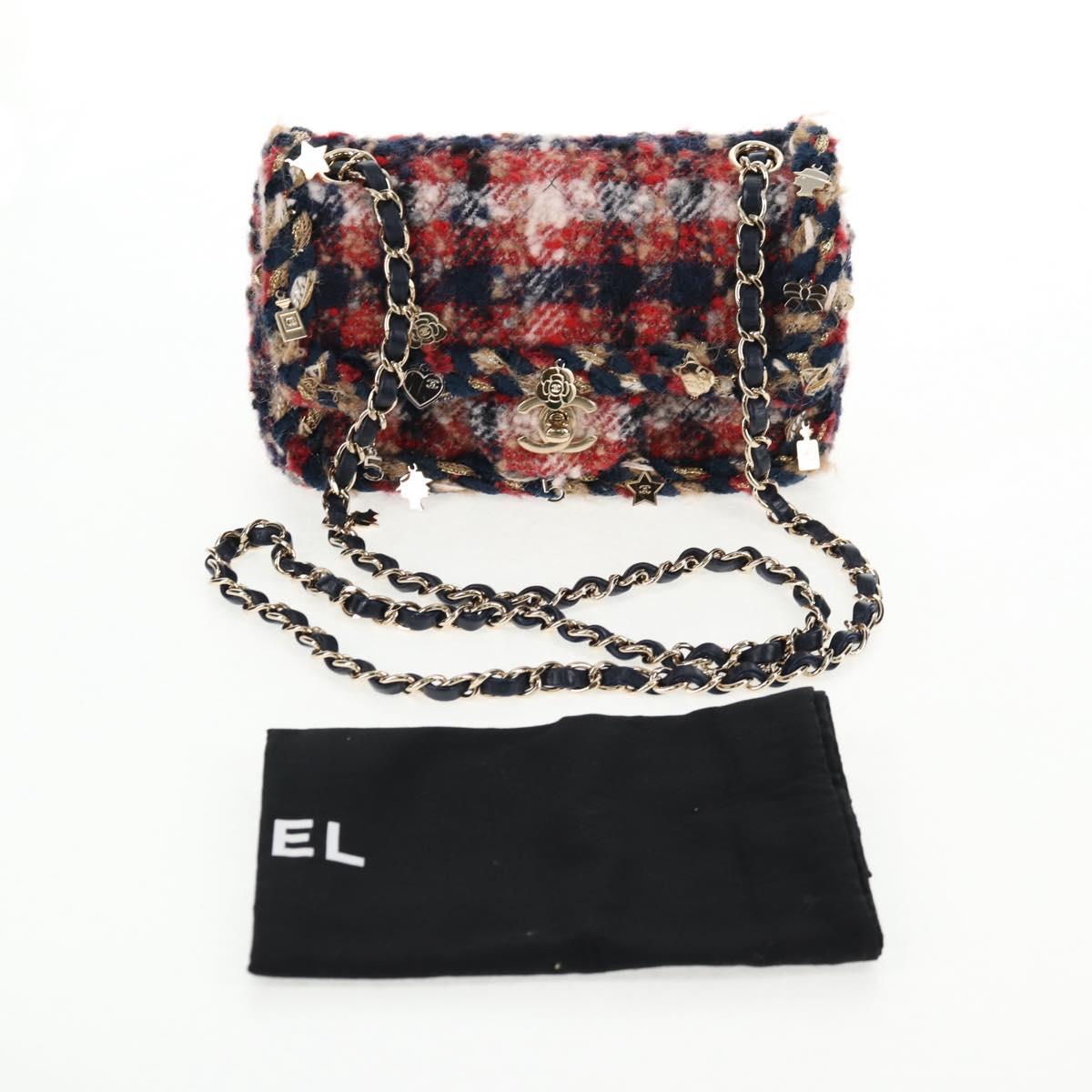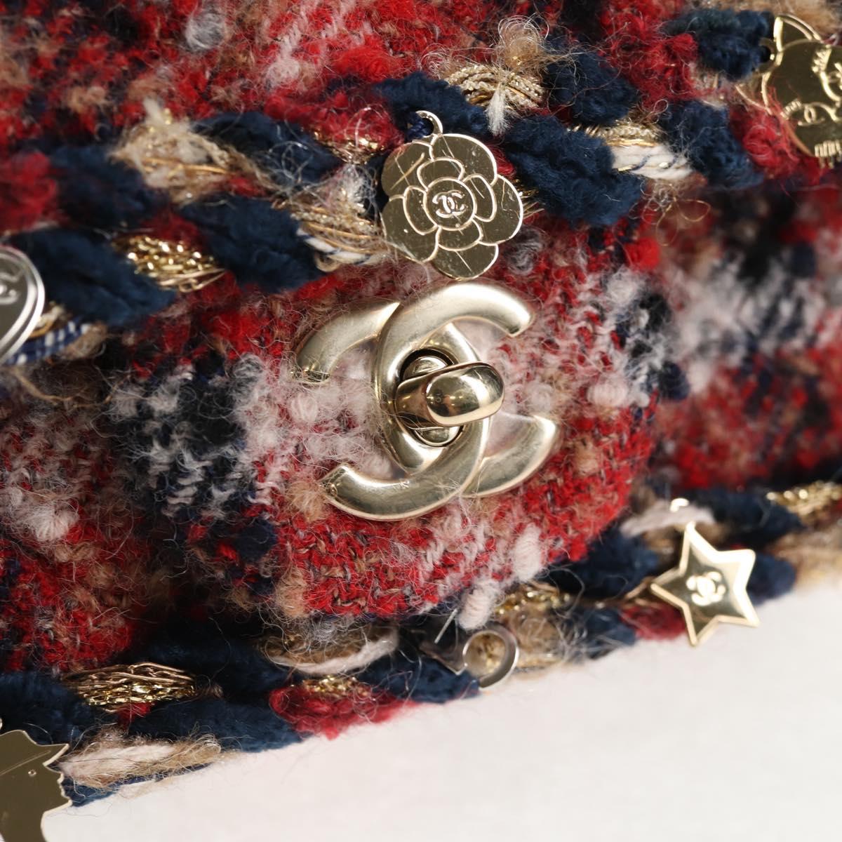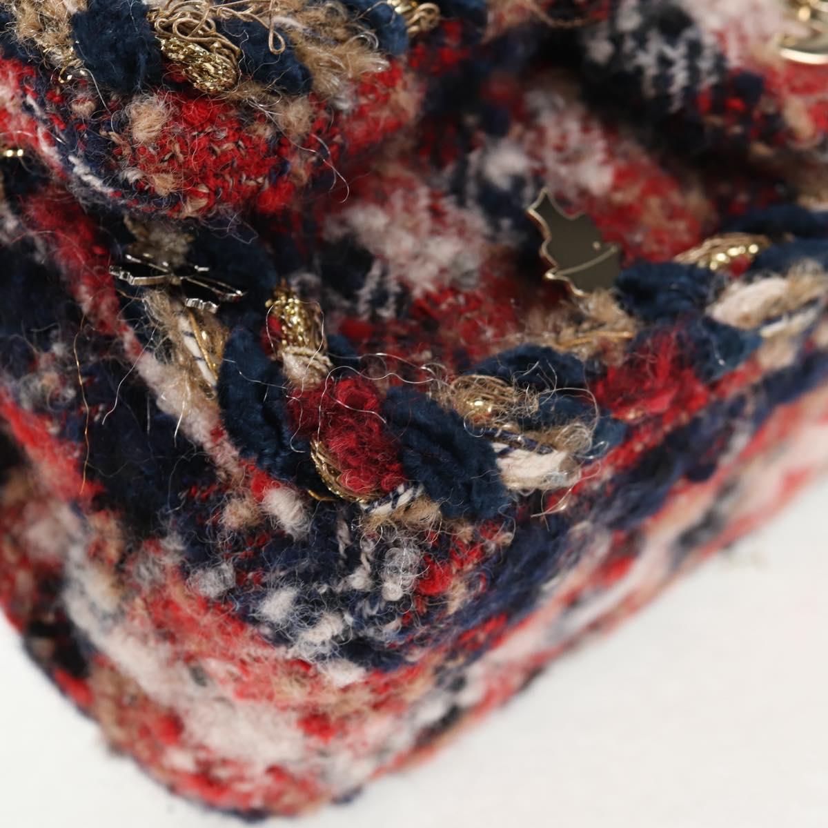 CHANEL Matelasse Chain Shoulder Bag Tweed Red Gold CC Auth 142564M