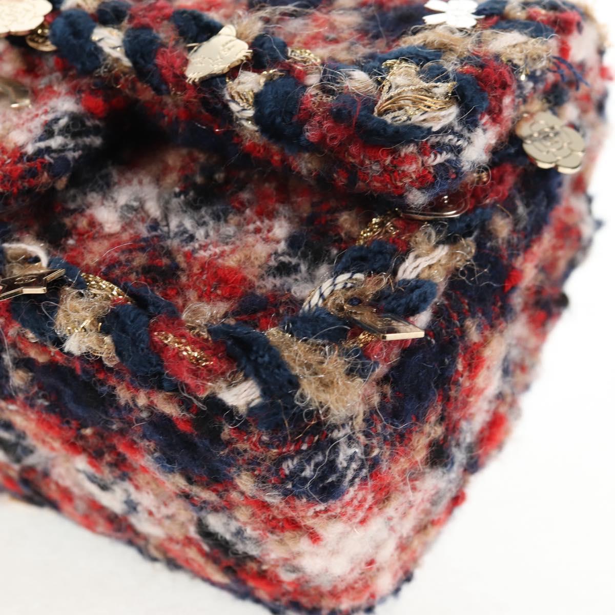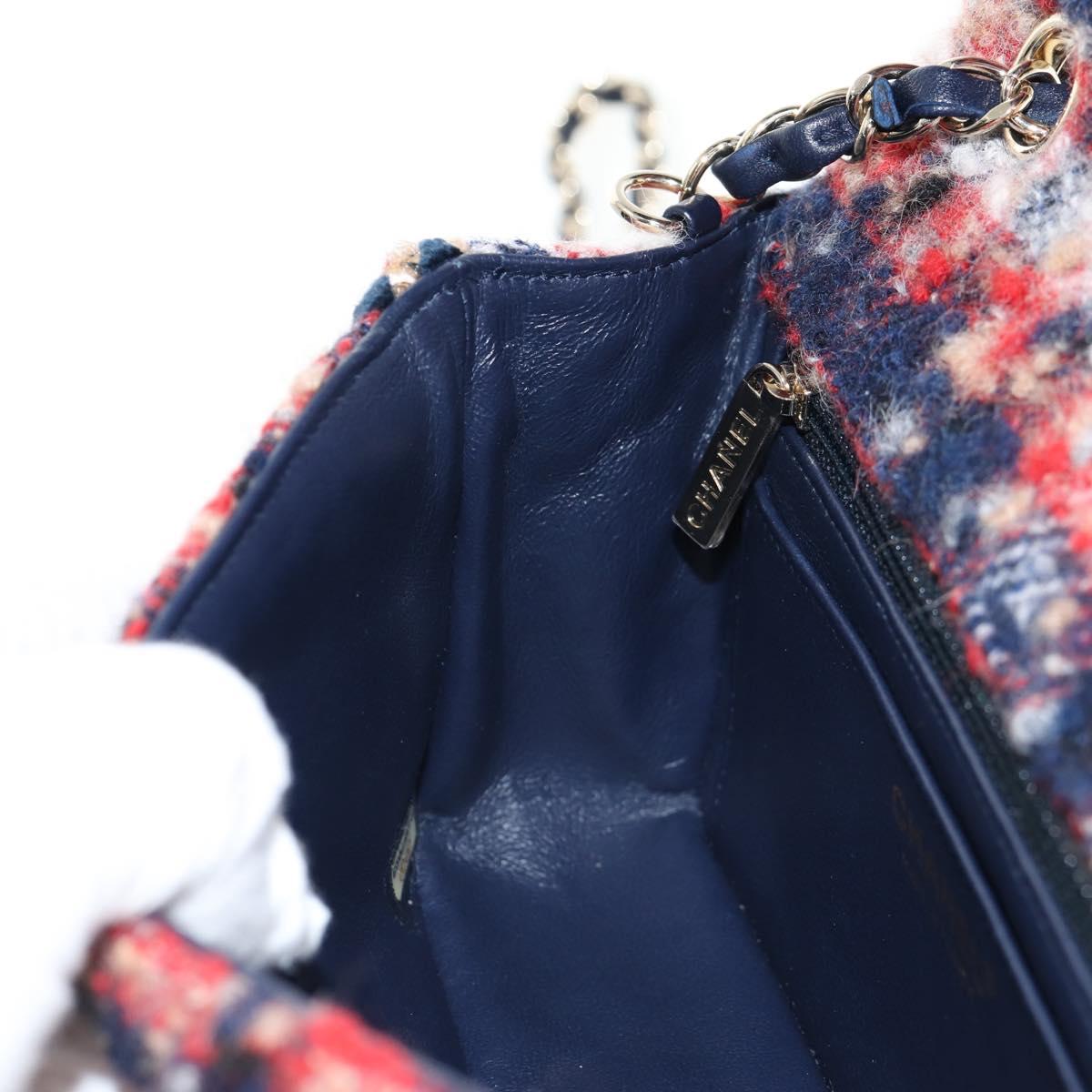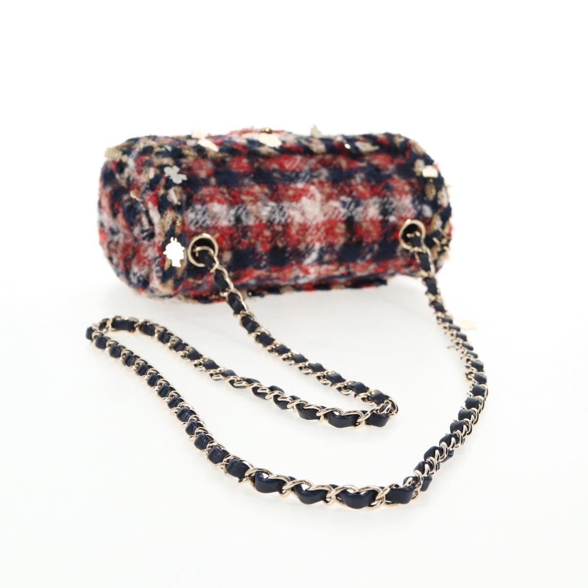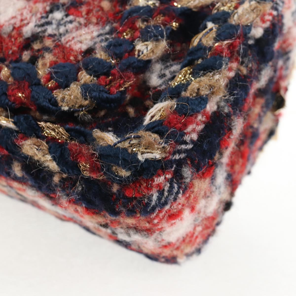 CHANEL Matelasse Chain Shoulder Bag Tweed Red Gold CC Auth 142564M