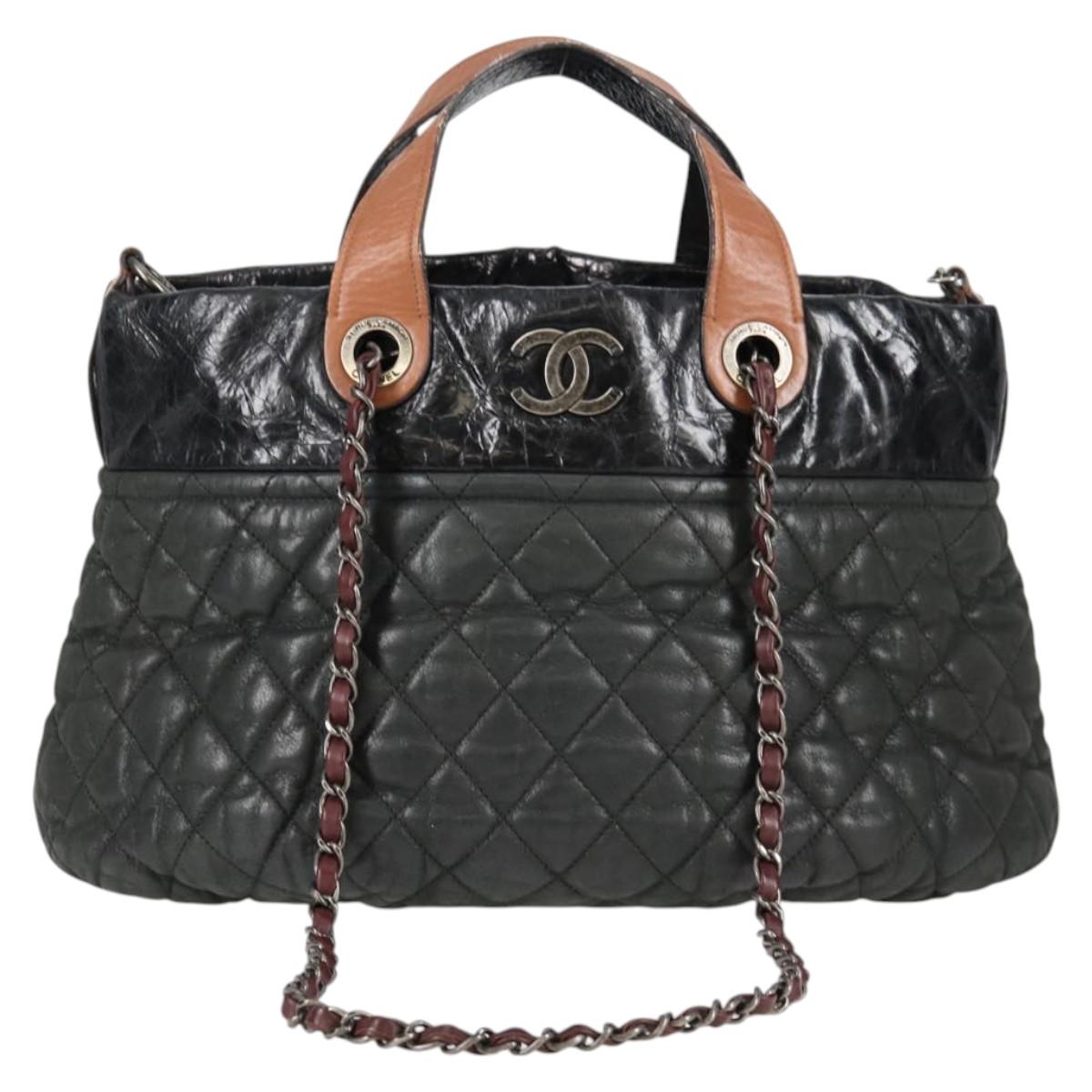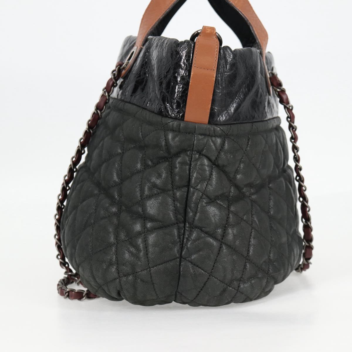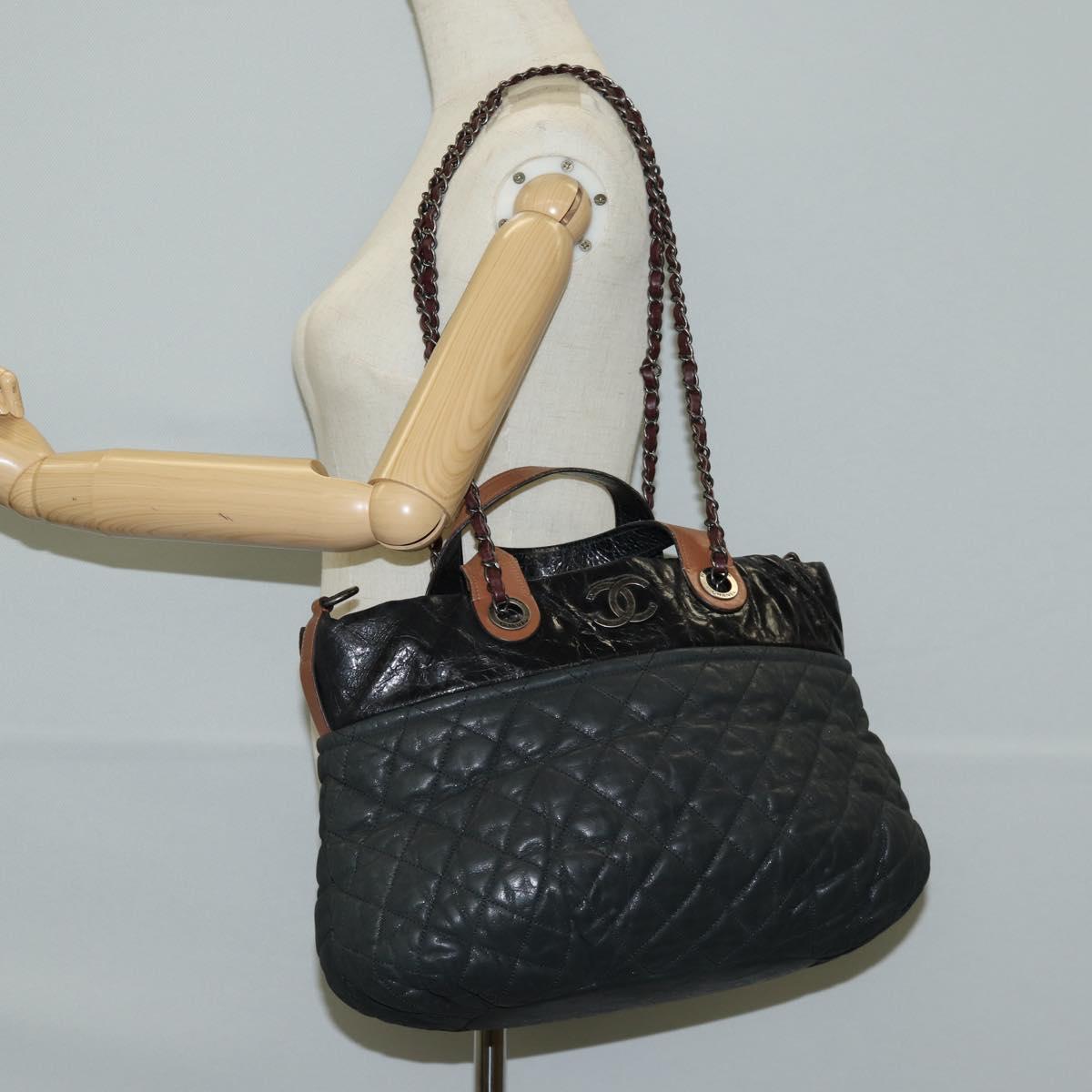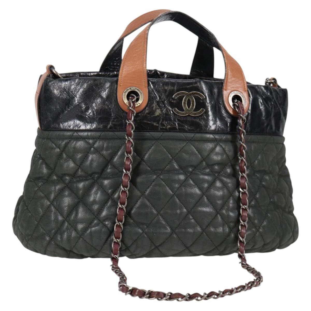 CHANEL Matelasse COCO Mark Hand Bag Leather 2way Khaki CC Auth PP564V