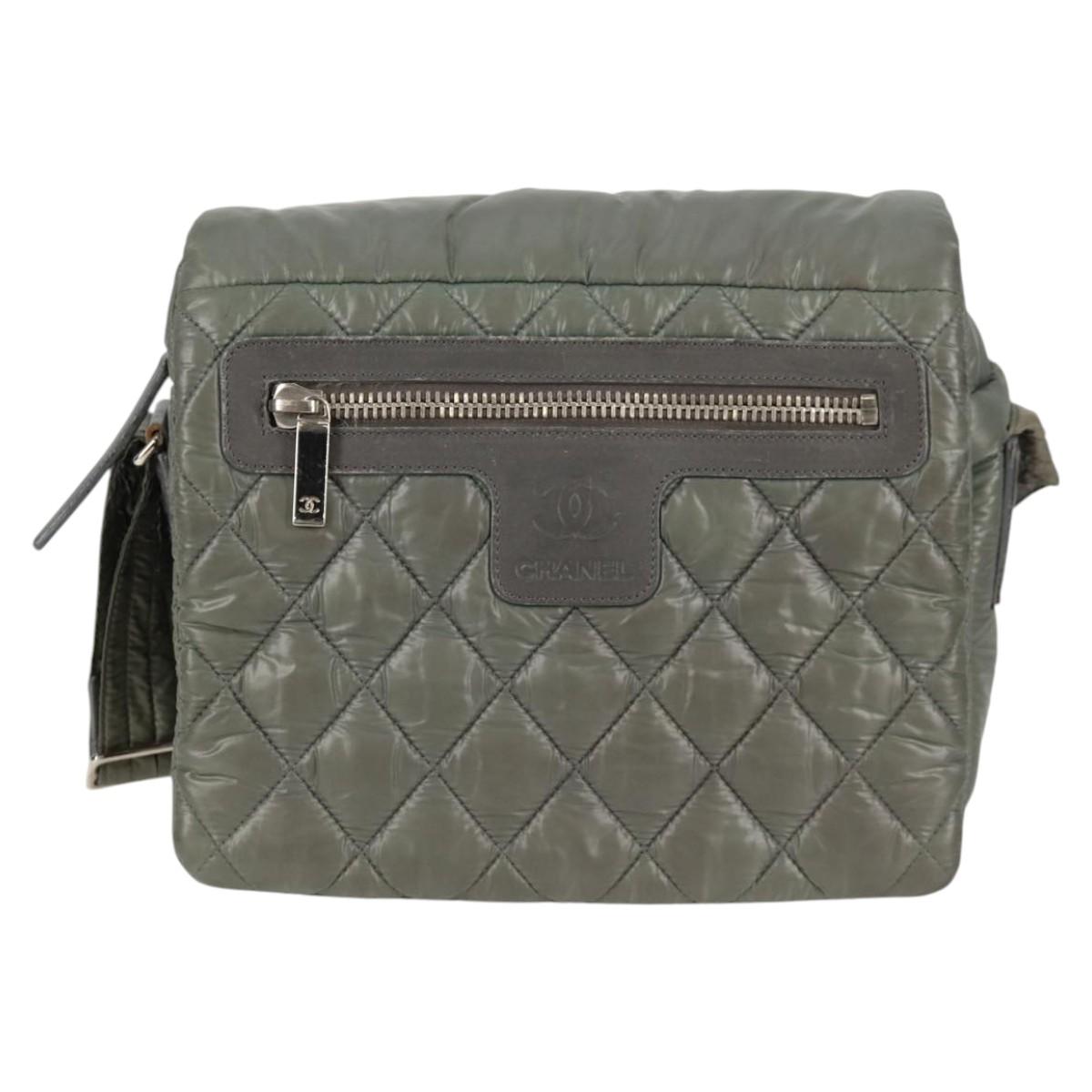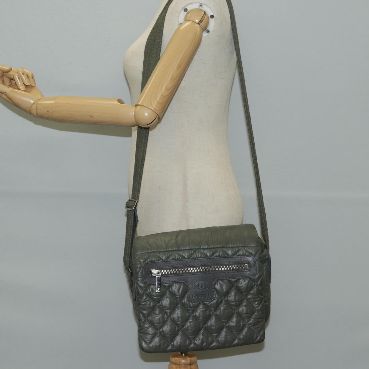 CHANEL Matelasse Cococoon Shoulder Bag Nylon Khaki CC Auth PP547V