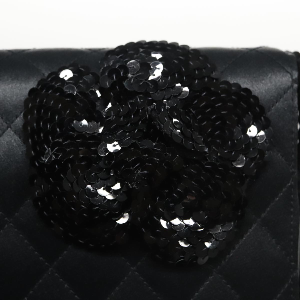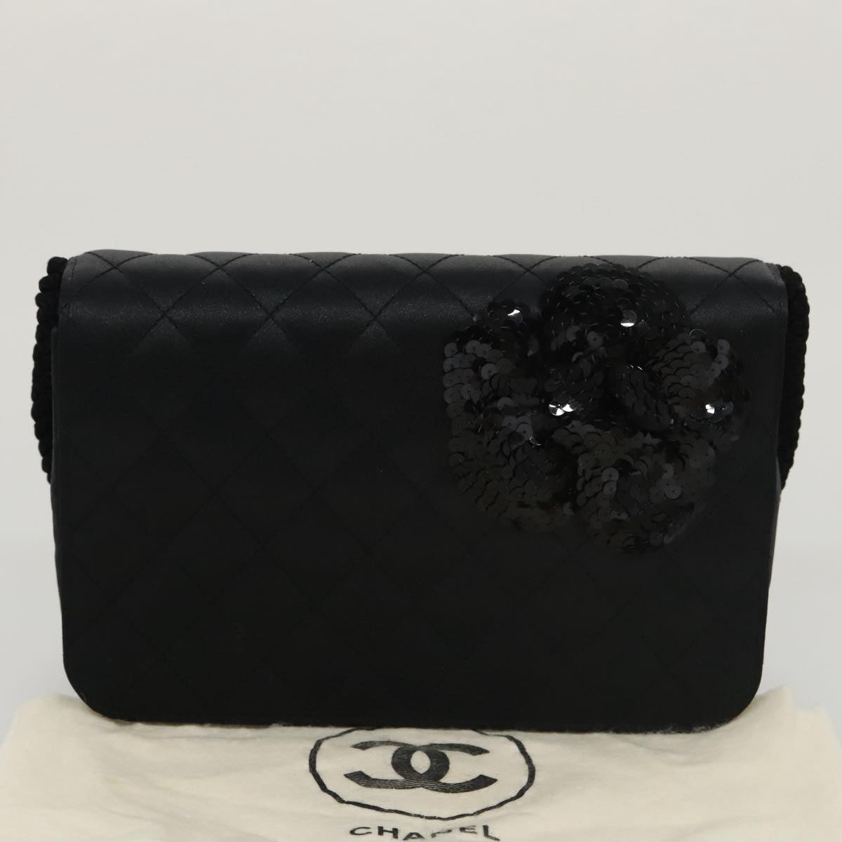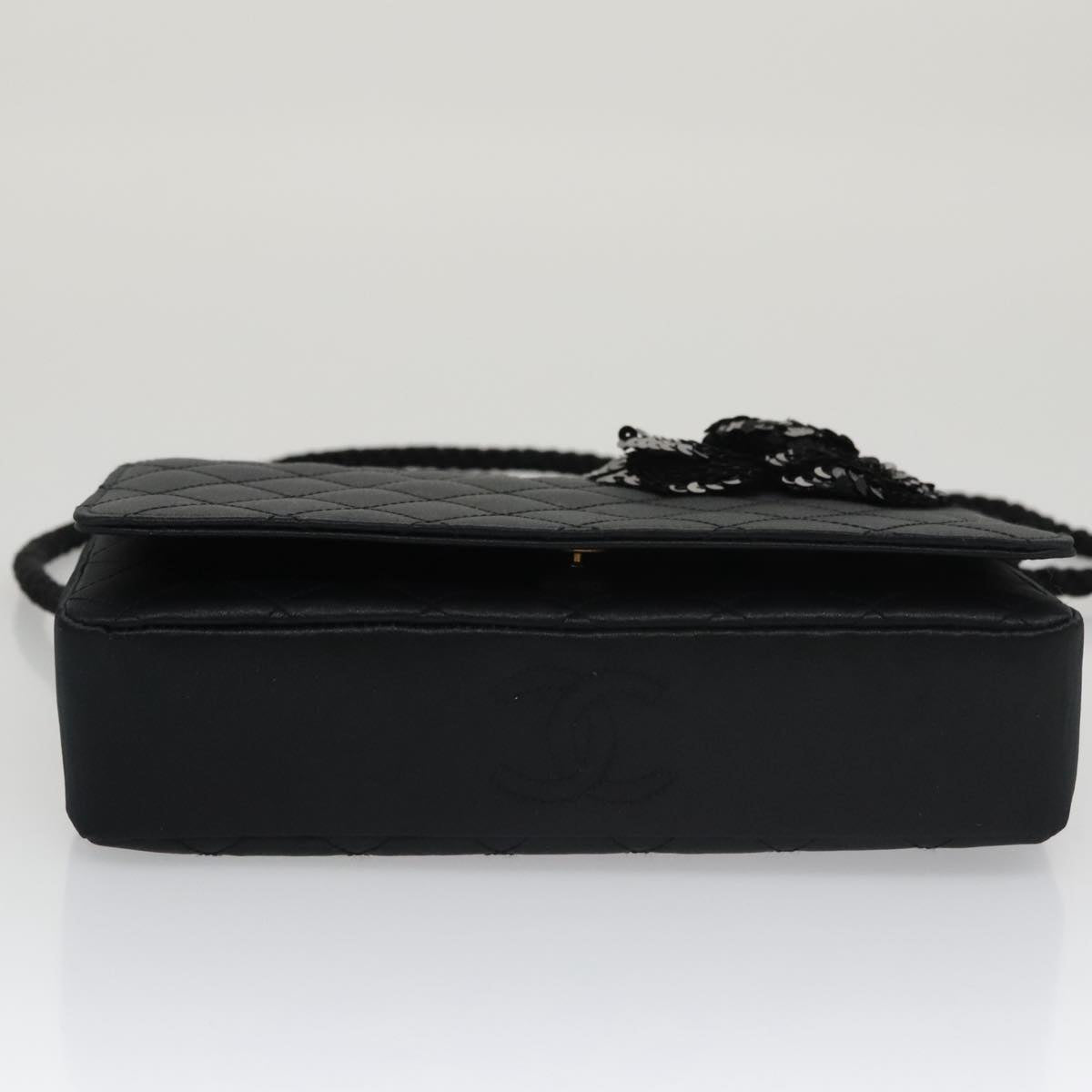 CHANEL Matelasse Sequin Flower Shoulder Bag Satin Black CC Auth 99855V