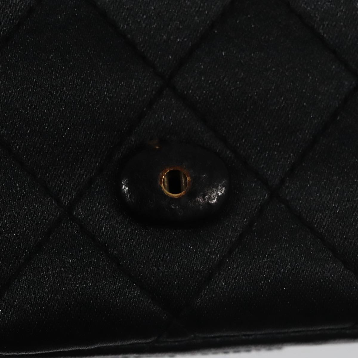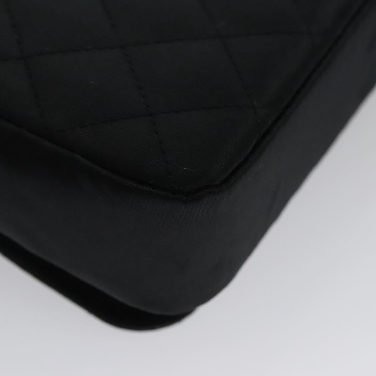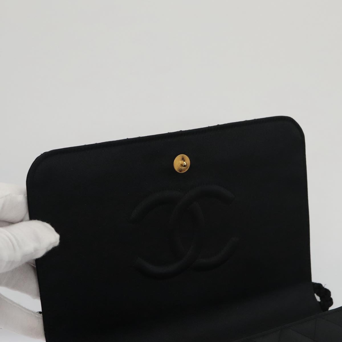 CHANEL Matelasse Sequin Flower Shoulder Bag Satin Black CC Auth 99855V