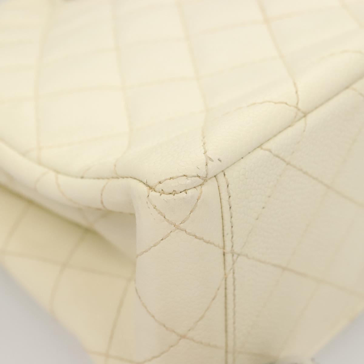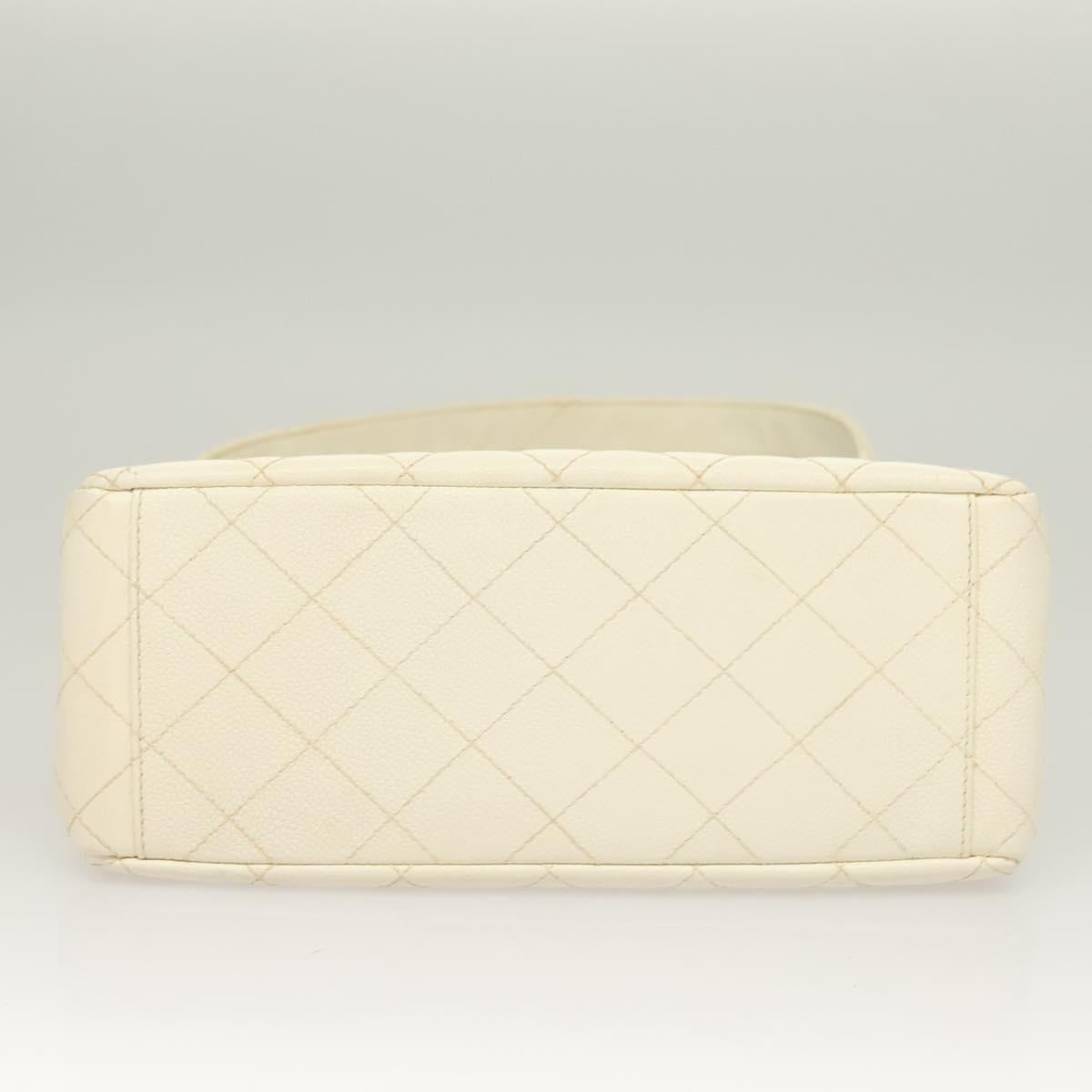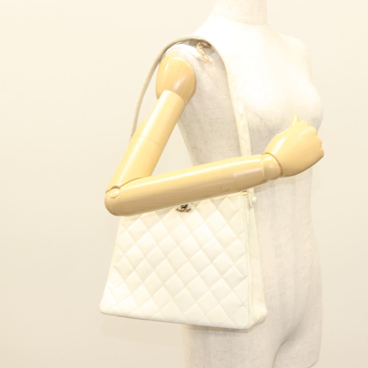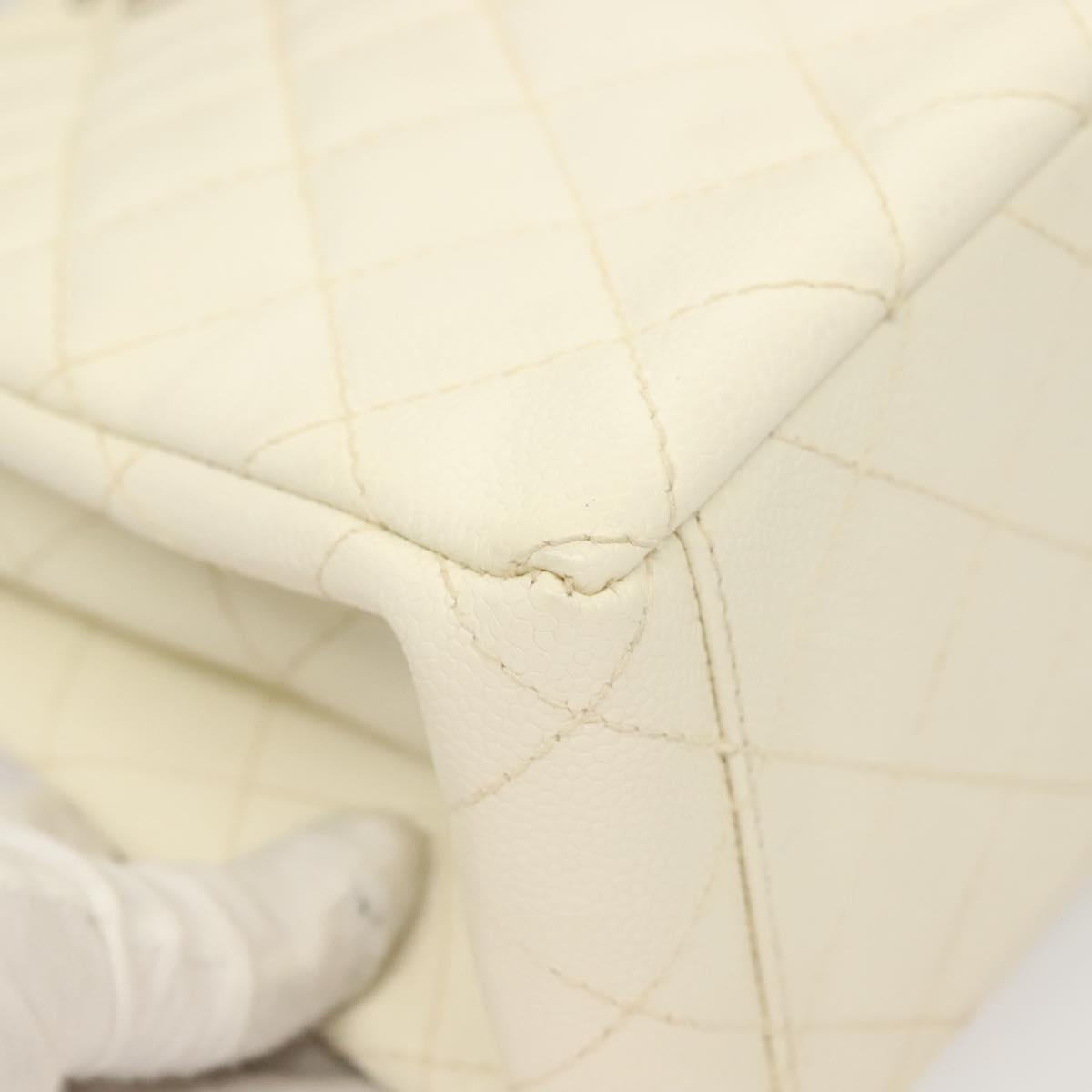 CHANEL Matelasse Shoulder Bag Caviar Skin White Silver CC Auth PP803V