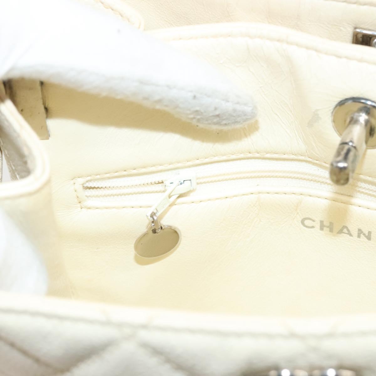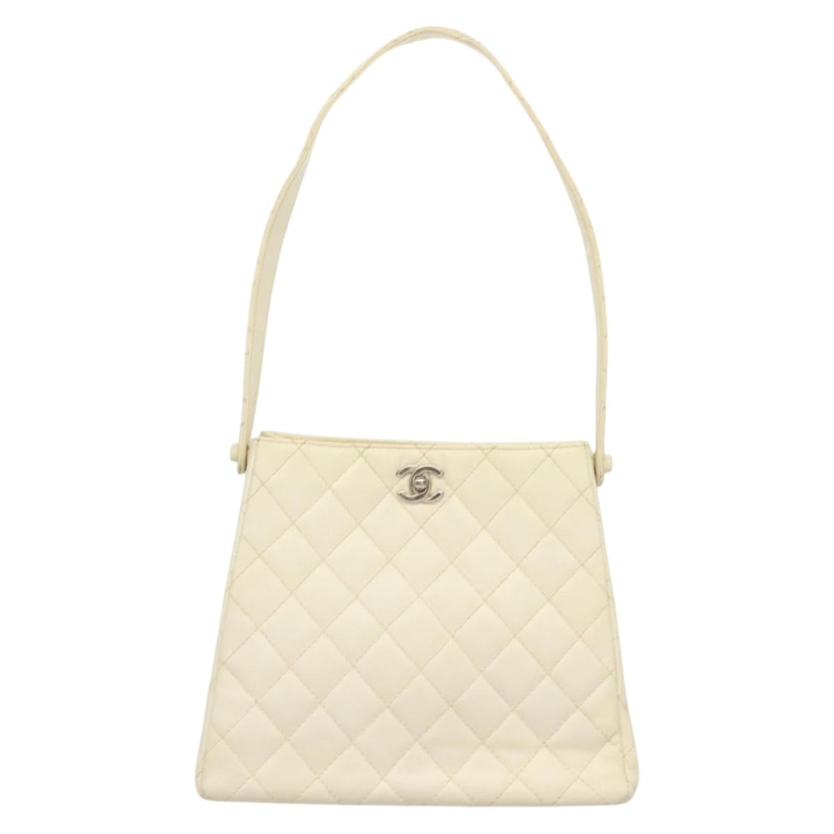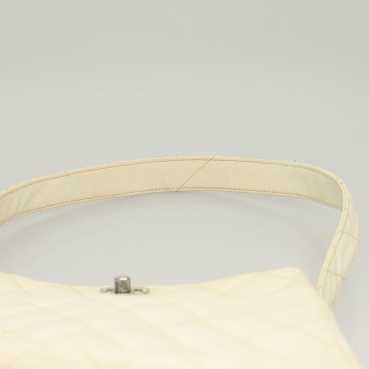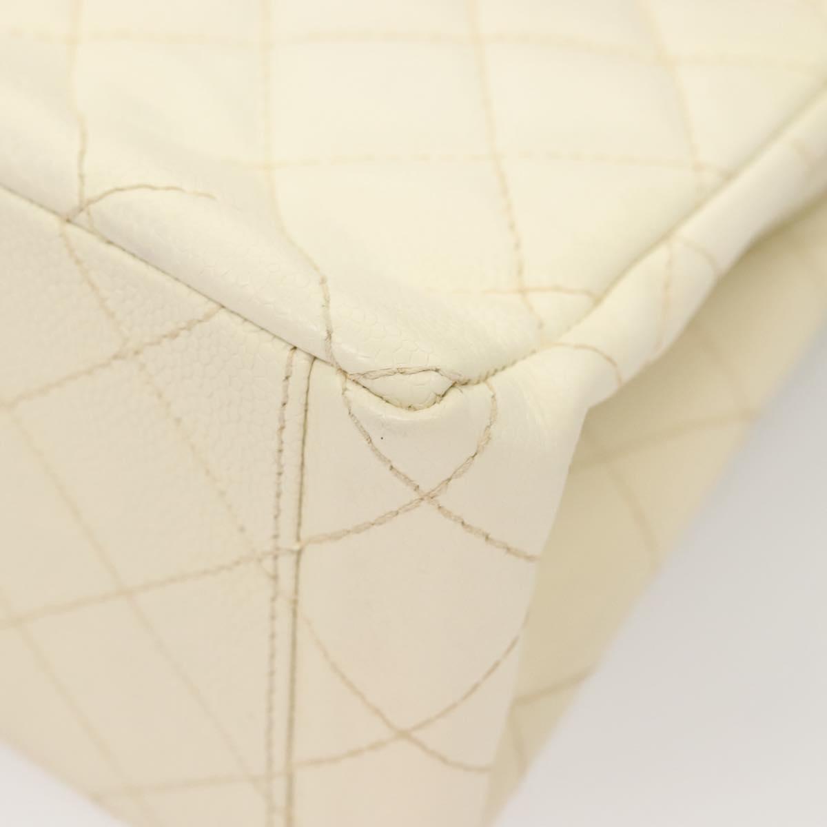CHANEL Matelasse Shoulder Bag Caviar Skin White Silver CC Auth PP803V