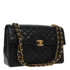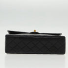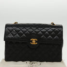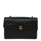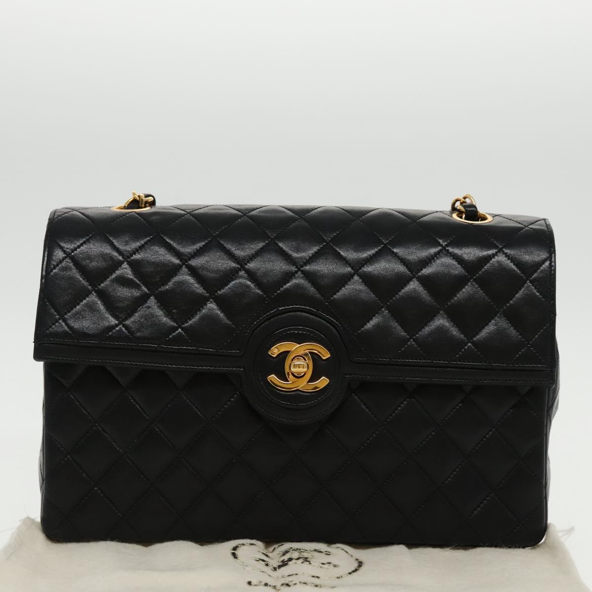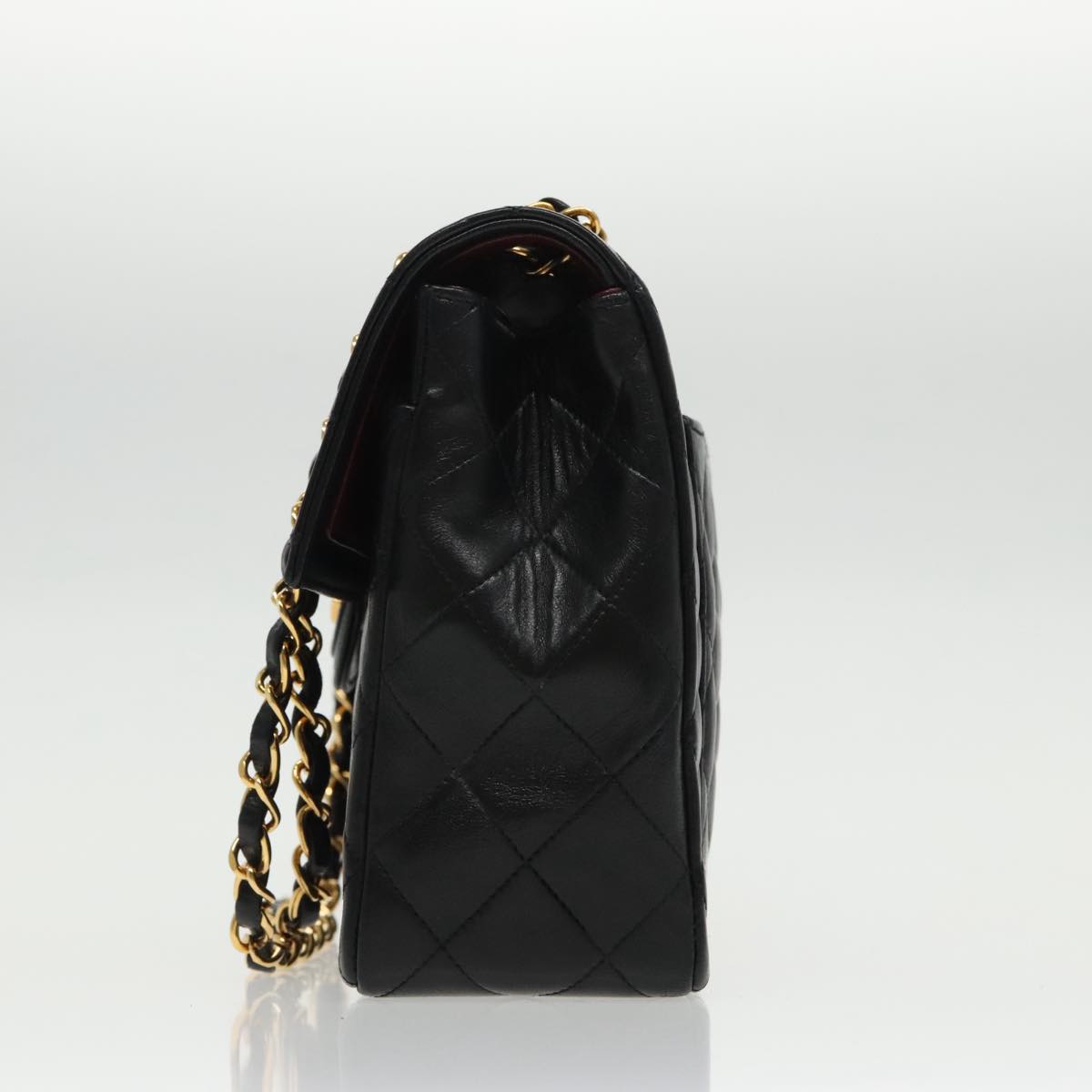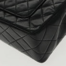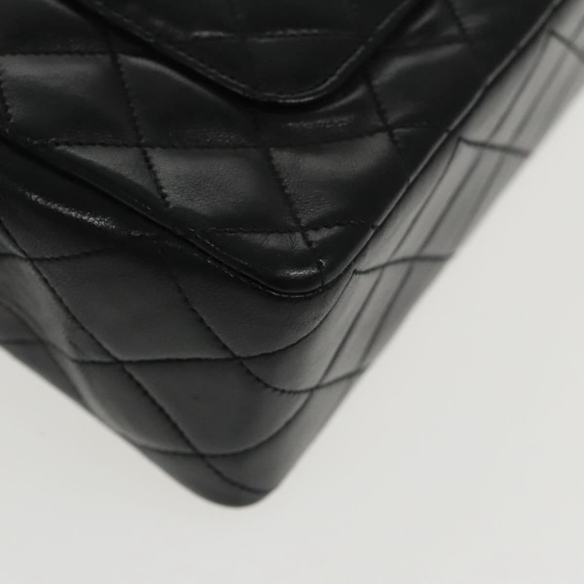 CHANEL Matelasse Turn Lock Chain Hand Bag Lamb Skin Black Gold CC Auth yk15738AV