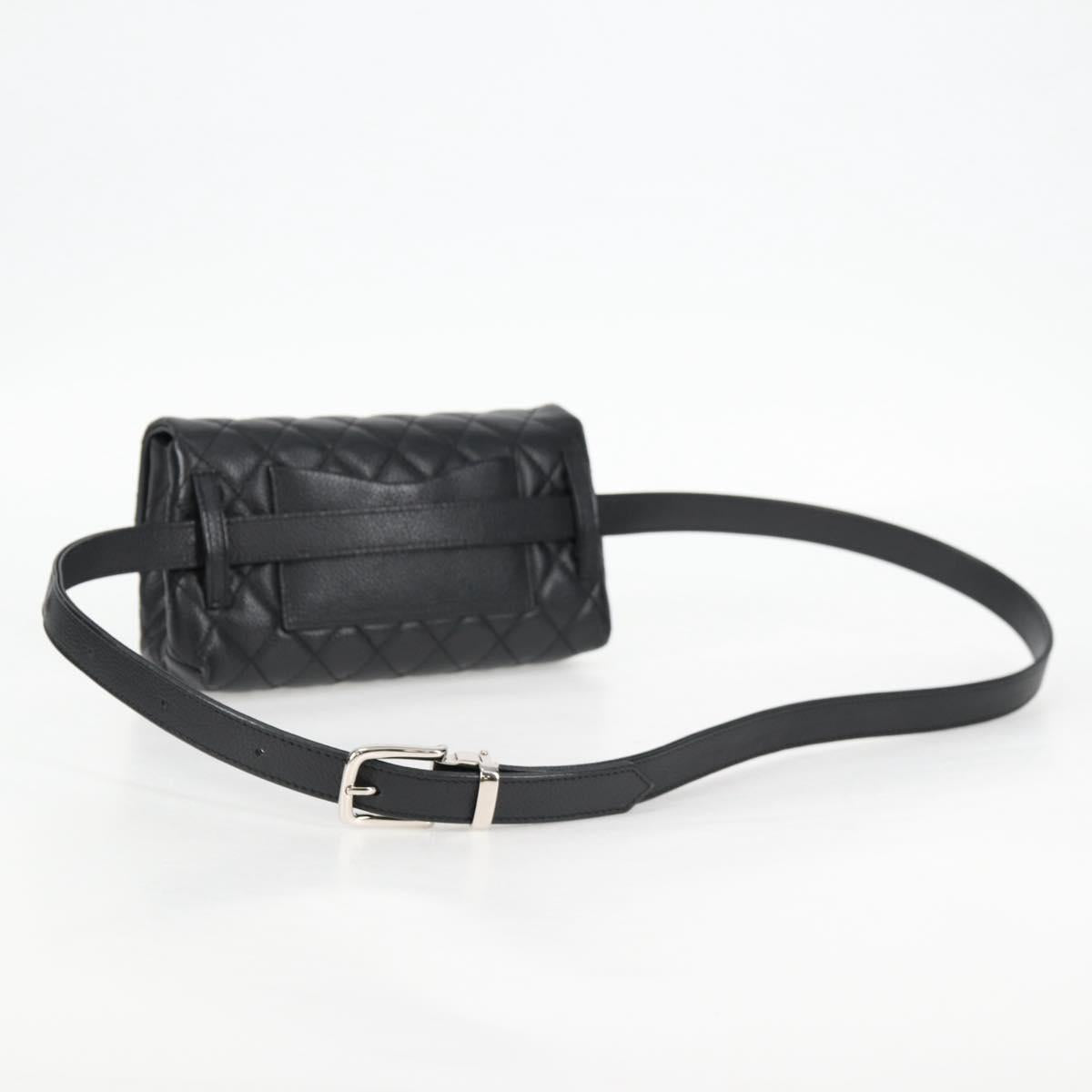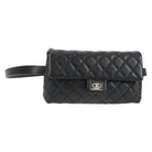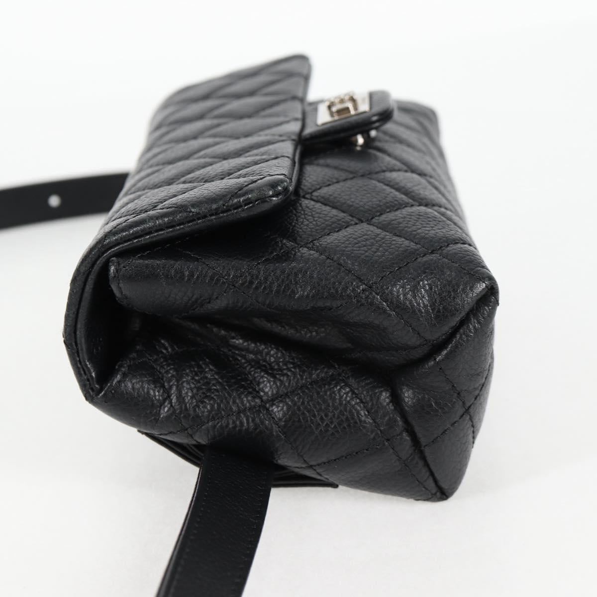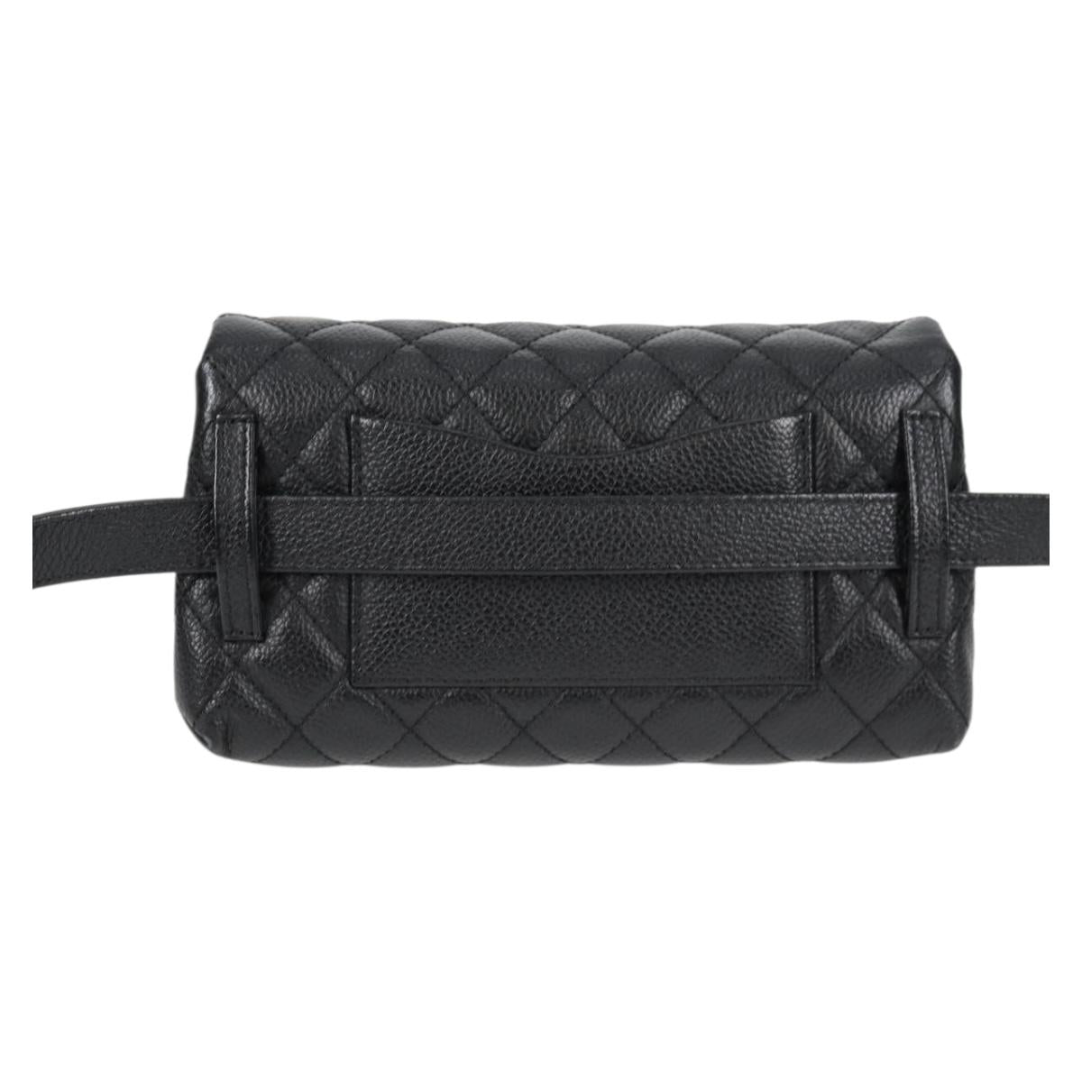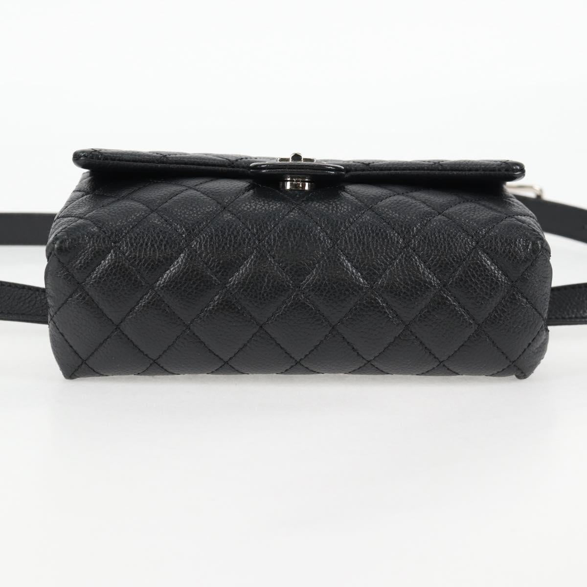CHANEL Matelasse Waist Bag Caviar Skin Black Silver CC Auth 132565M