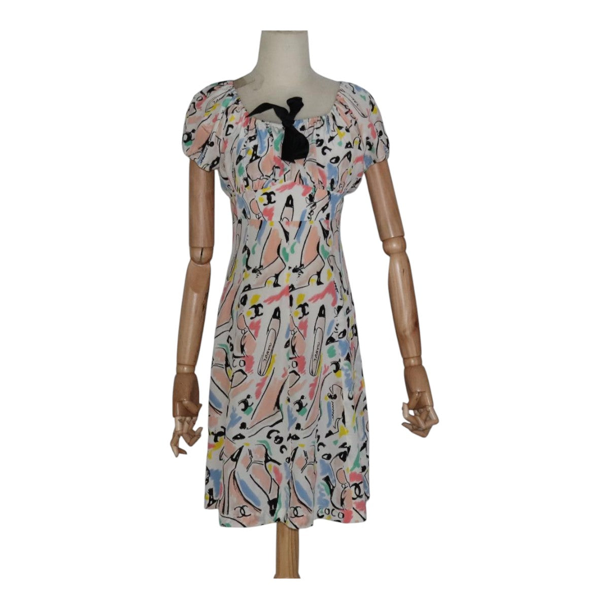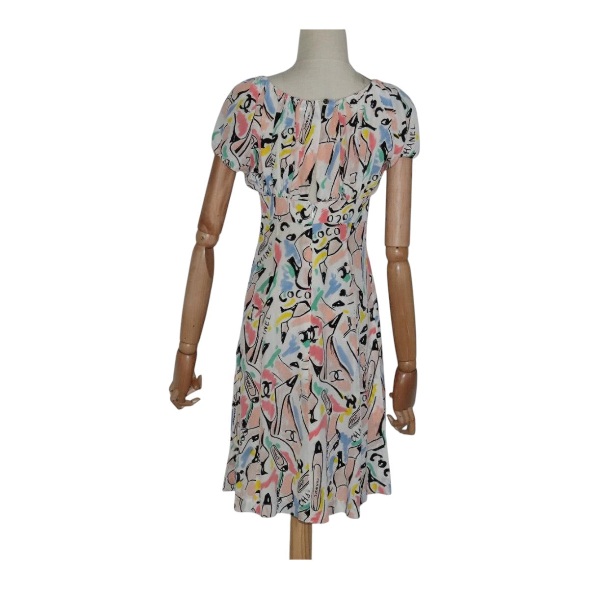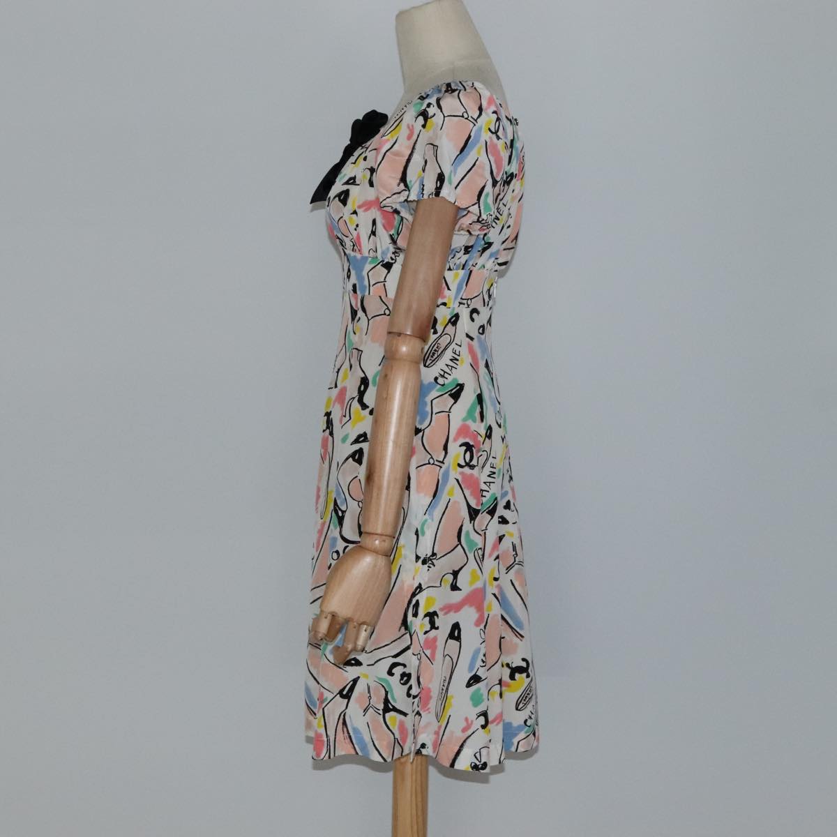 CHANEL One Piece Silk Multicolor CC Auth FF0253M