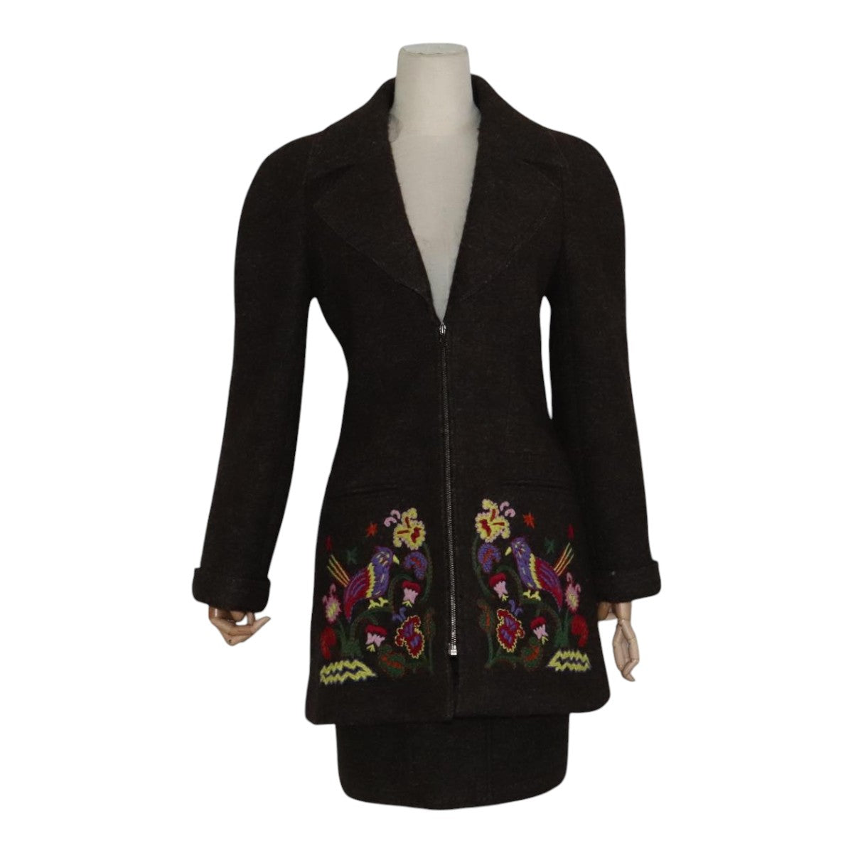 CHANEL Setup Skirt Jacket Wool Brown C-TK-5914 CC Auth FF3295V