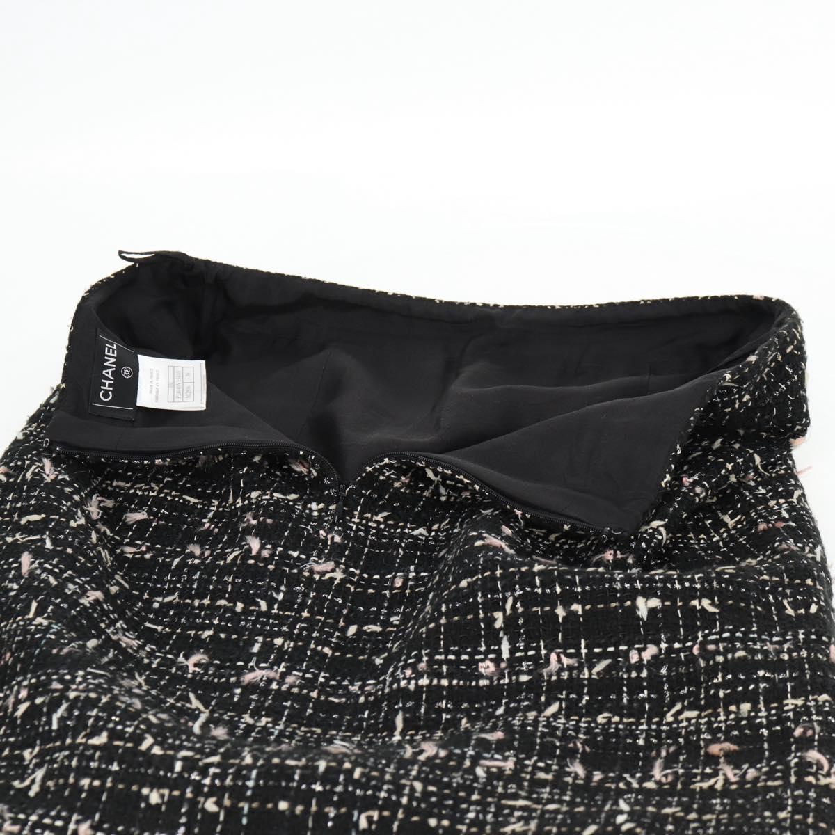 CHANEL Skirt Tweed Black CC Auth am8645V