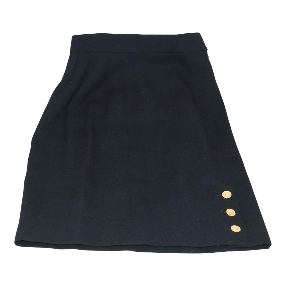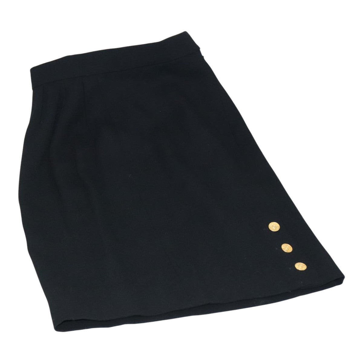 CHANEL Skirt Wool Black CC Auth FF3749V