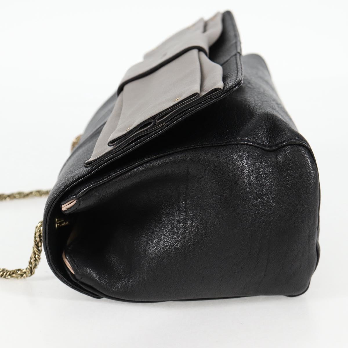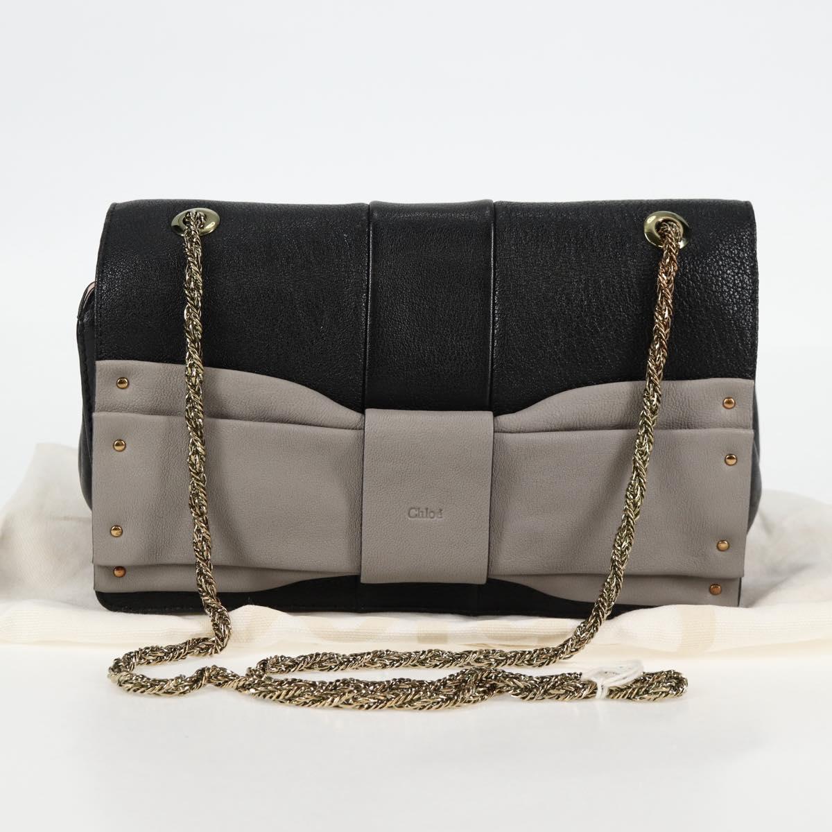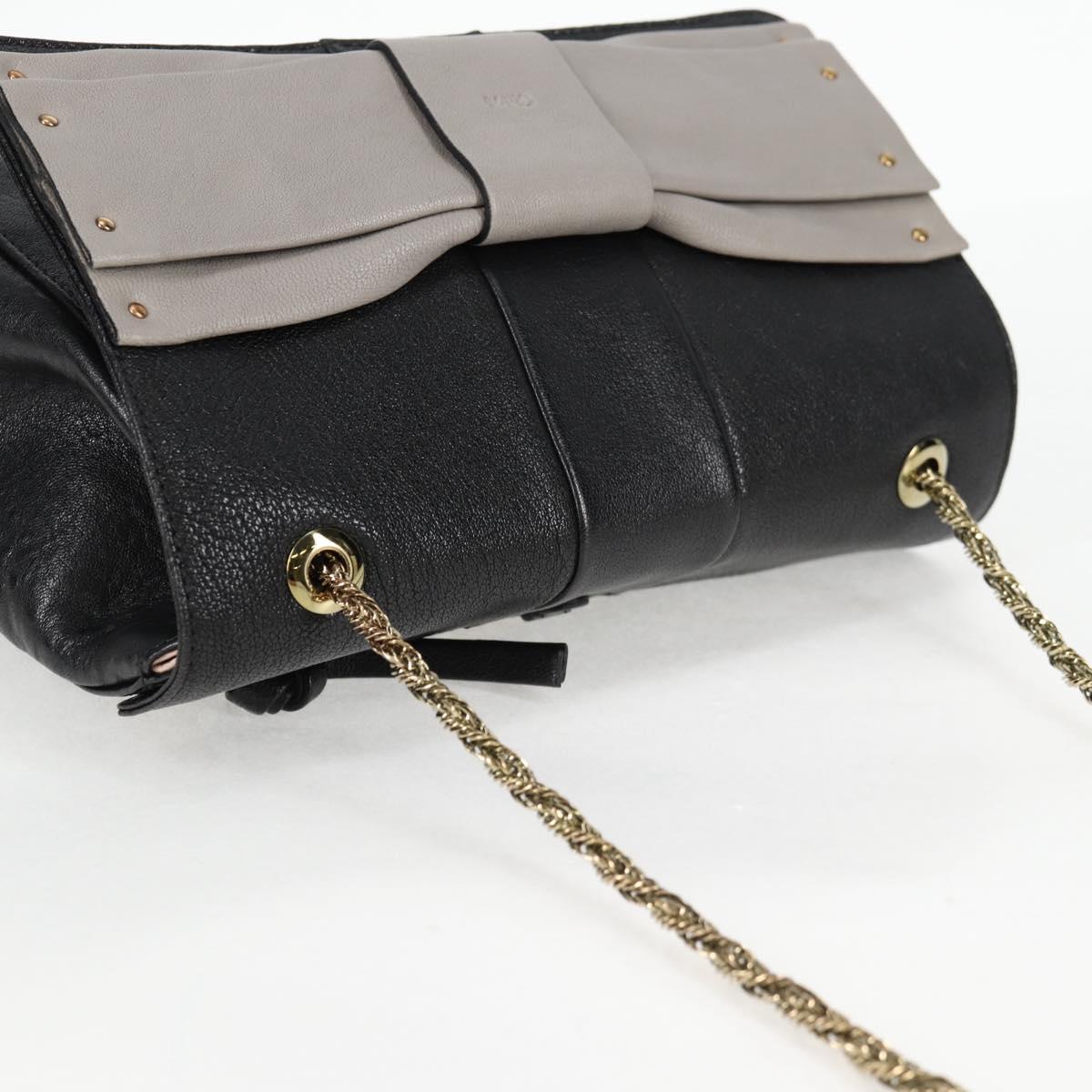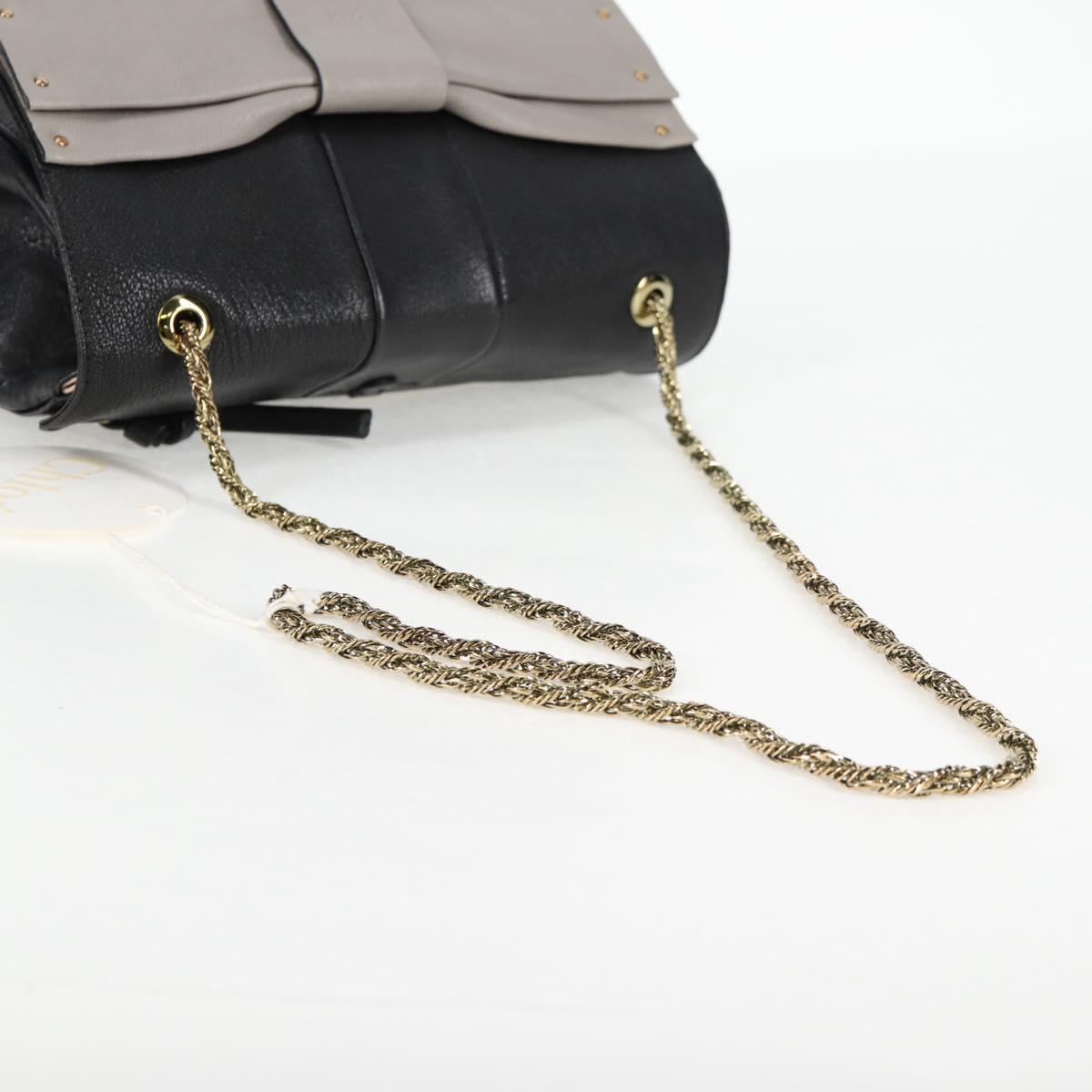 Chloe Chain June Shoulder Bag Leather Black Gold Auth BA4019V