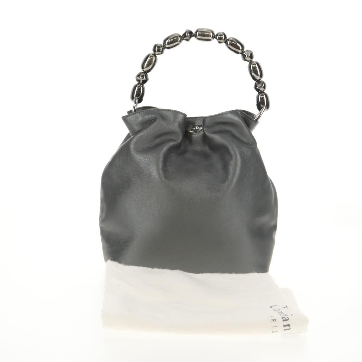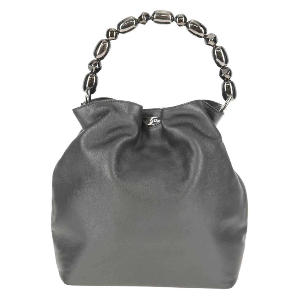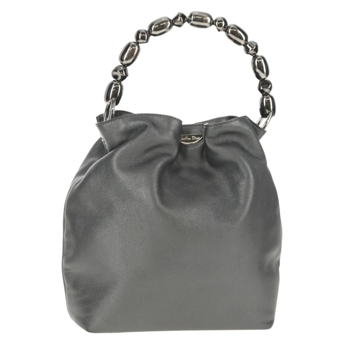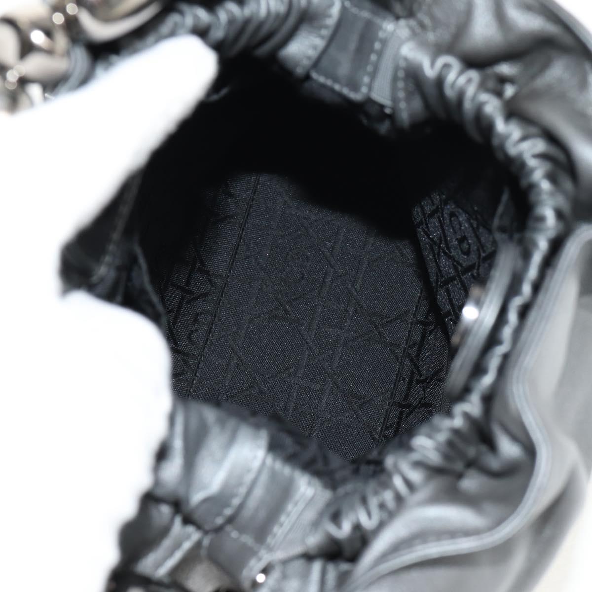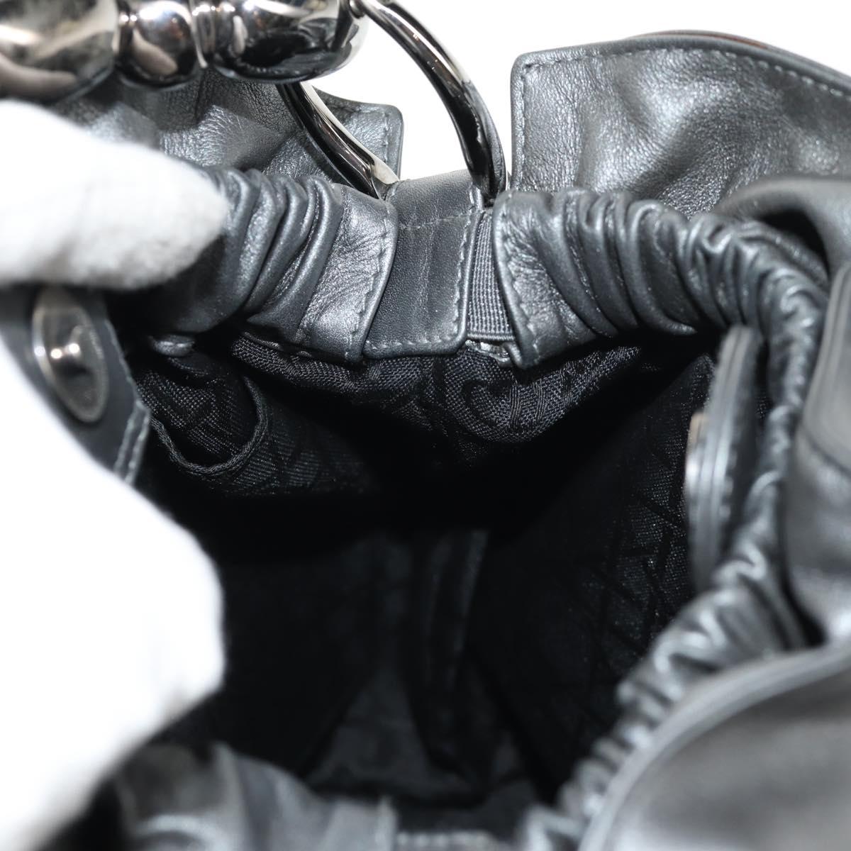 Christian Dior Maris Pearl Hand Bag Leather Silver Auth sw1587V