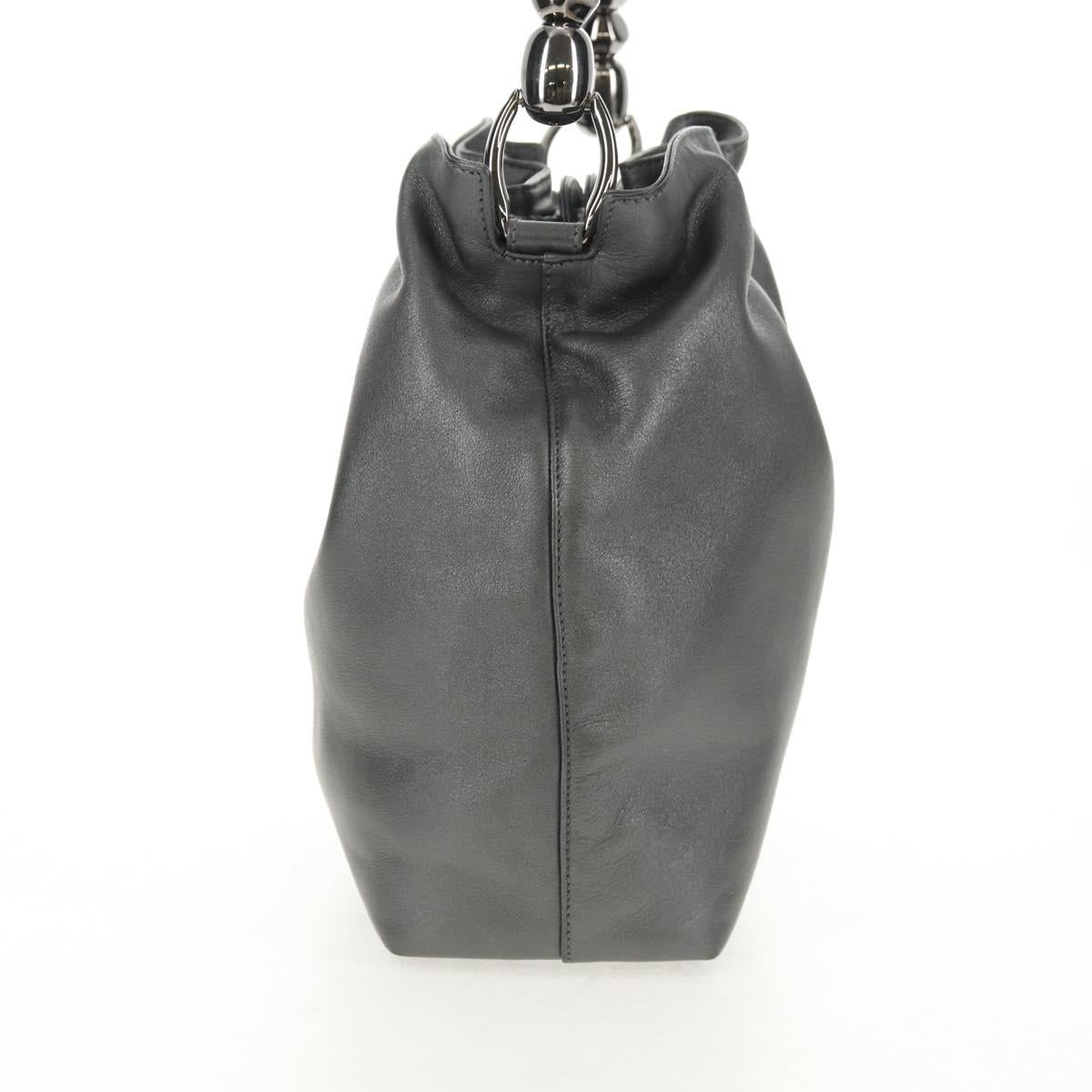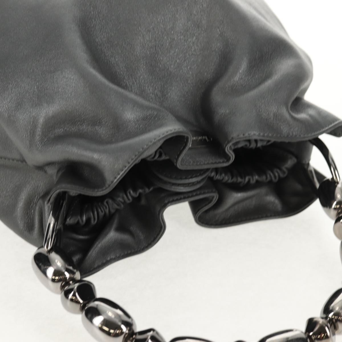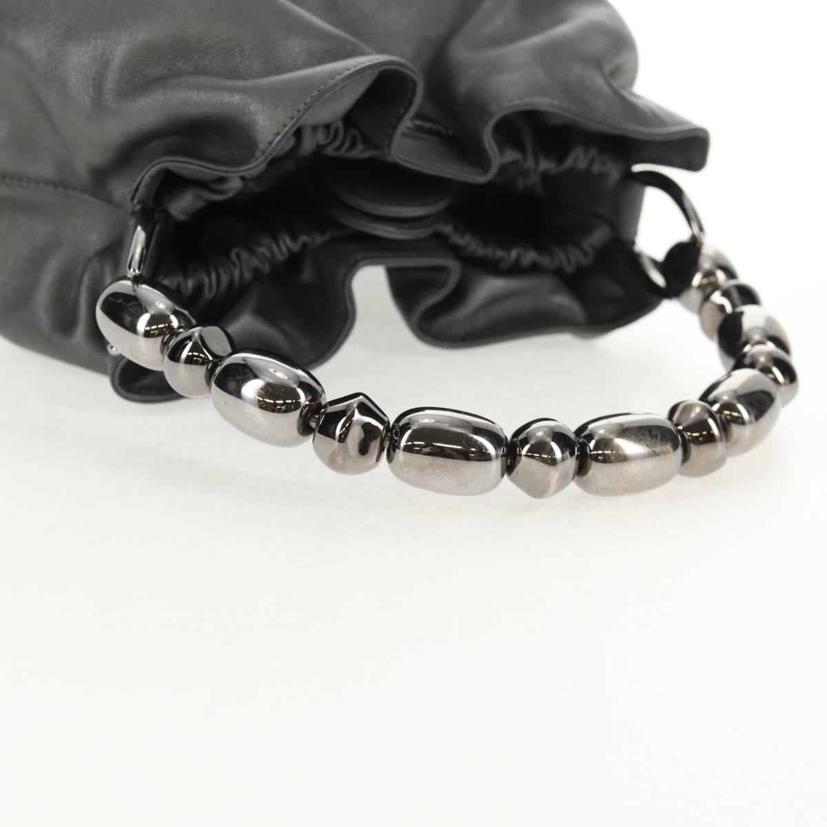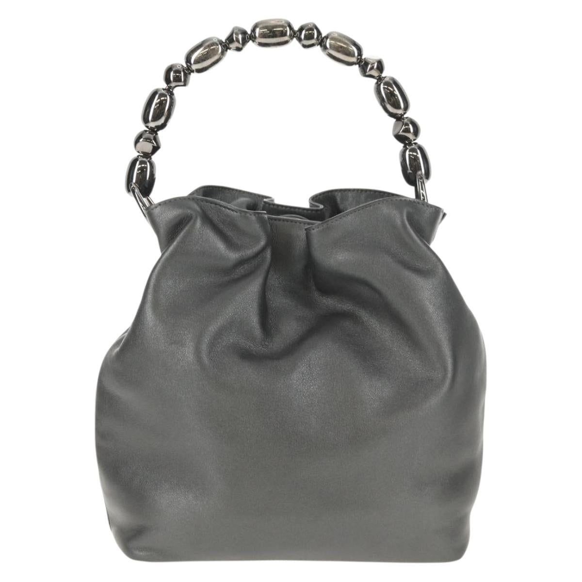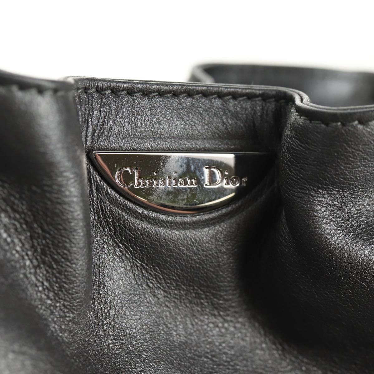 Christian Dior Maris Pearl Hand Bag Leather Silver Auth sw1587V