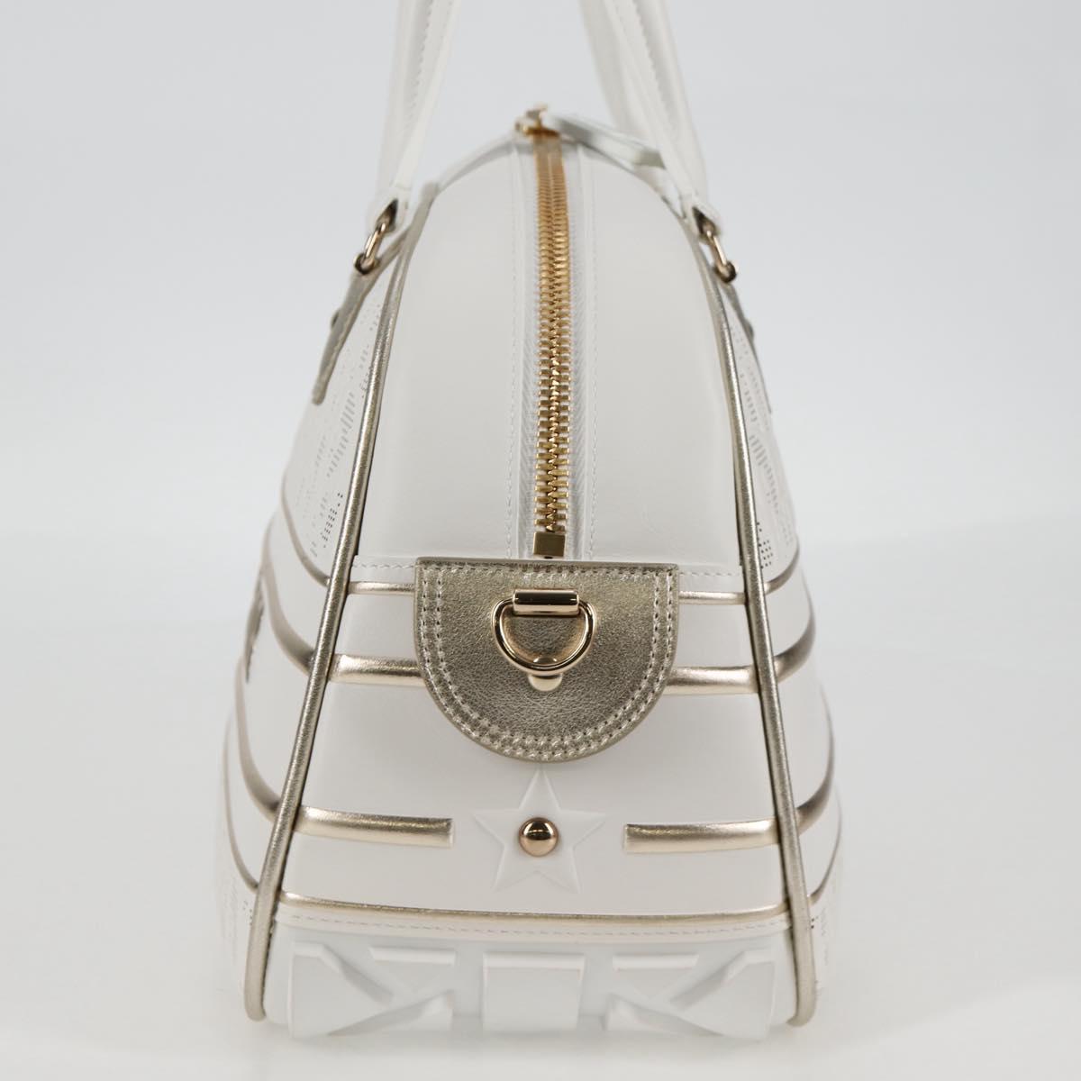 Christian Dior Medium Classic Bowling Bag Bag Leather White Gold Auth 121262M