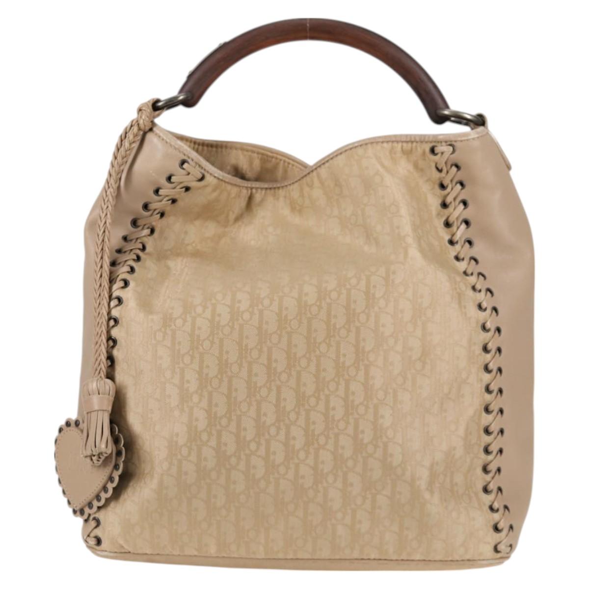 Christian Dior Trotter Canvas Hand Bag Beige Auth 128850V
