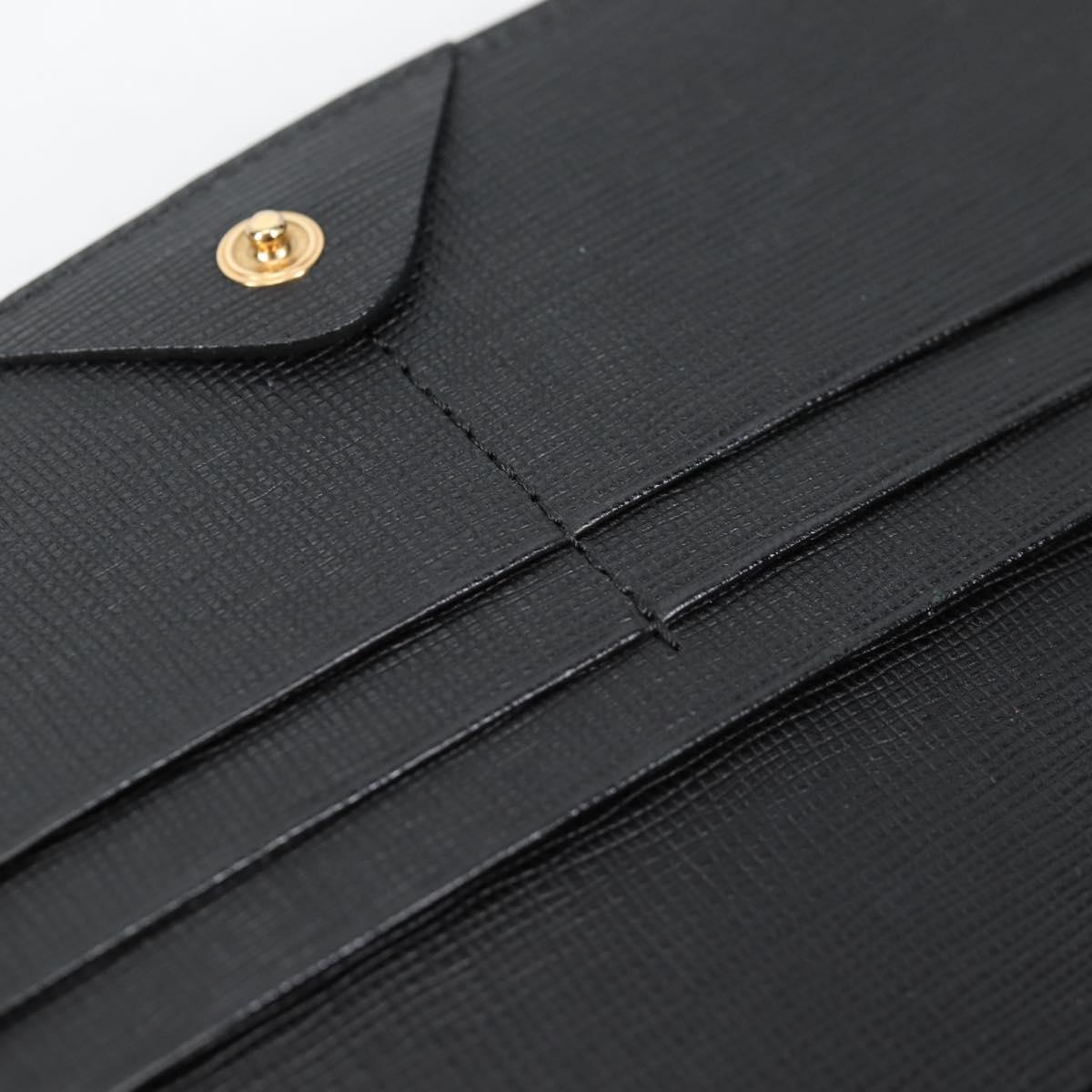 FENDI Chain Long Wallet Leather Black Gold Auth 140694M
