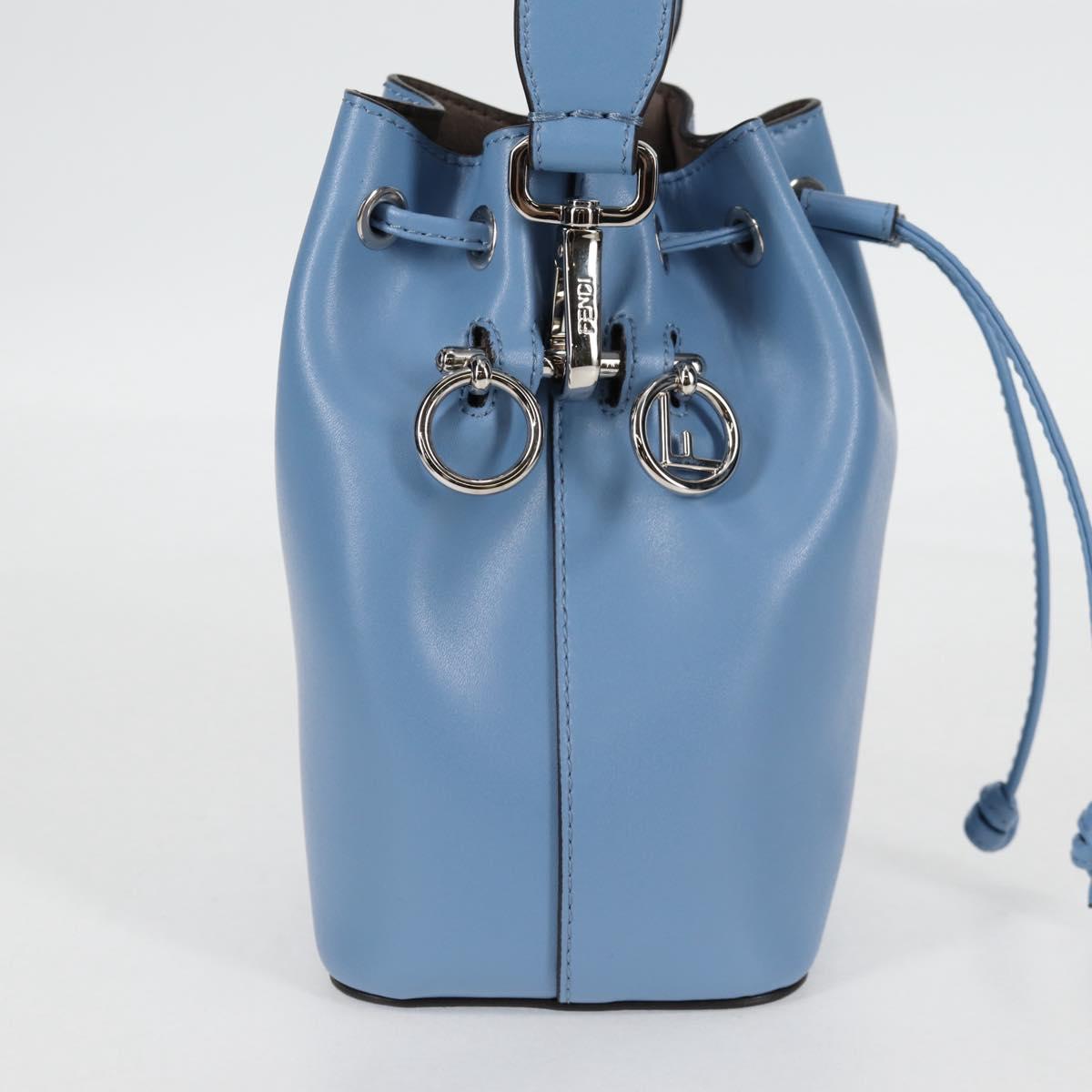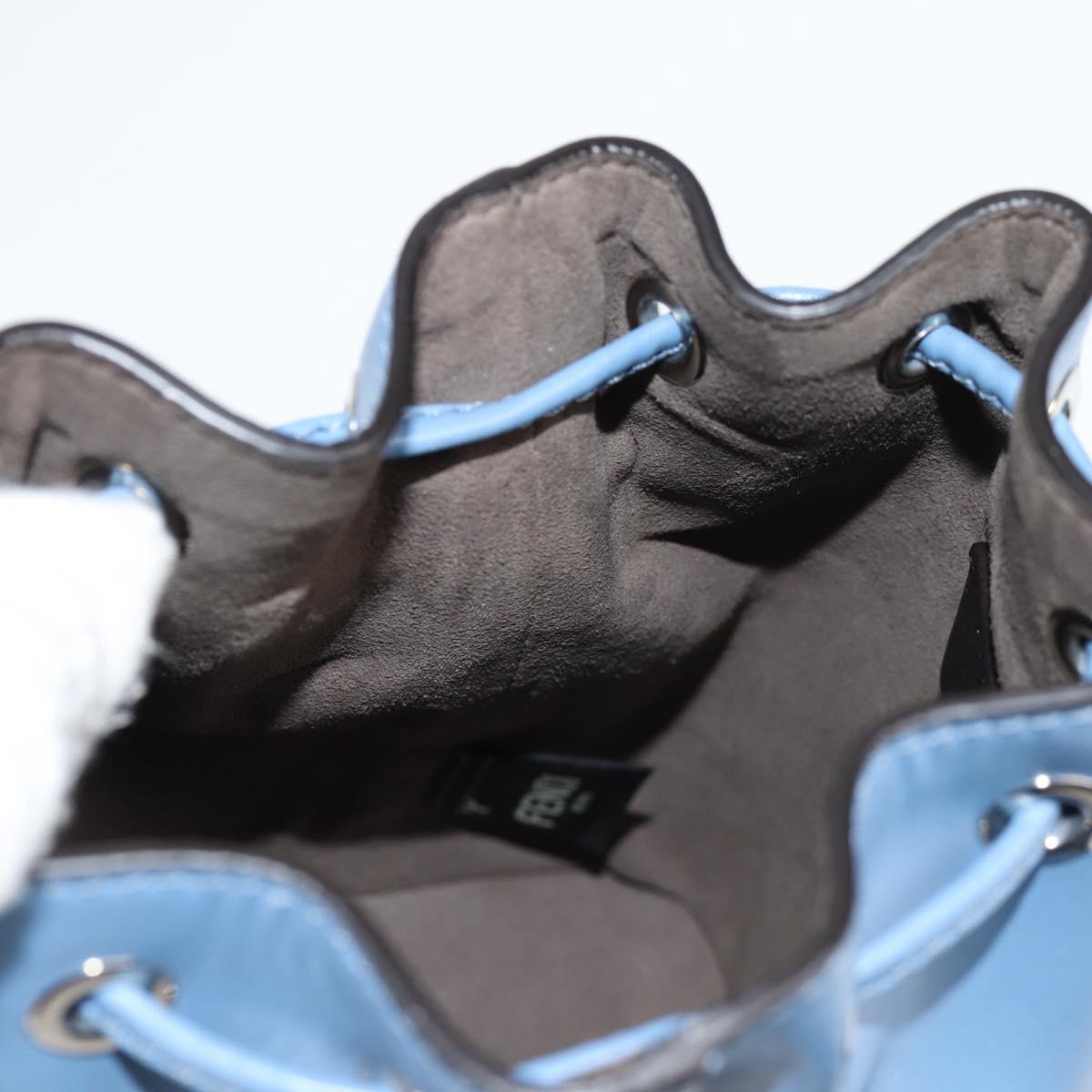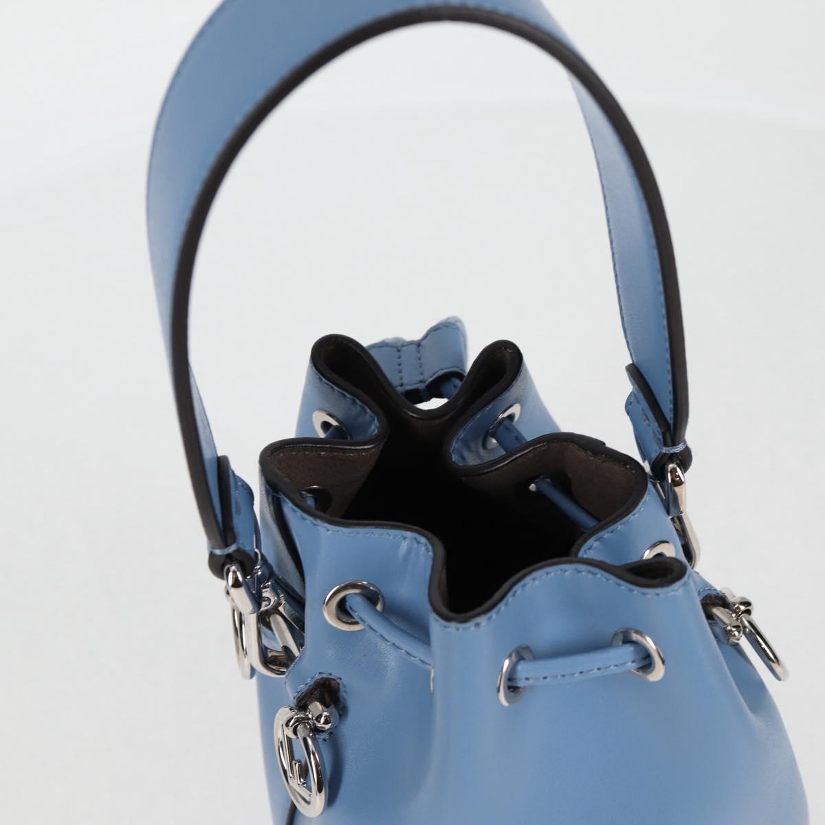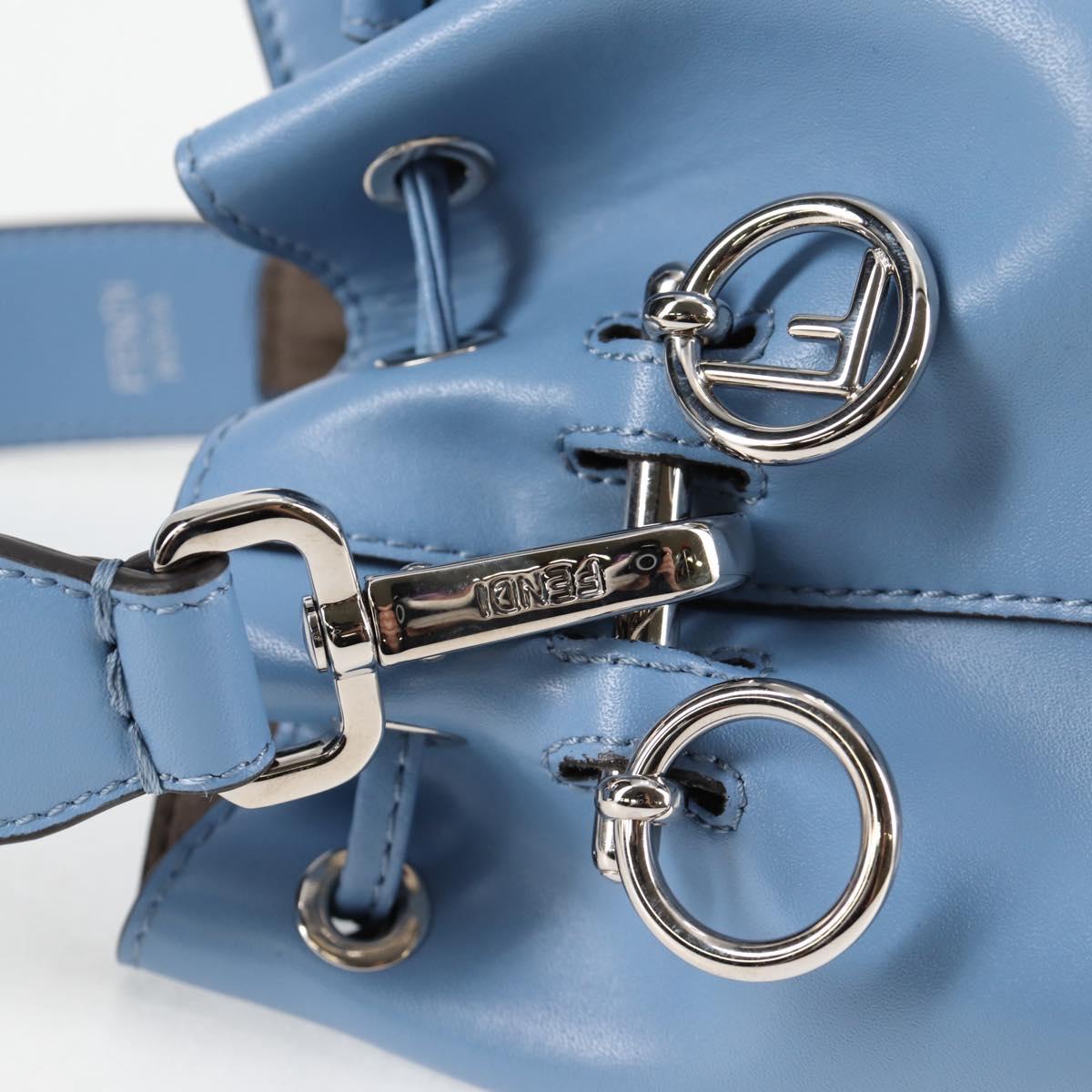 FENDI Mini Montrezor Shoulder Bag Leather Light Blue Silver 8BS010 Auth 121266M