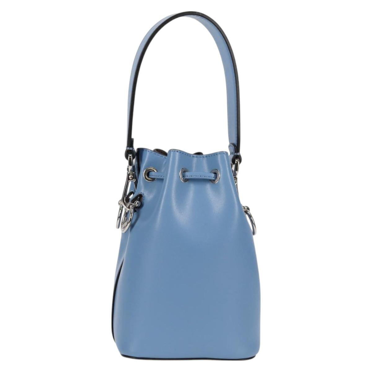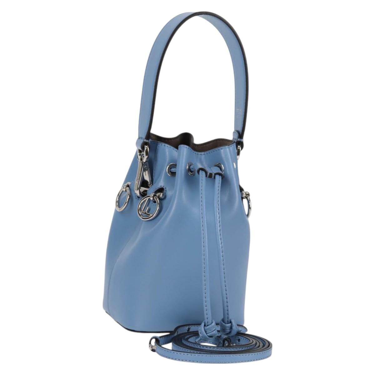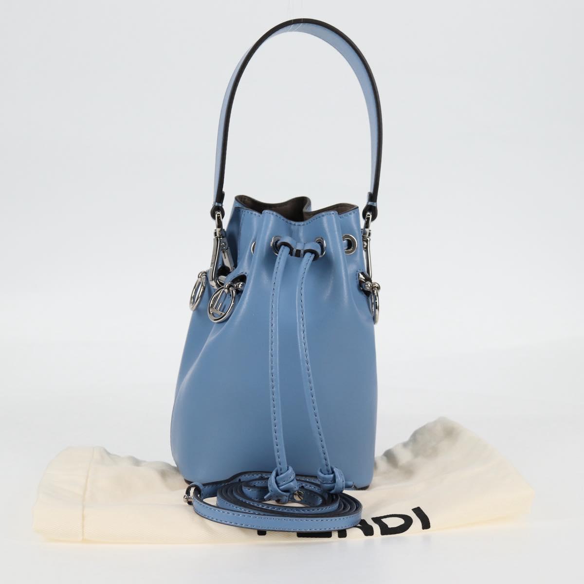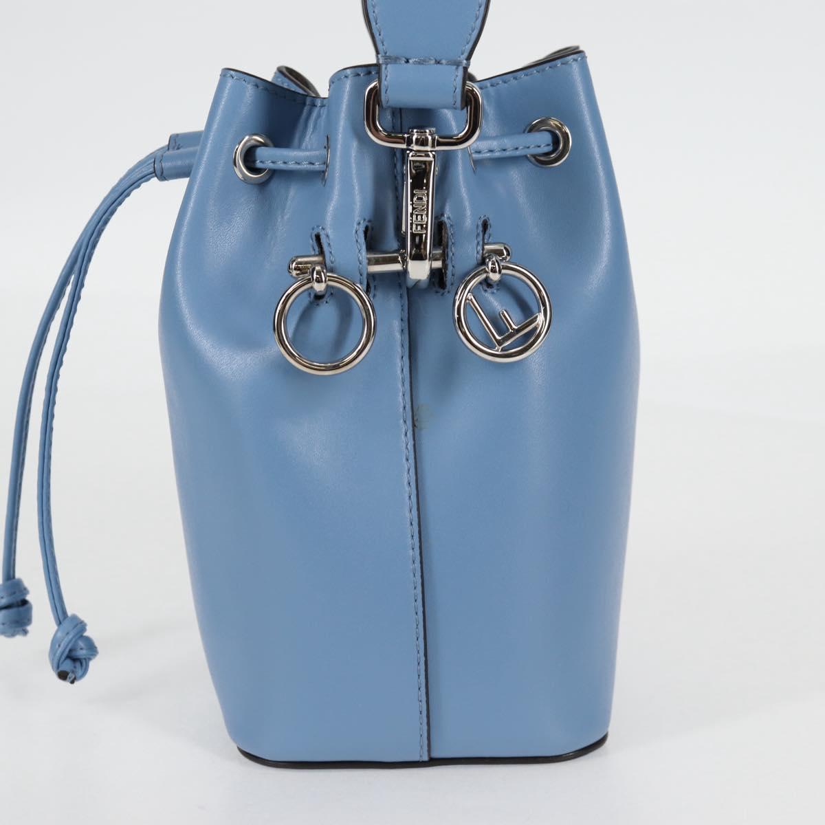 FENDI Mini Montrezor Shoulder Bag Leather Light Blue Silver 8BS010 Auth 121266M