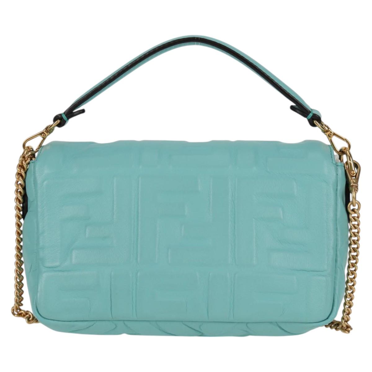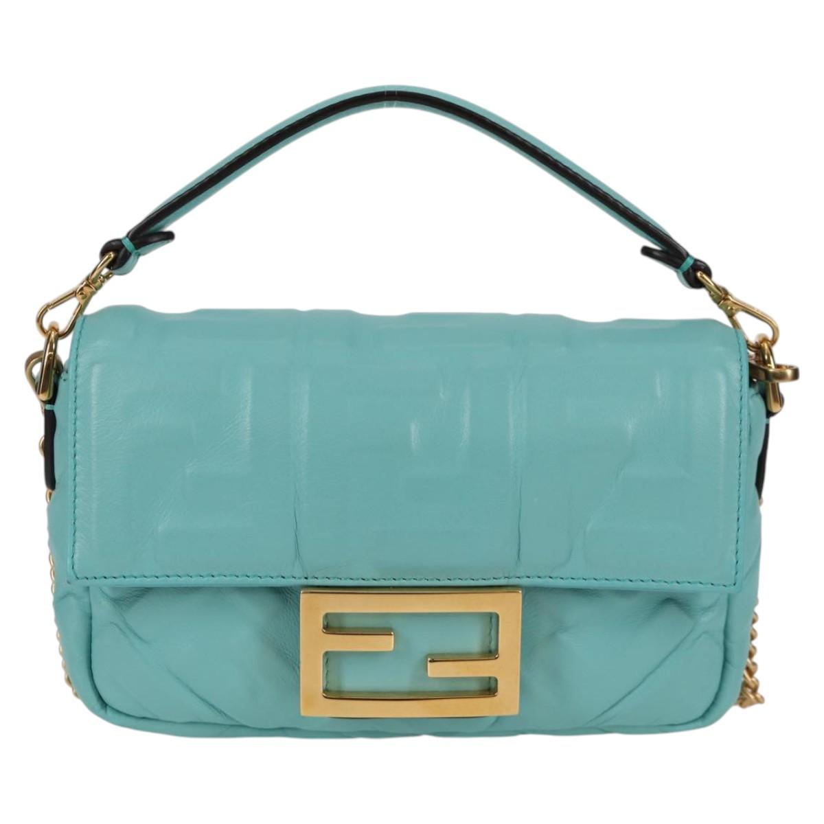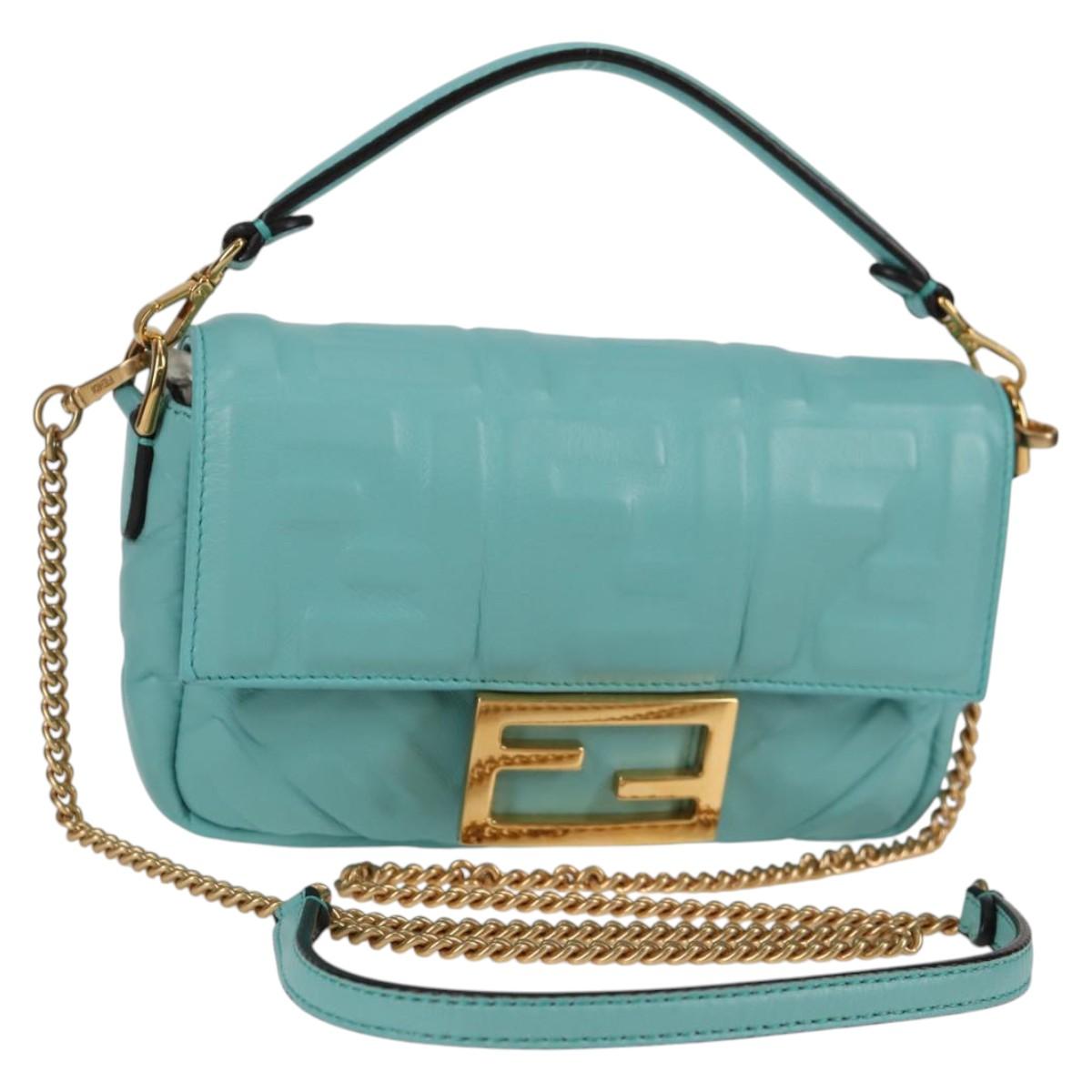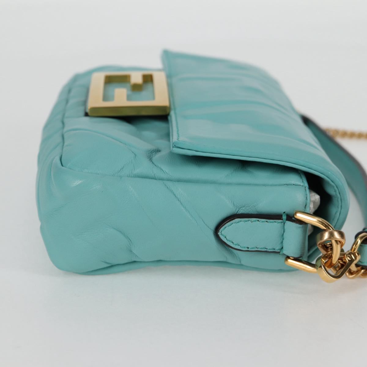 FENDI Zucca Canvas Chain Shoulder Bag Leather 2way Gold Green Auth 125471M