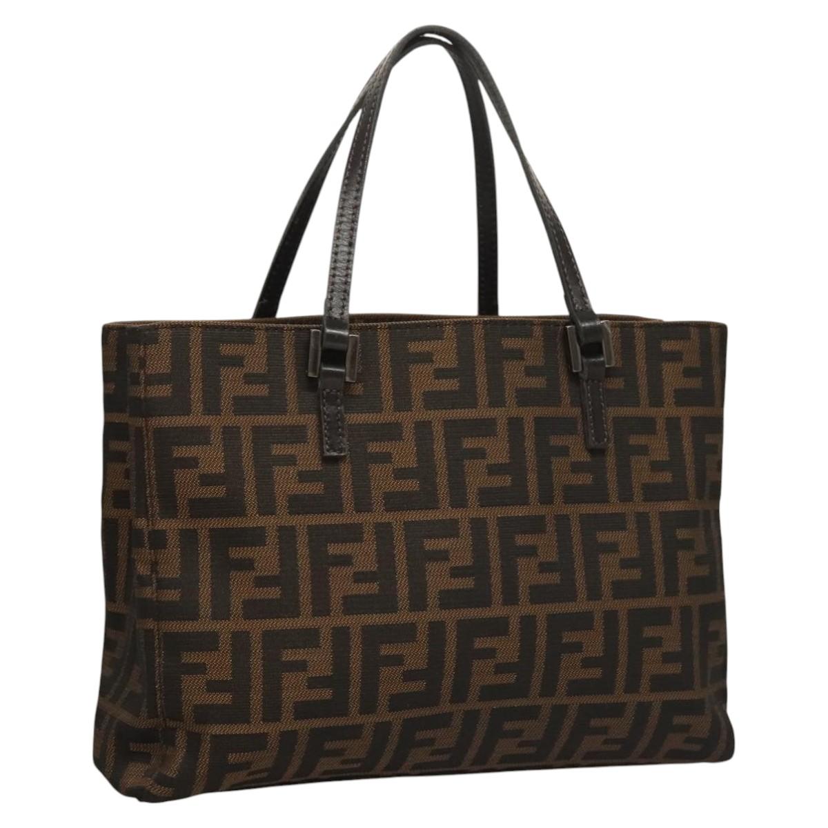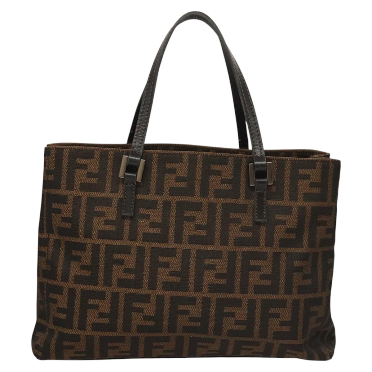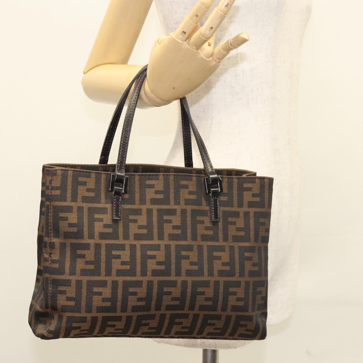 FENDI Zucca Canvas Hand Bag Black Brown Auth 117139AM