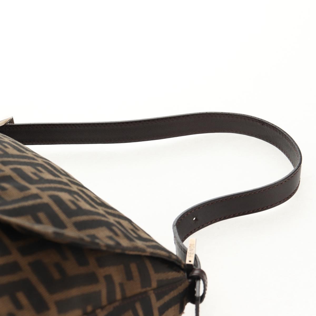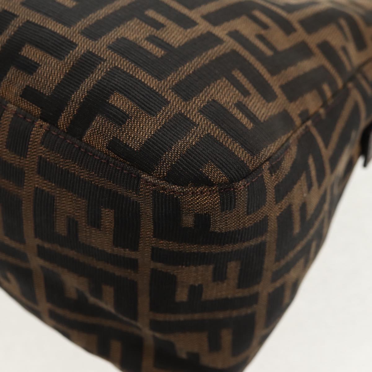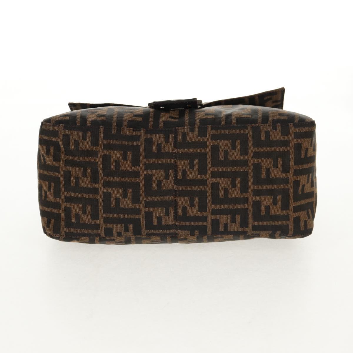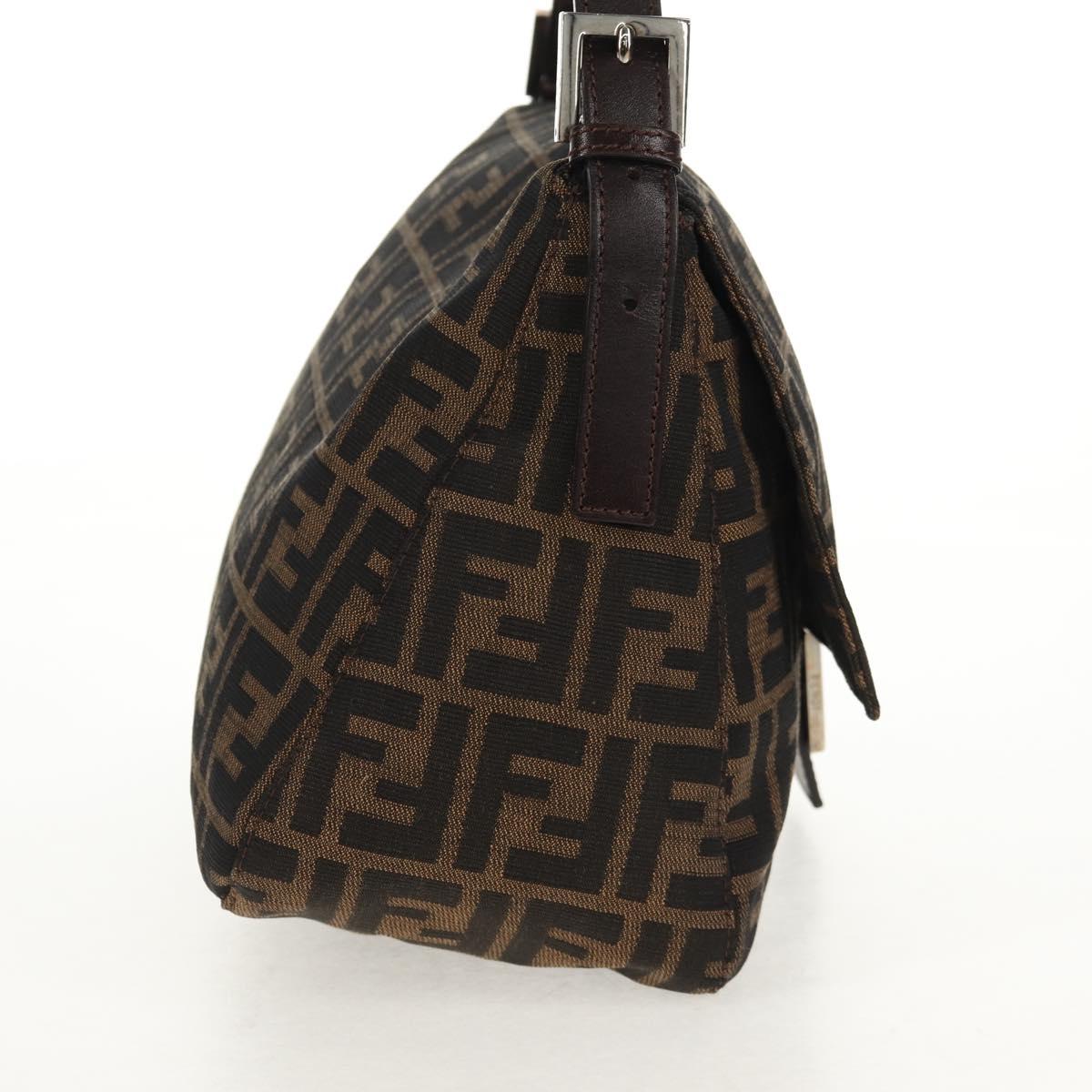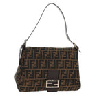 FENDI Zucca Canvas Mamma Baguette Shoulder Bag Black Brown Silver Auth 146614V