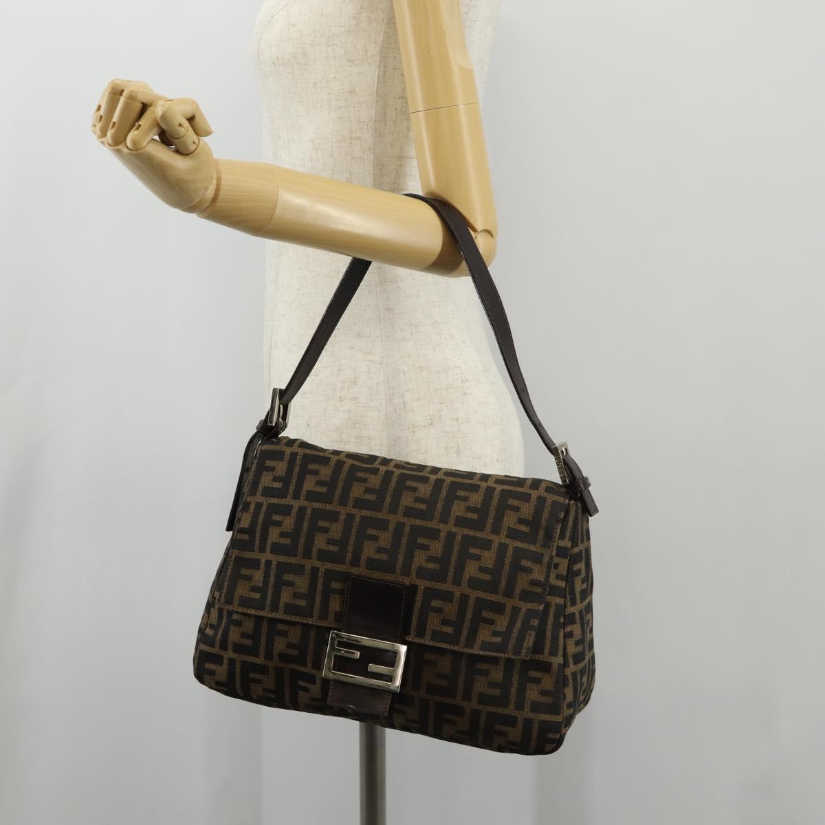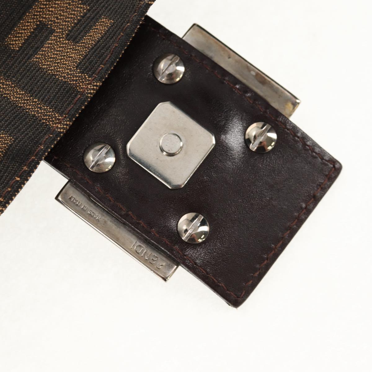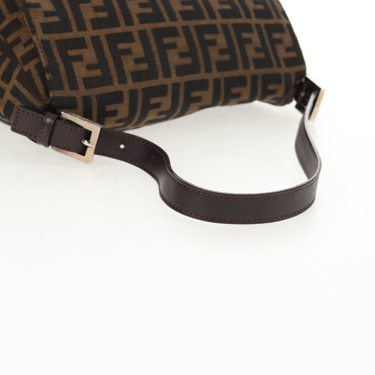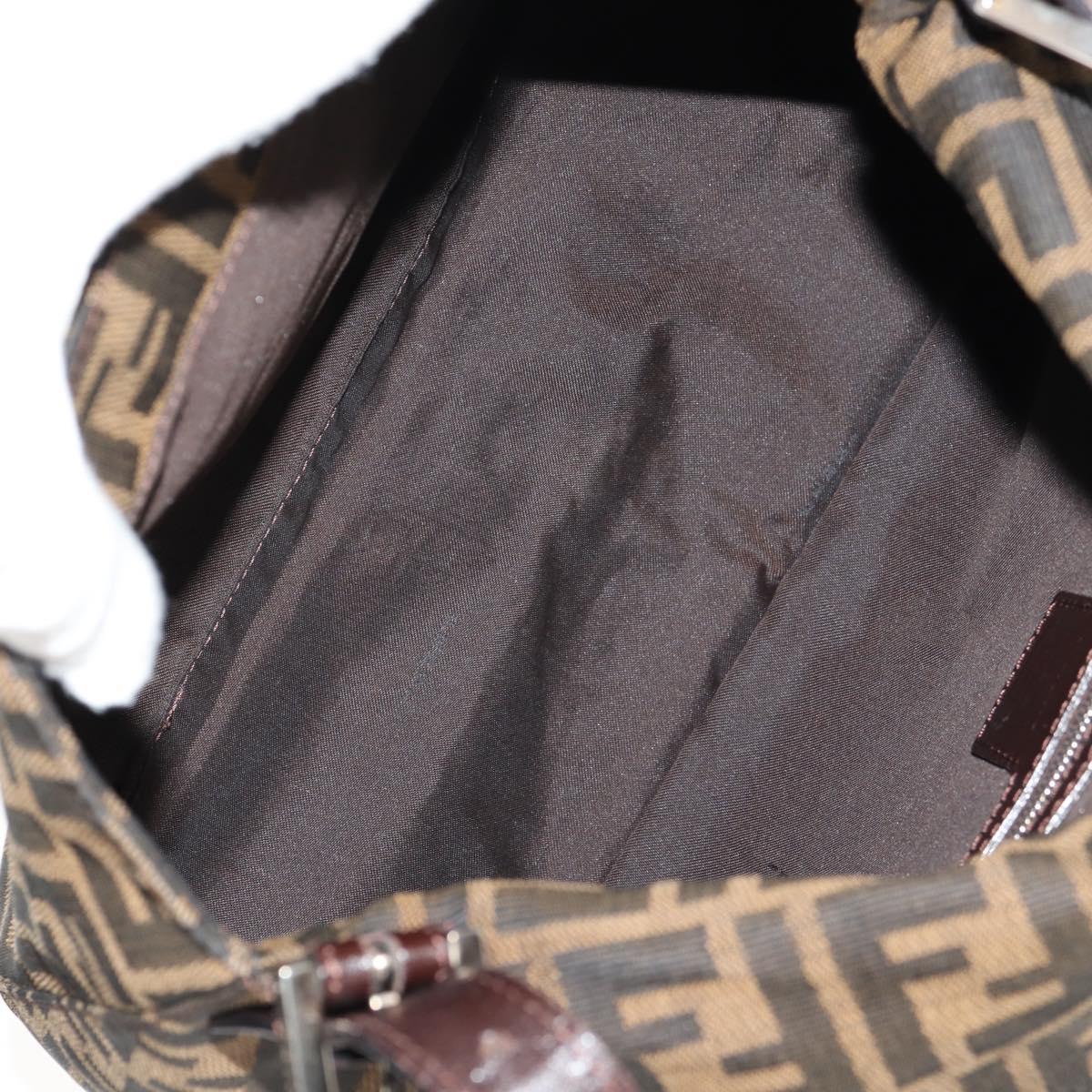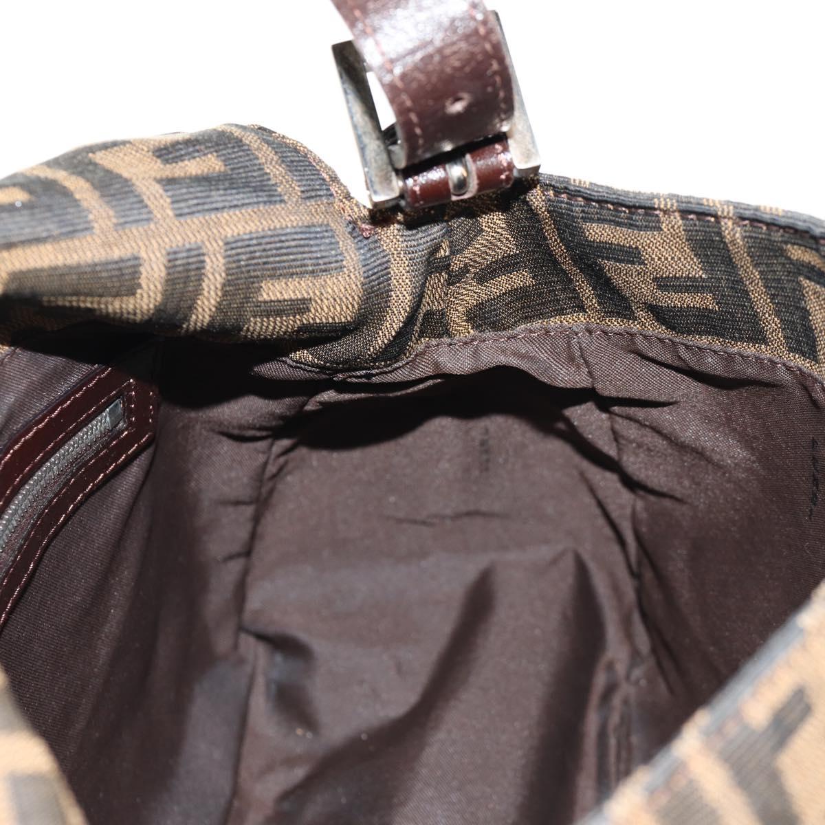 FENDI Zucca Canvas Mamma Baguette Shoulder Bag Black Brown Silver Auth 146614V