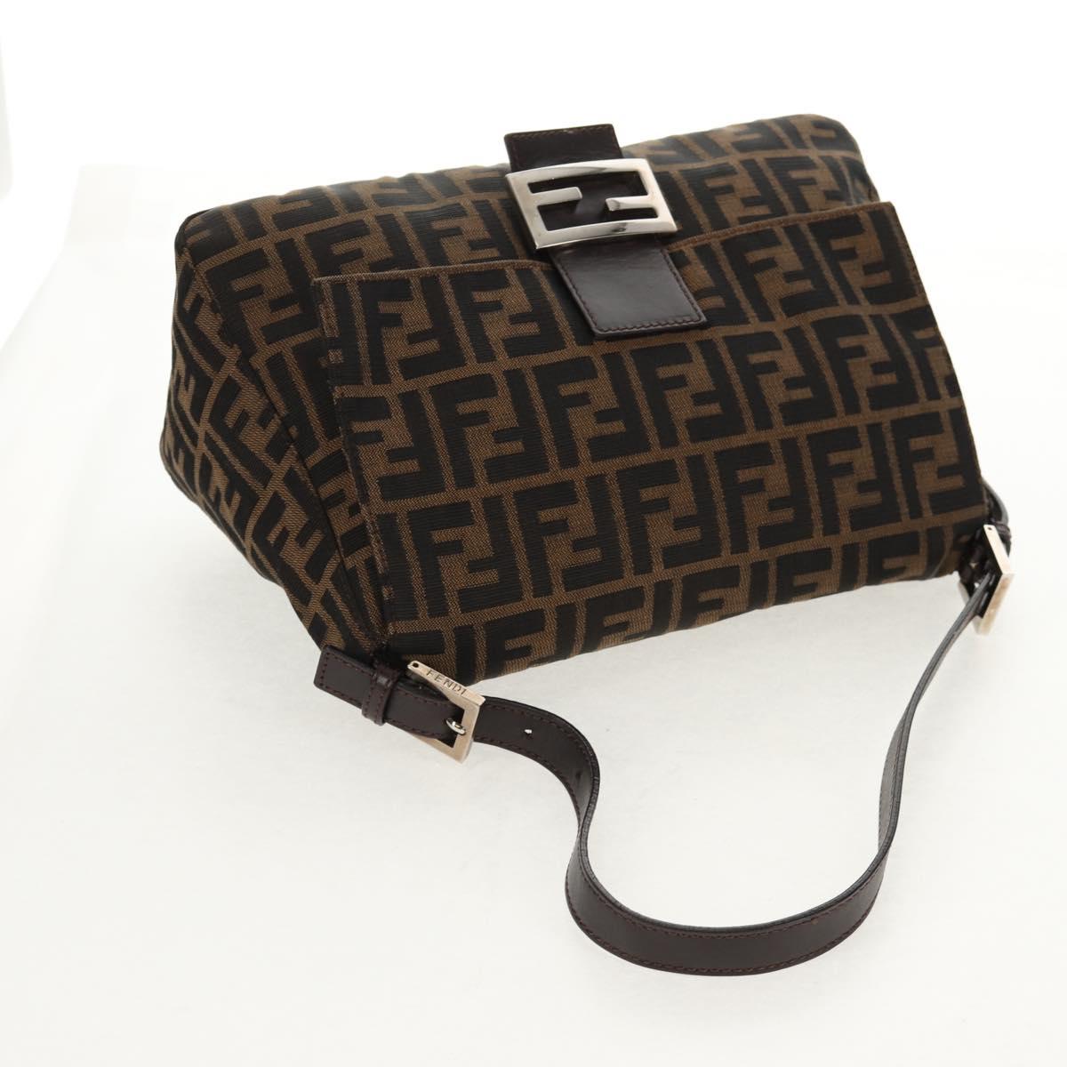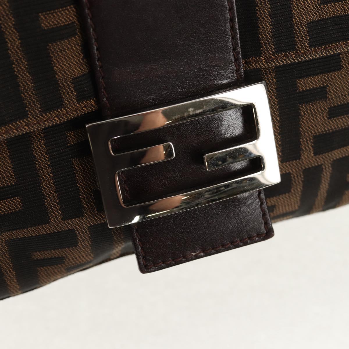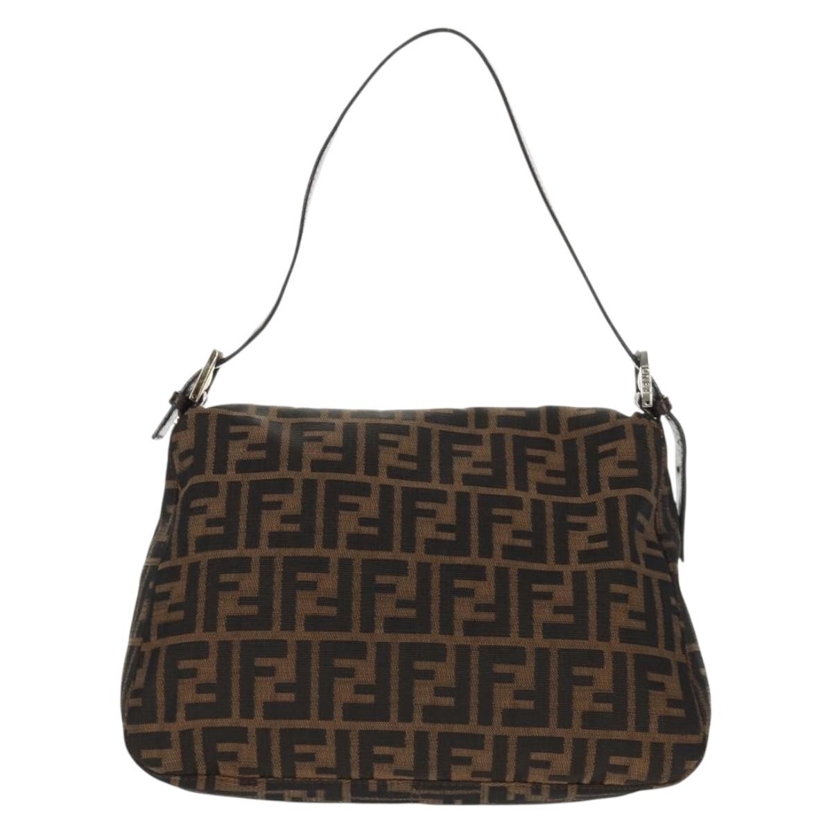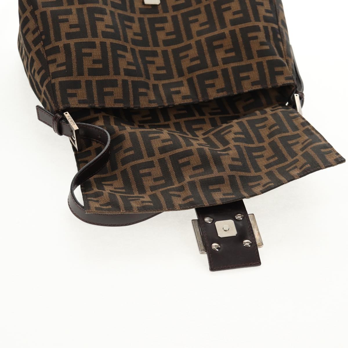 FENDI Zucca Canvas Mamma Baguette Shoulder Bag Black Brown Silver Auth 146614V