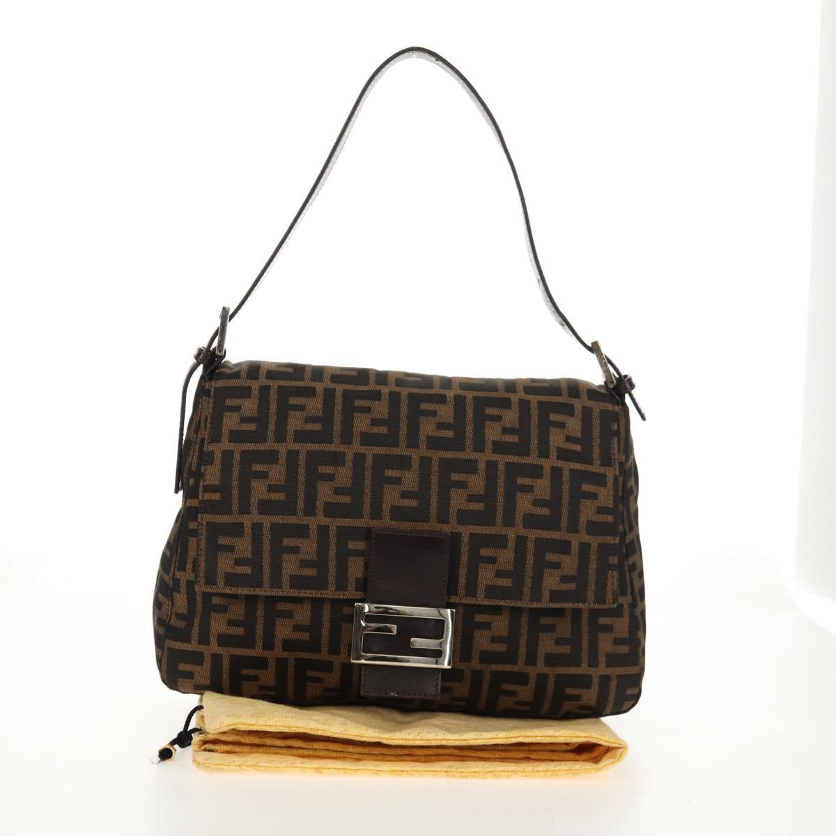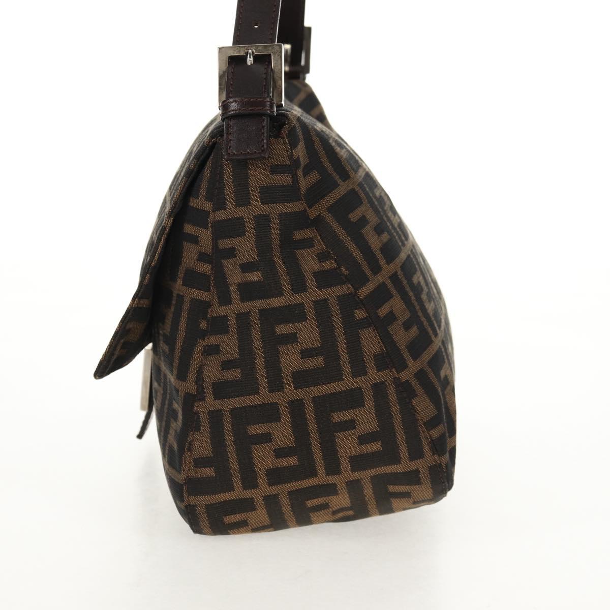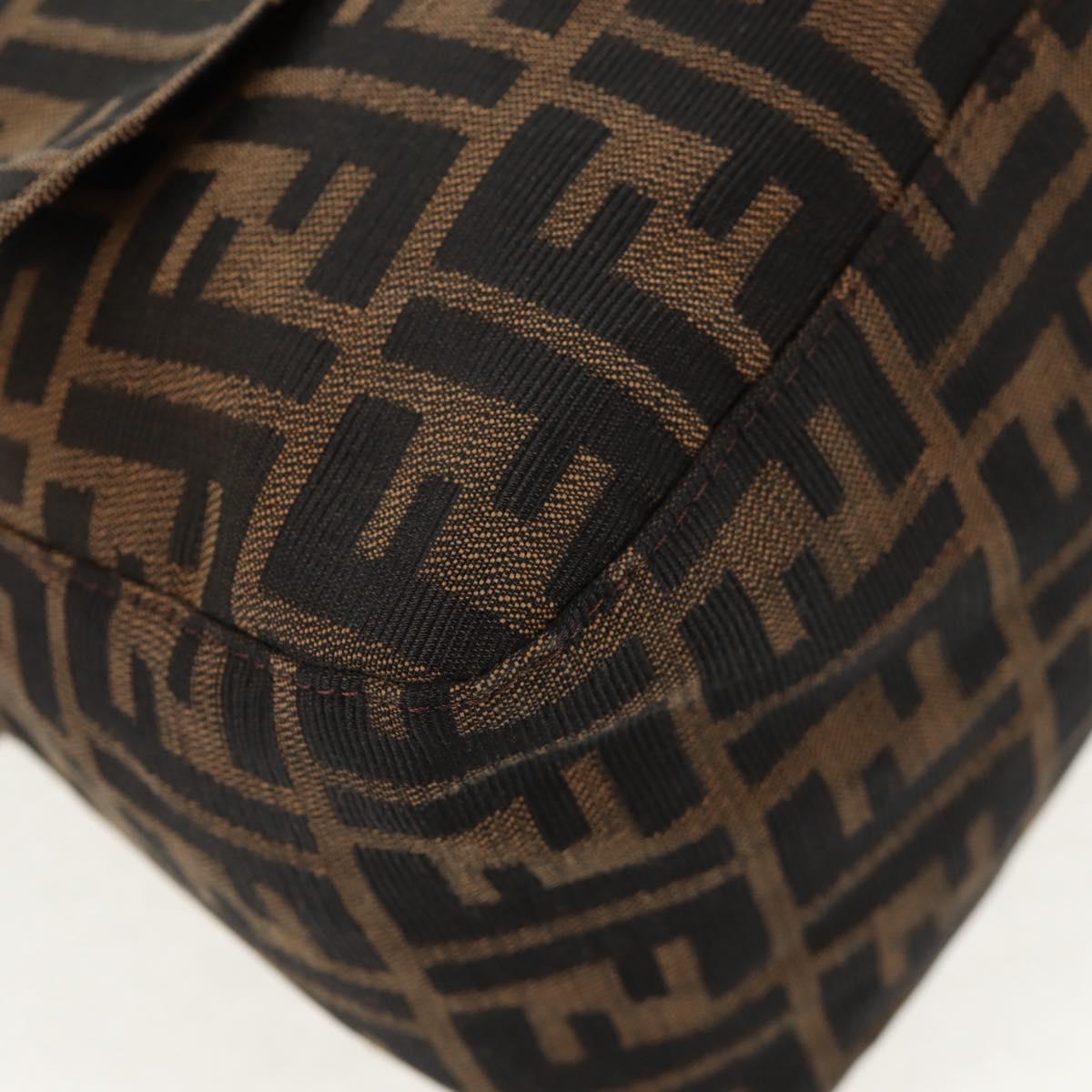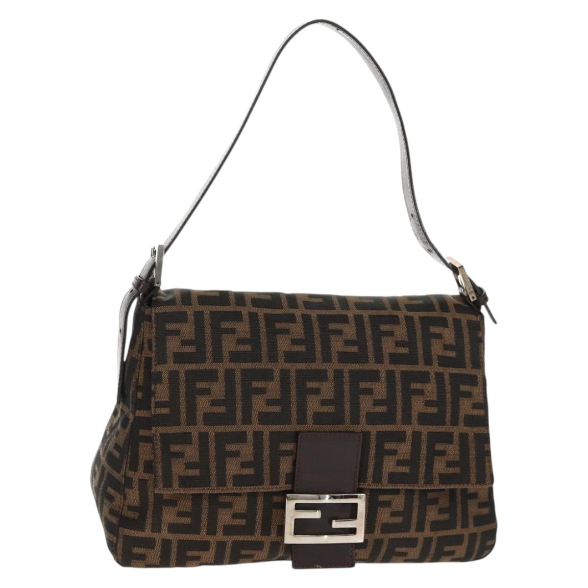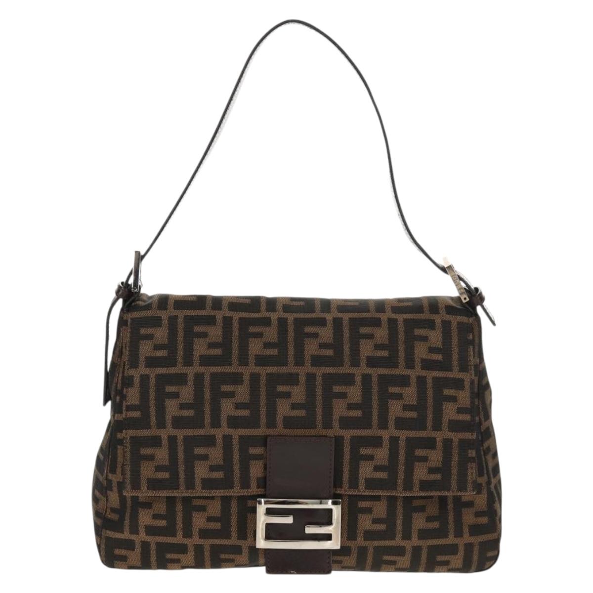 FENDI Zucca Canvas Mamma Baguette Shoulder Bag Black Brown Silver Auth 146614V