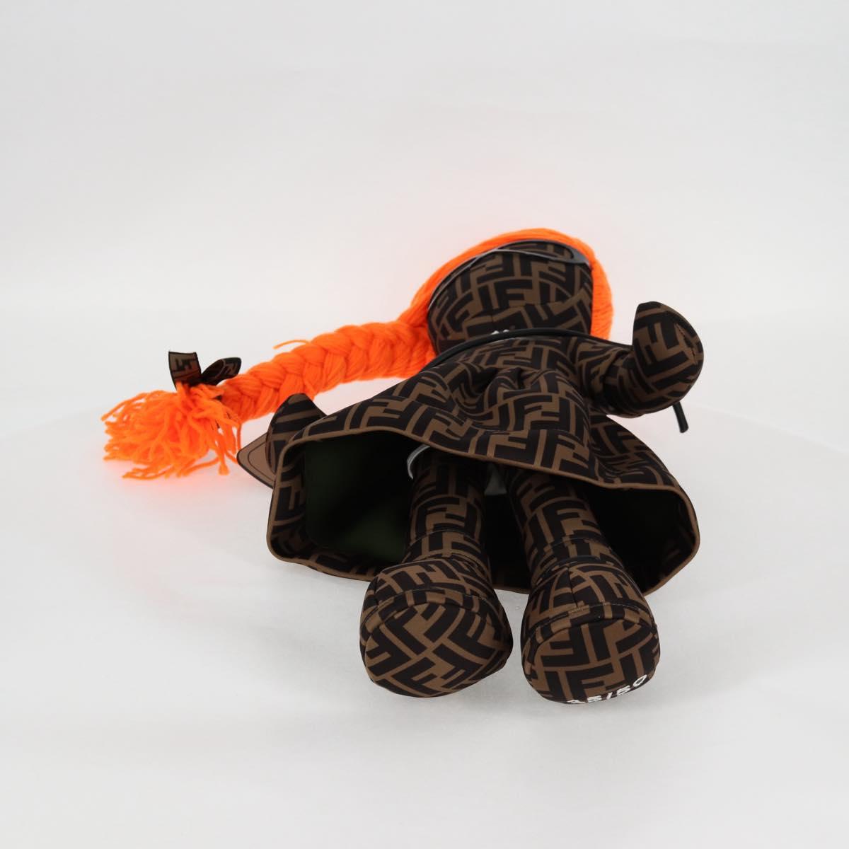 FENDI Zucca Canvas Stuffed 15/50 Black Brown Auth MX505M