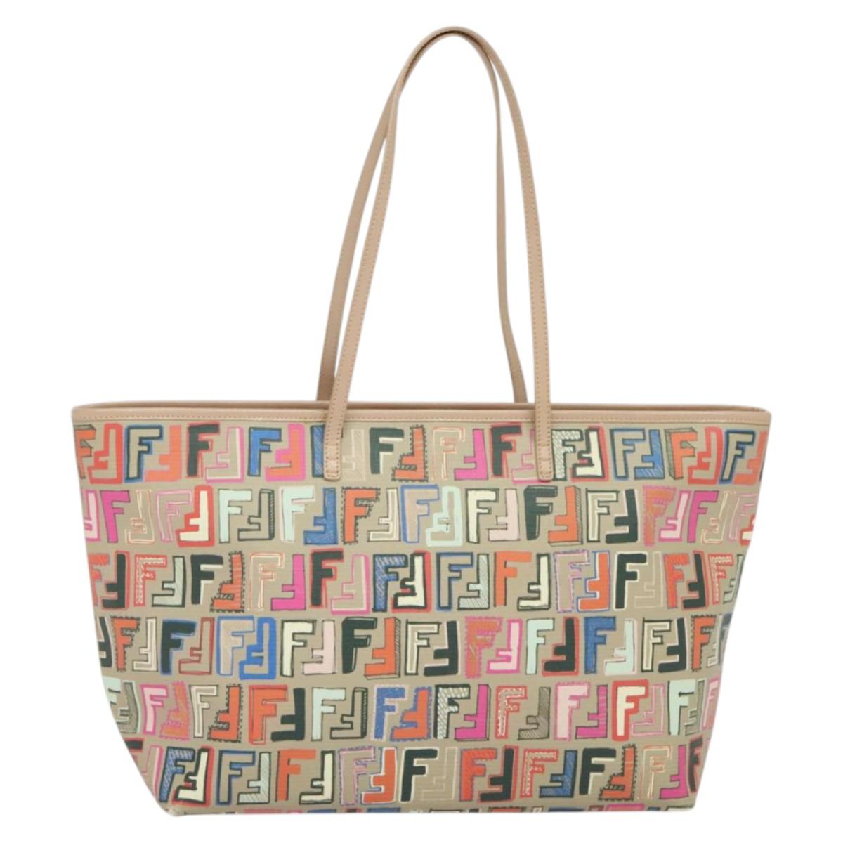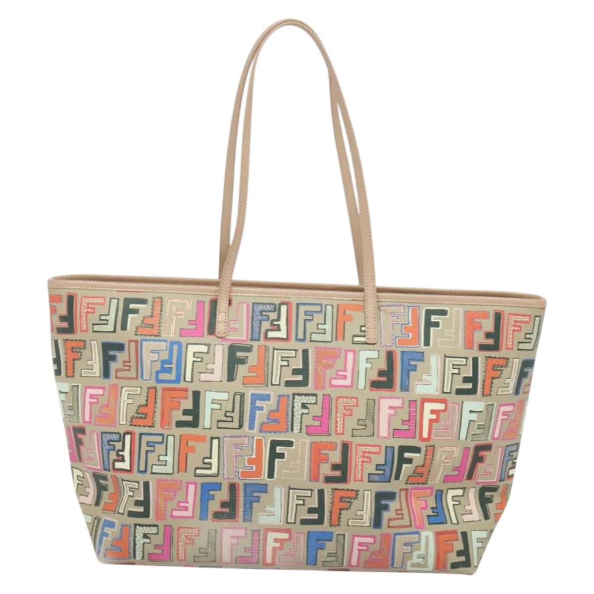 FENDI Zucca Canvas Tote Bag PVC Multicolor Gold Auth 132953V