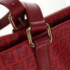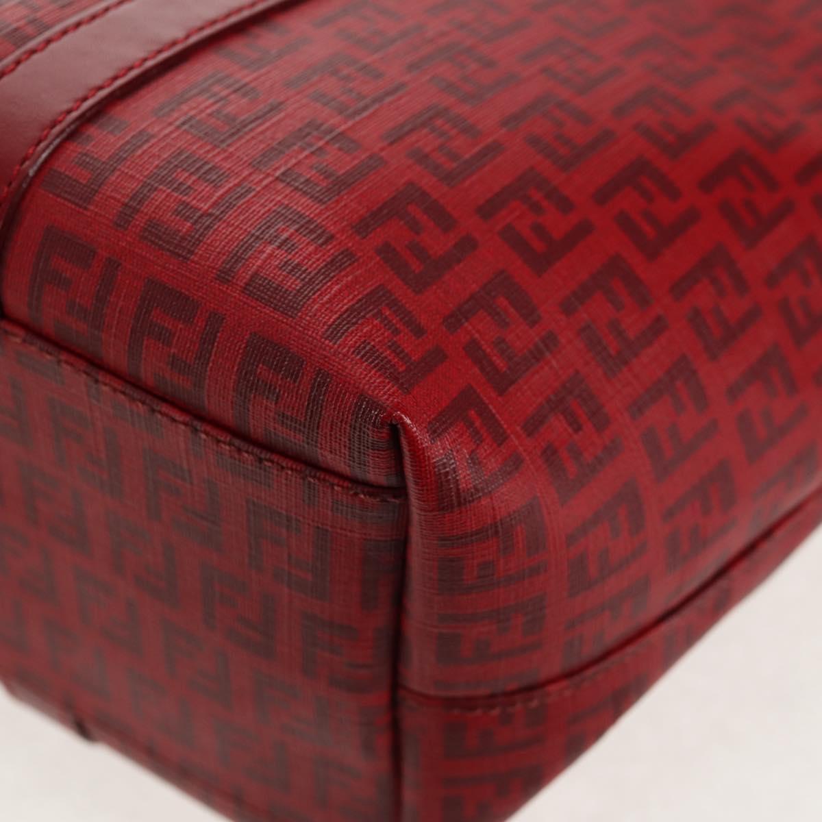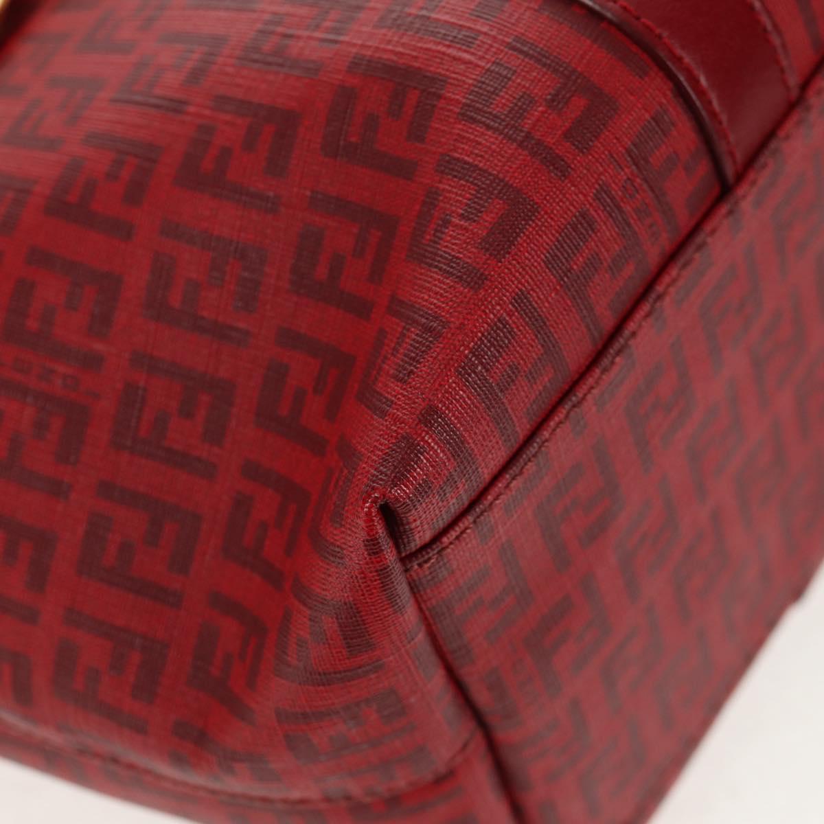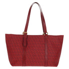 FENDI Zucchino Canvas Tote Bag PVC Red Gold Auth 144978V