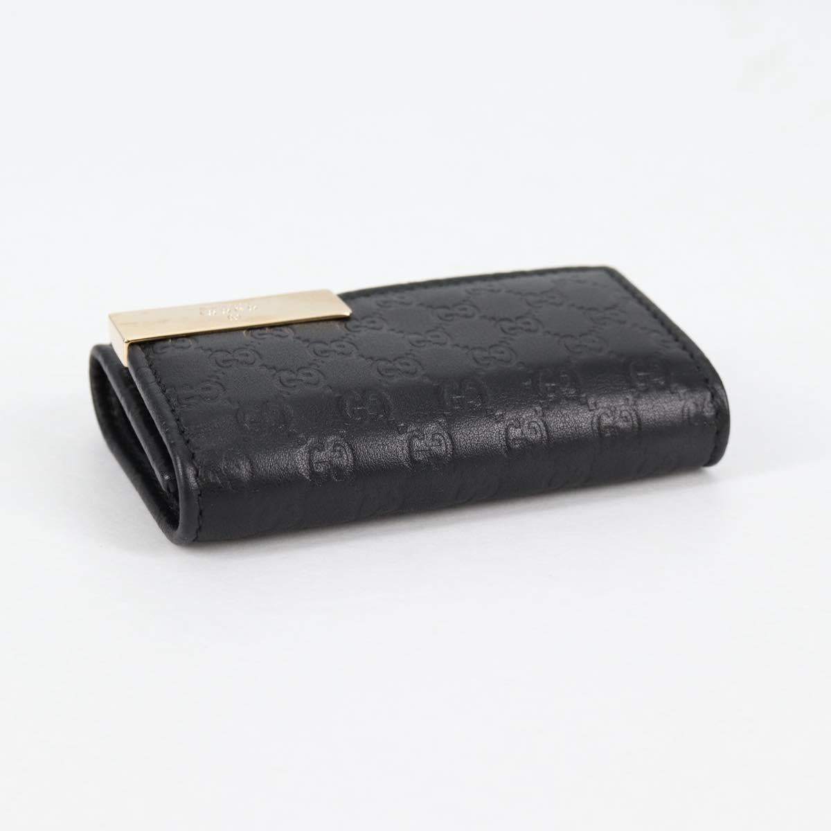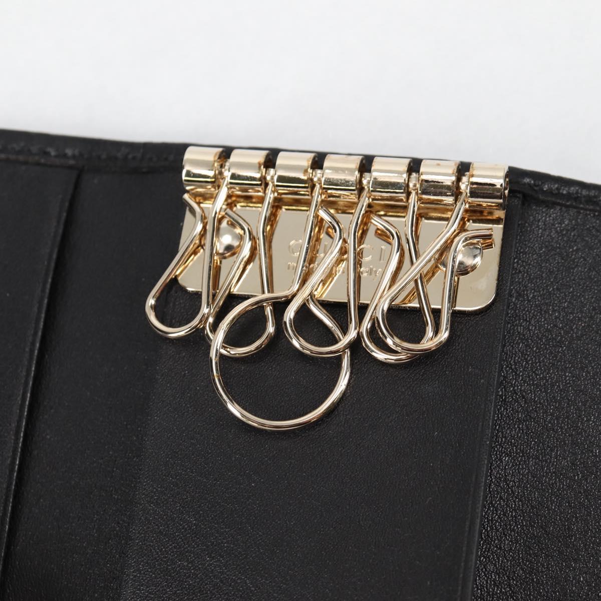 GUCCI GG Canvas Guccissima Key Case Leather Black Gold 268833 2184 Auth am9008V