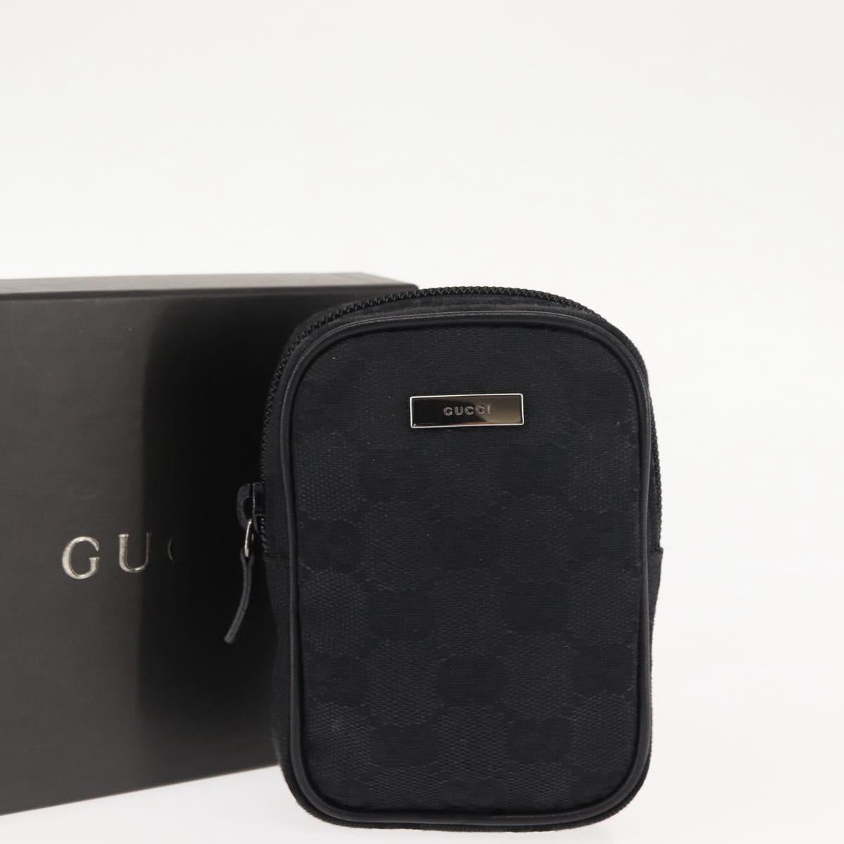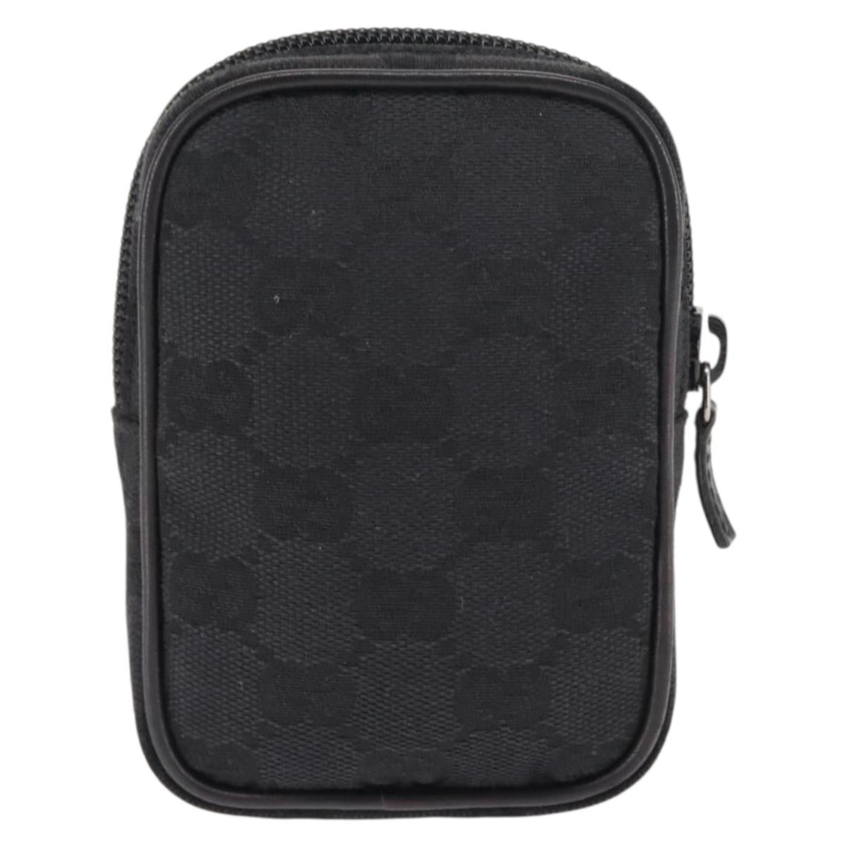 GUCCI GG Canvas Pouch Black Silver 74245 Auth am9252
