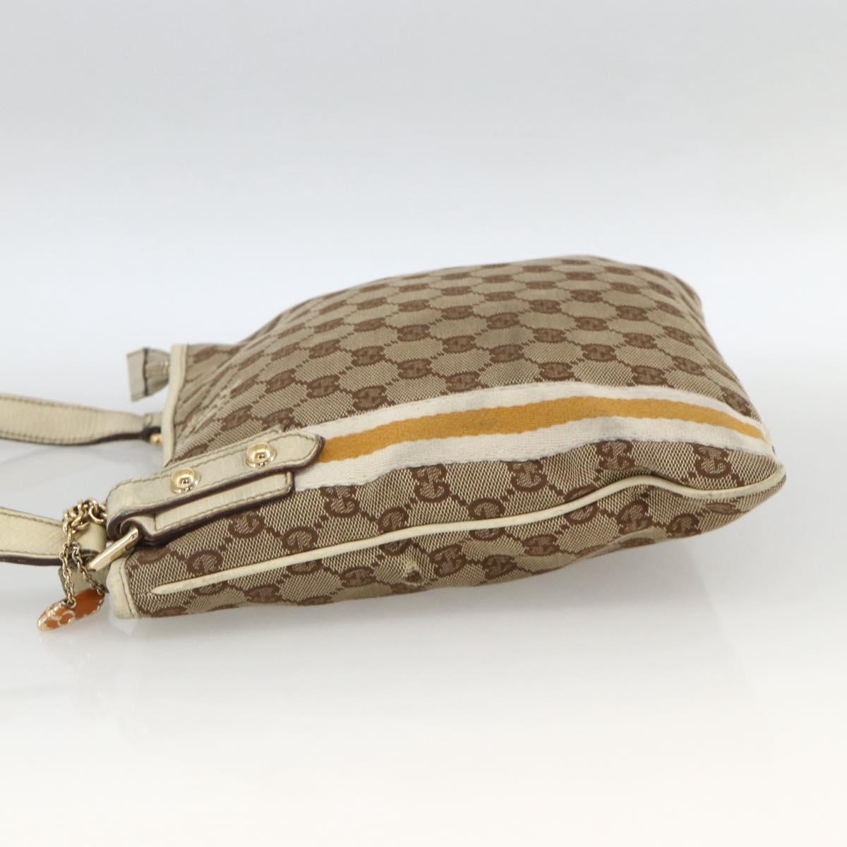 GUCCI GG Canvas Sherry Line Shoulder Bag Beige Gold 144888 Auth AMZ009