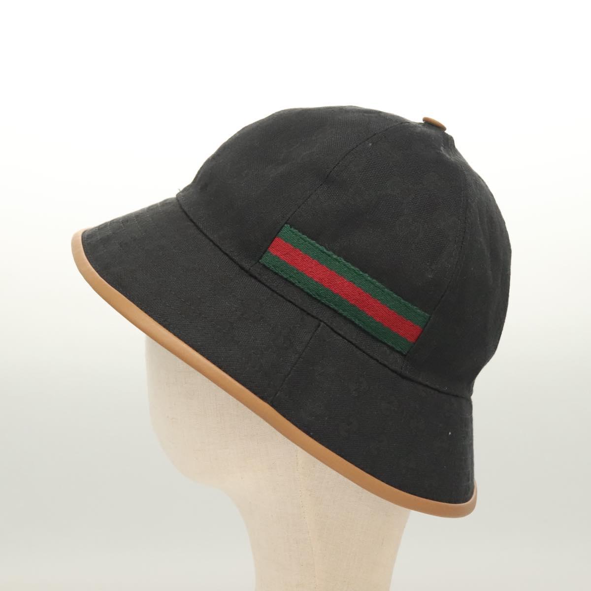 GUCCI GG Canvas Sherry Line Web Bucket Hat Hat Black 722377 Auth am8853V