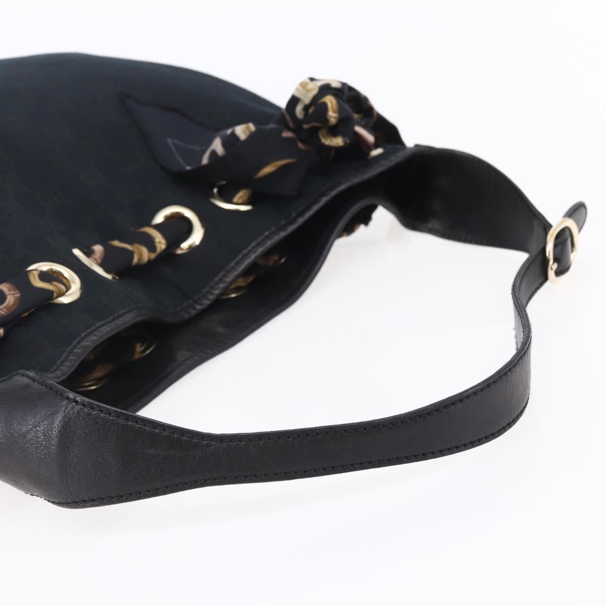 GUCCI GG Canvas Shoulder Bag Black Gold 155563 Auth 147670V