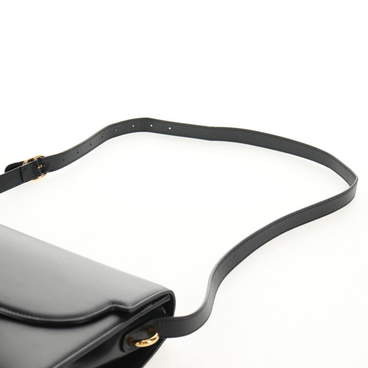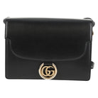 GUCCI GG Logo Shoulder Bag Leather Black Gold 589471 Auth 144672M