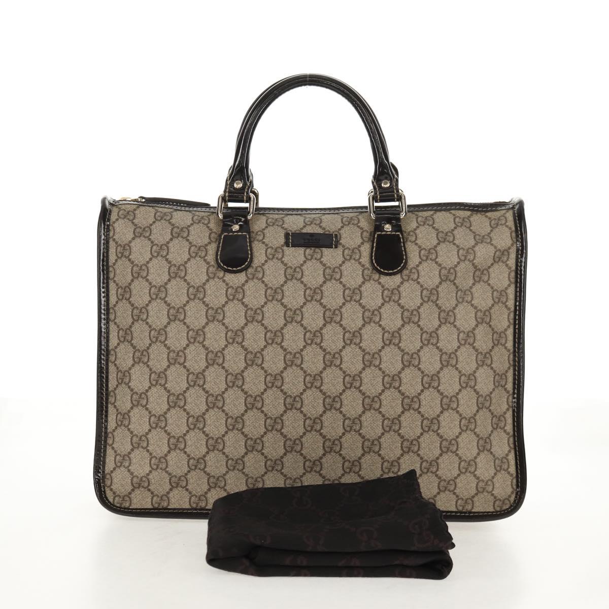 GUCCI GG Supreme Hand Bag PVC Beige Gold 190259 Auth 146791V