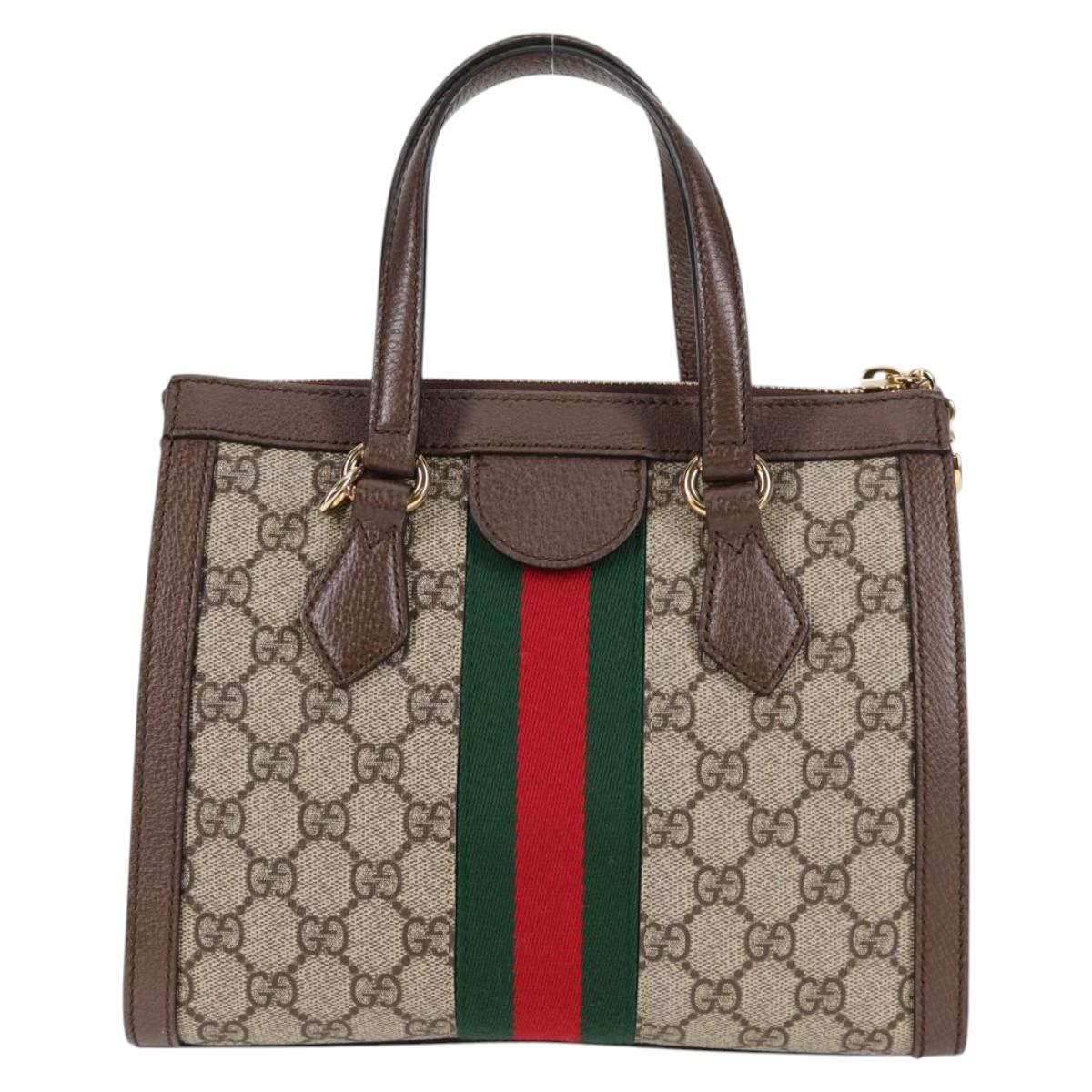 GUCCI GG Supreme Web Sherry Line Bag PVC 2way Beige Gold 547551 Auth nb475M