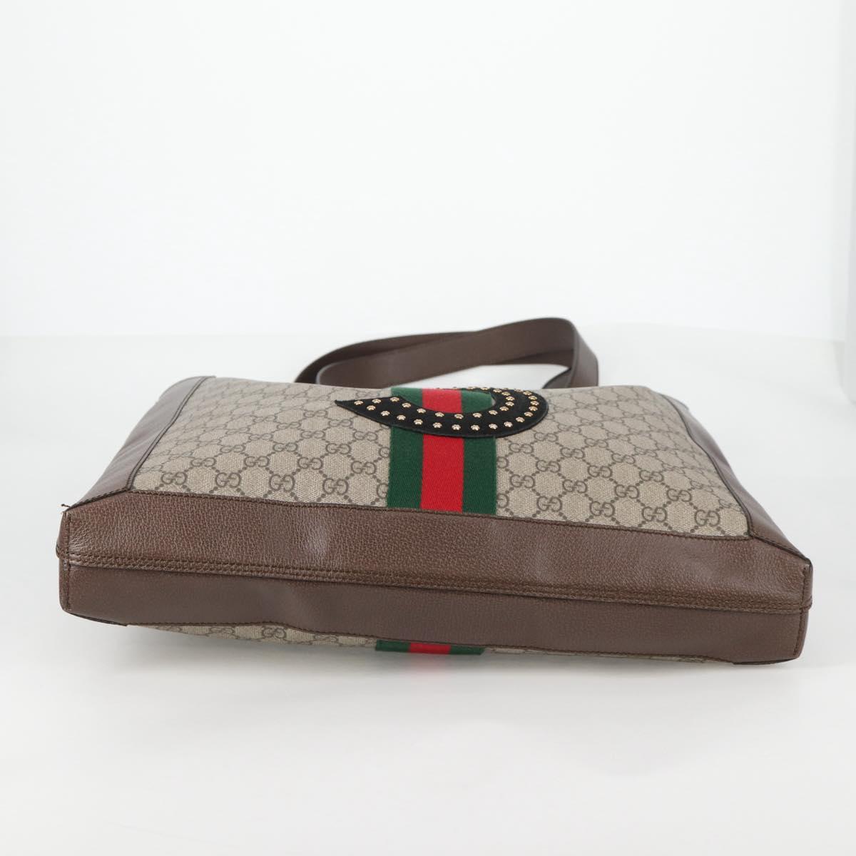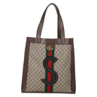 GUCCI GG Supreme Web Sherry Line Tote Bag PVC Beige Gold Red Auth 135289M