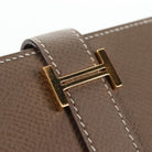 HERMES Beansufla Wallet Leather Beige Gold Auth 139050M