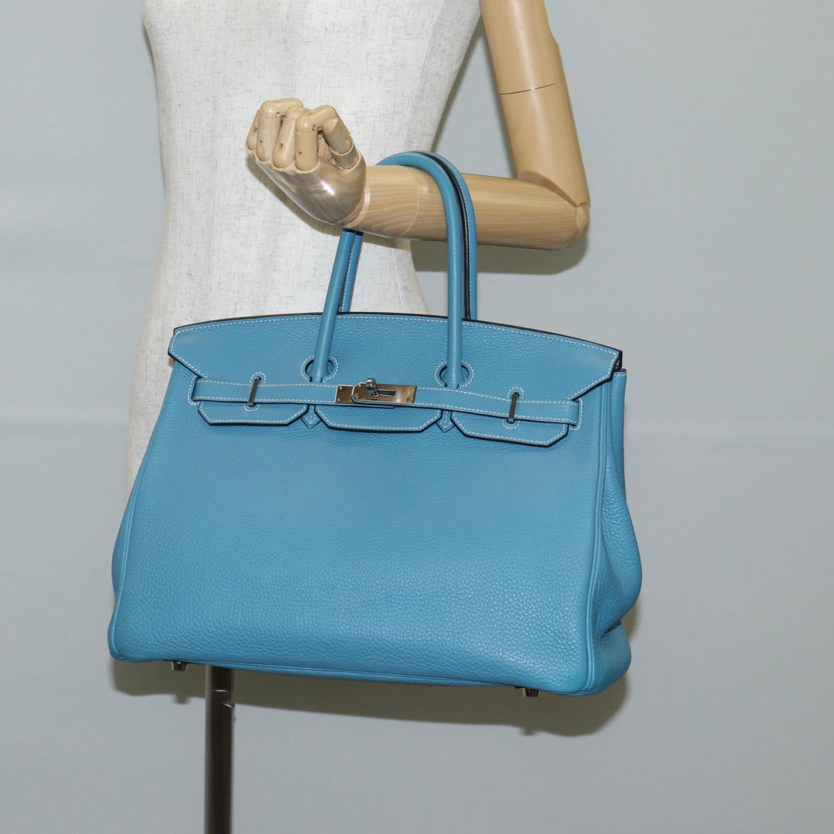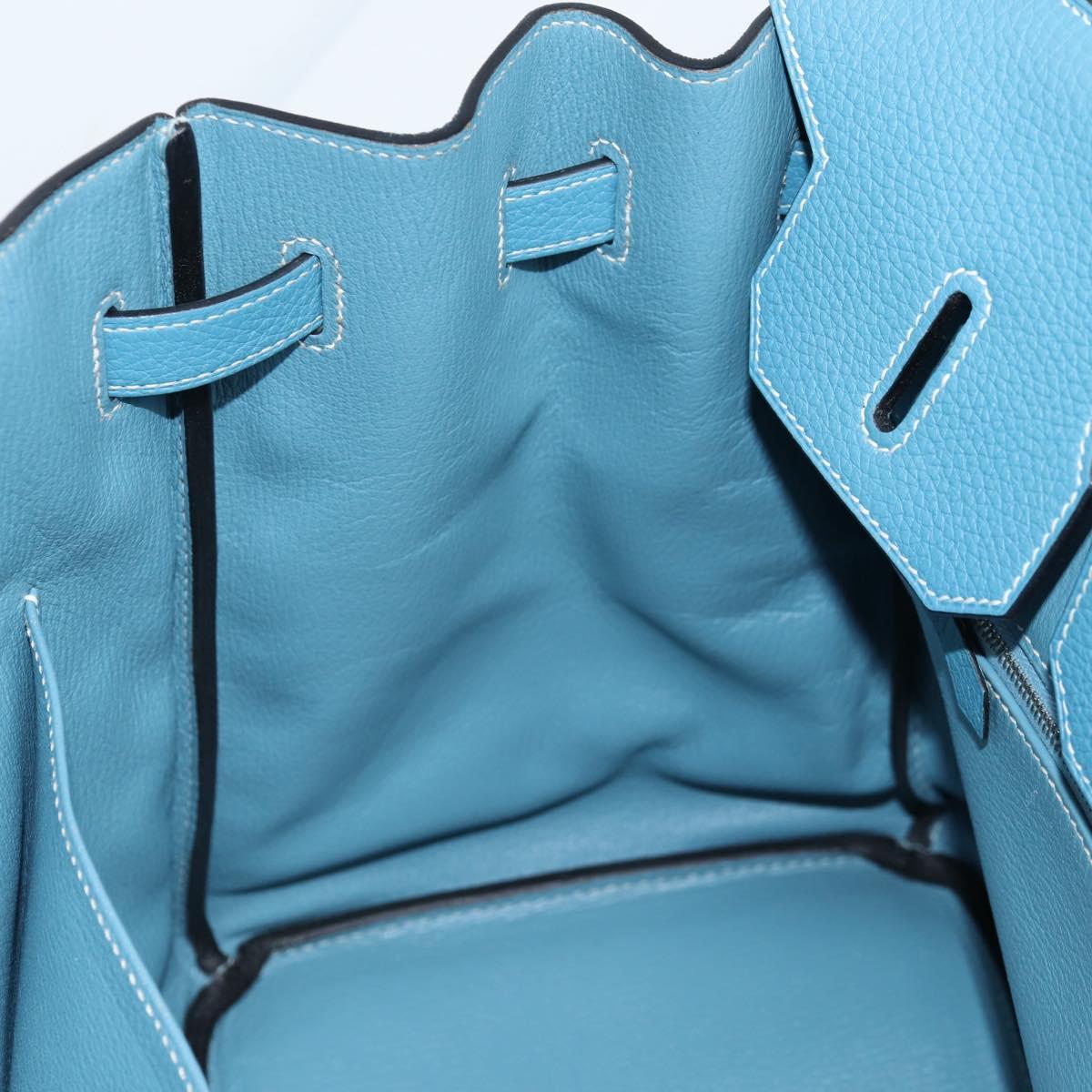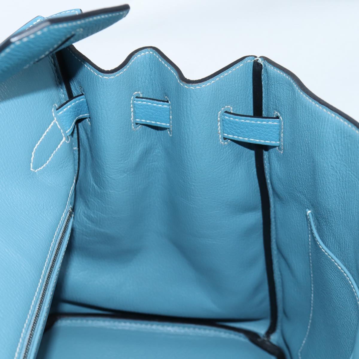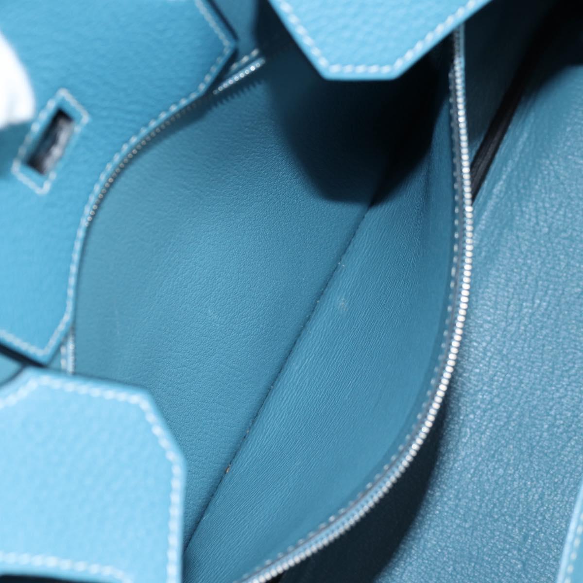 HERMES Birkin 35 Hand Bag Leather Blue Silver Auth 135821M